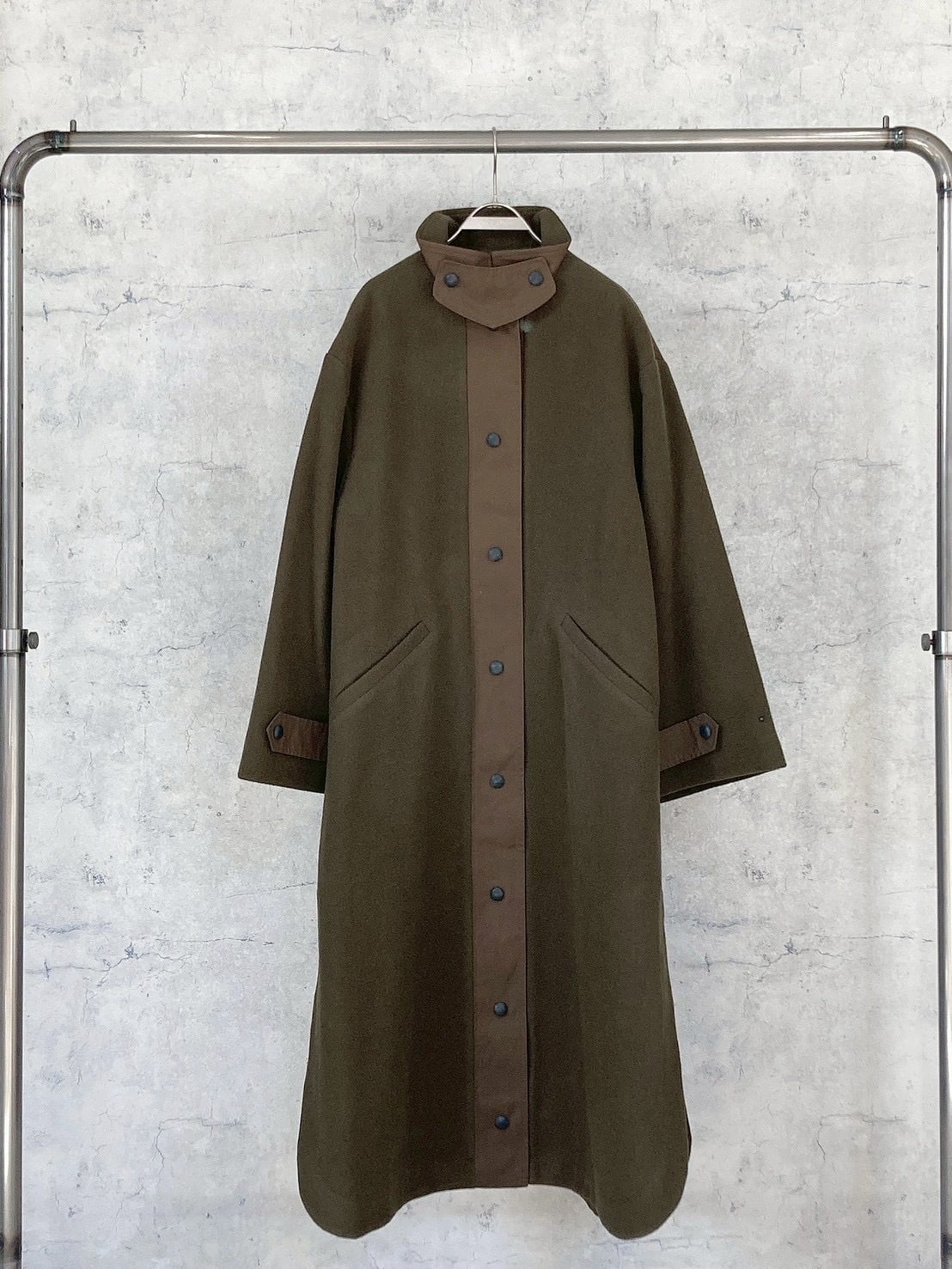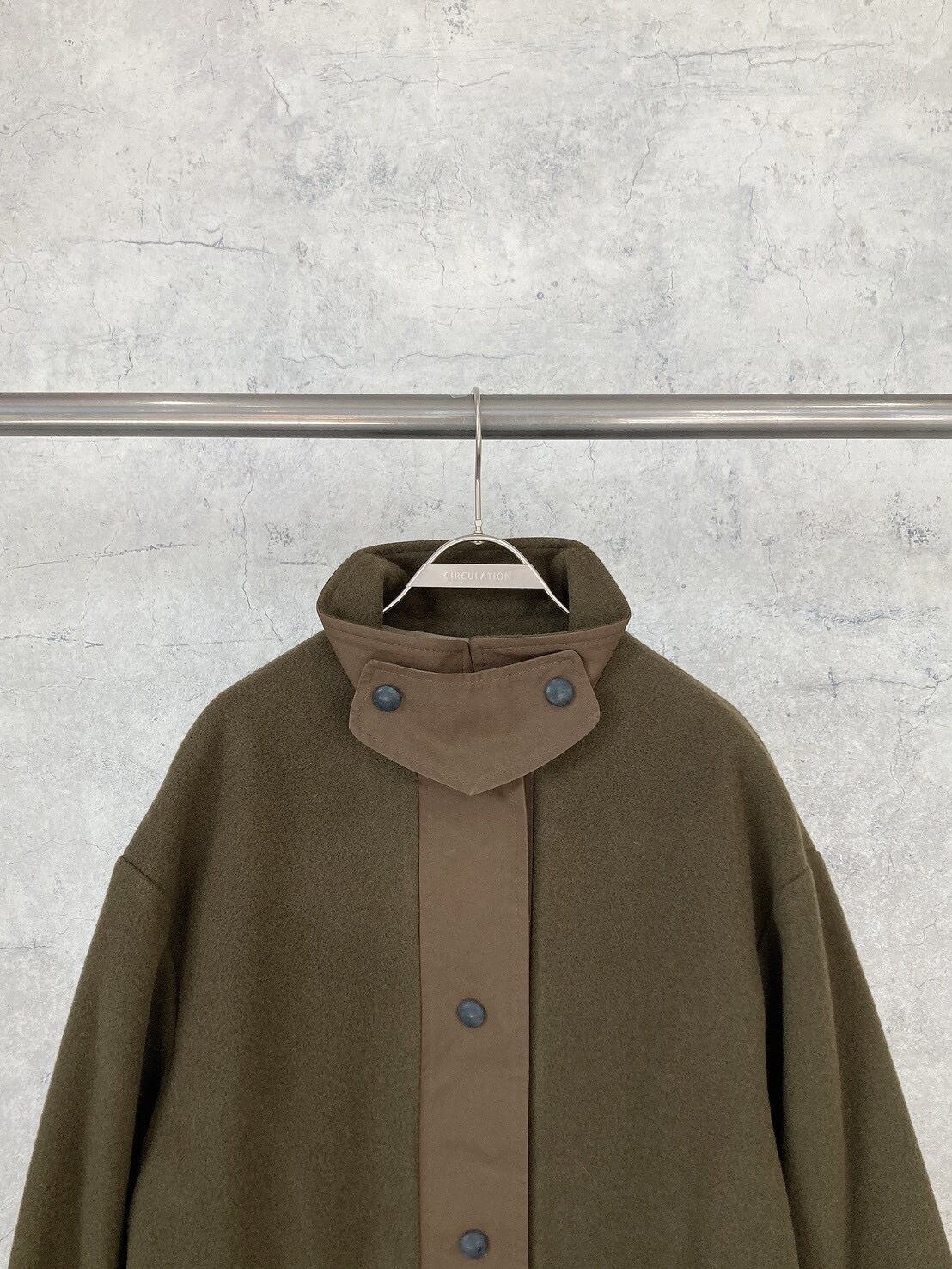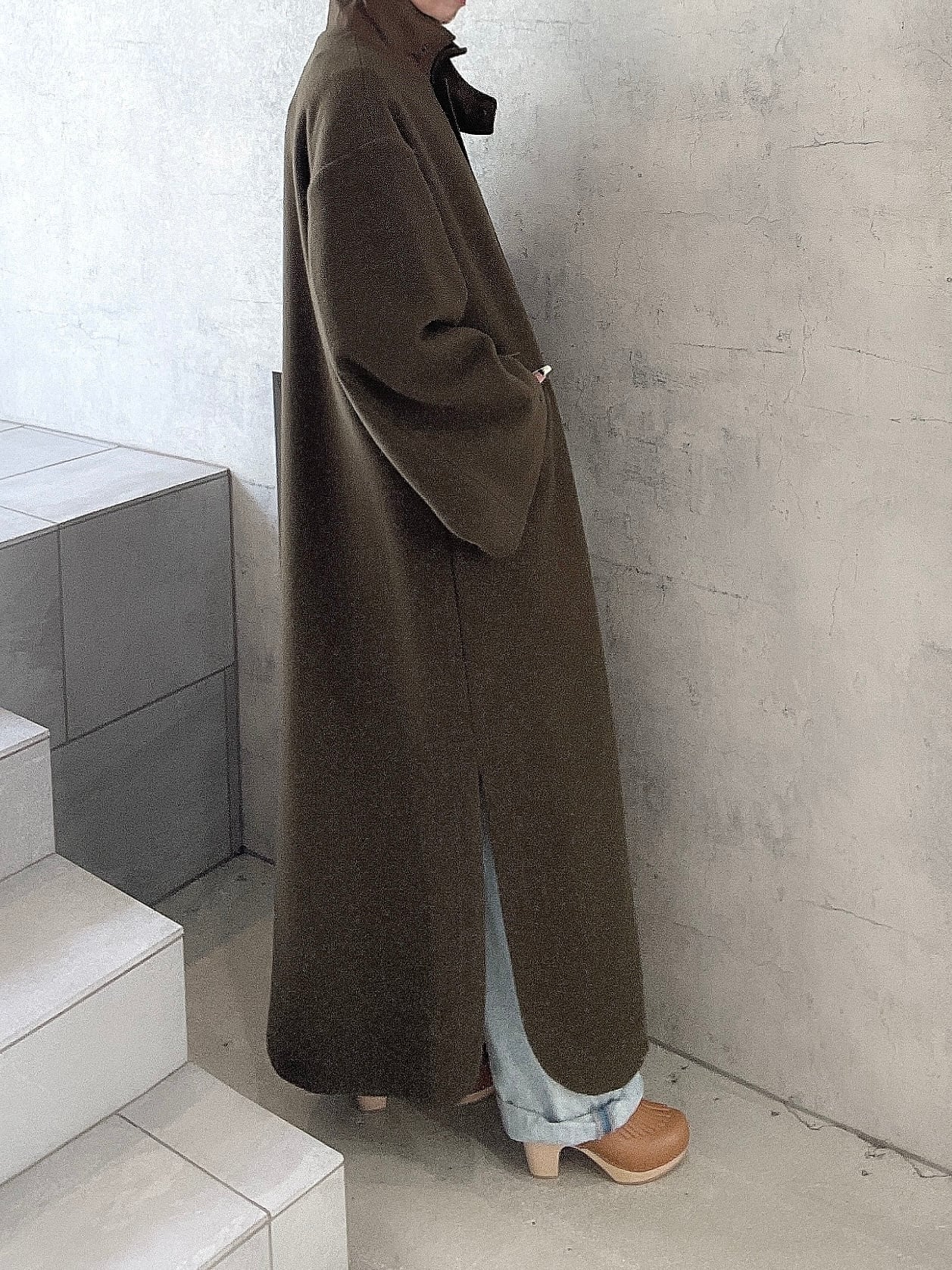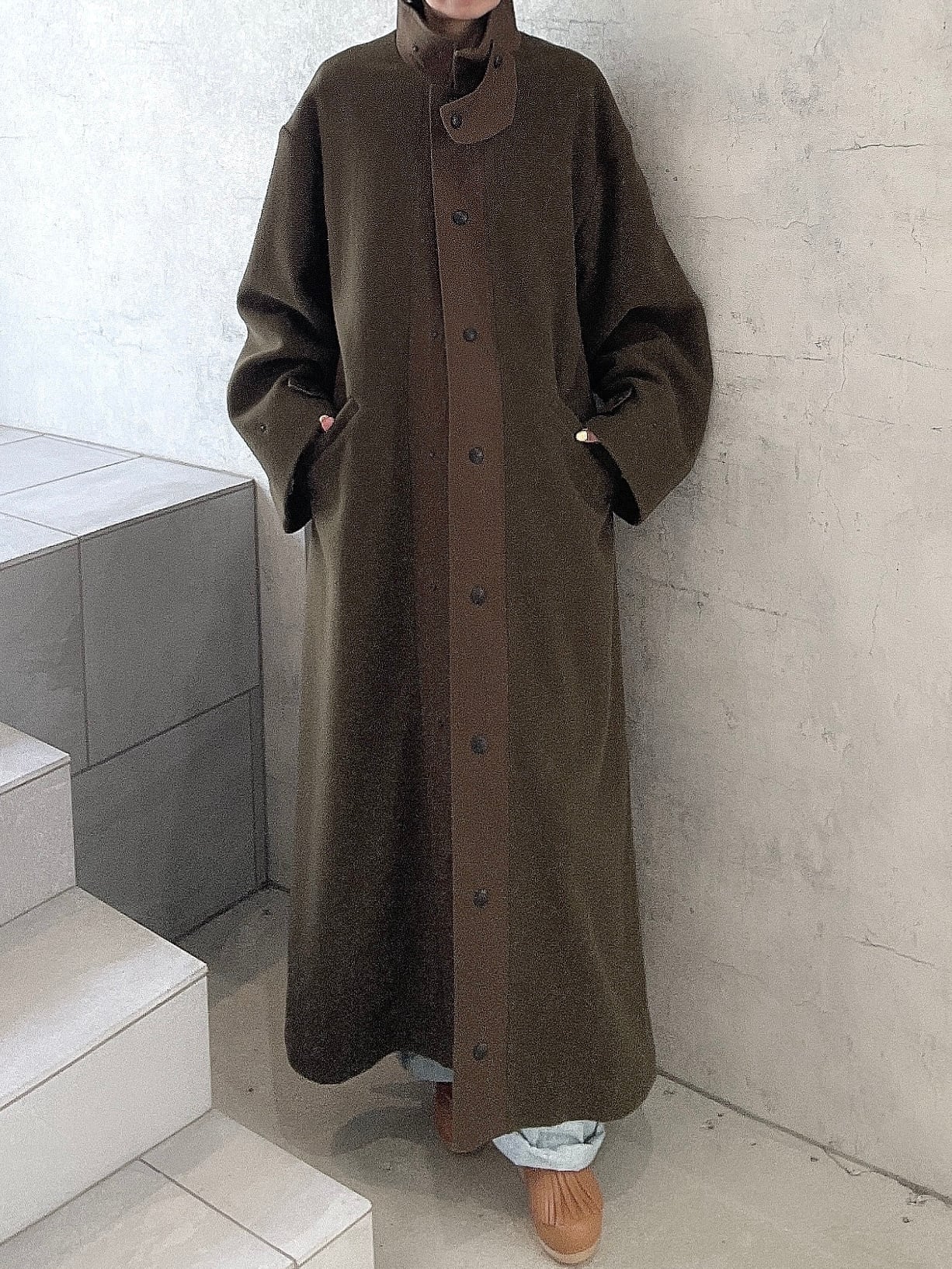 CIRCULATION送料無料【maison lener メゾン レネー/フランス】ウール100% スタンドカラーコート スタンドカラーコート ロングコート ブラウンカーキ NO: COCHER ML-BACO / khaki