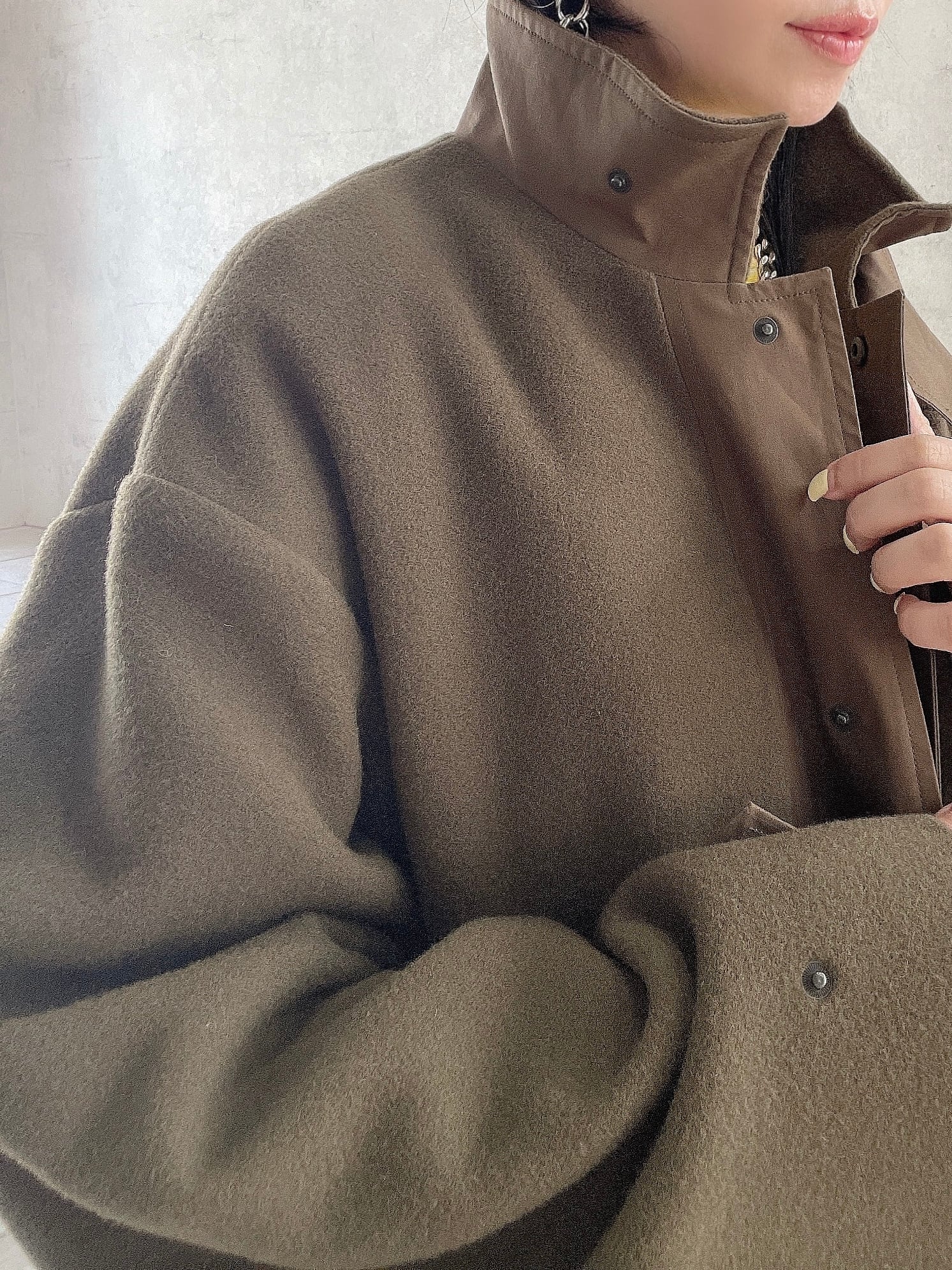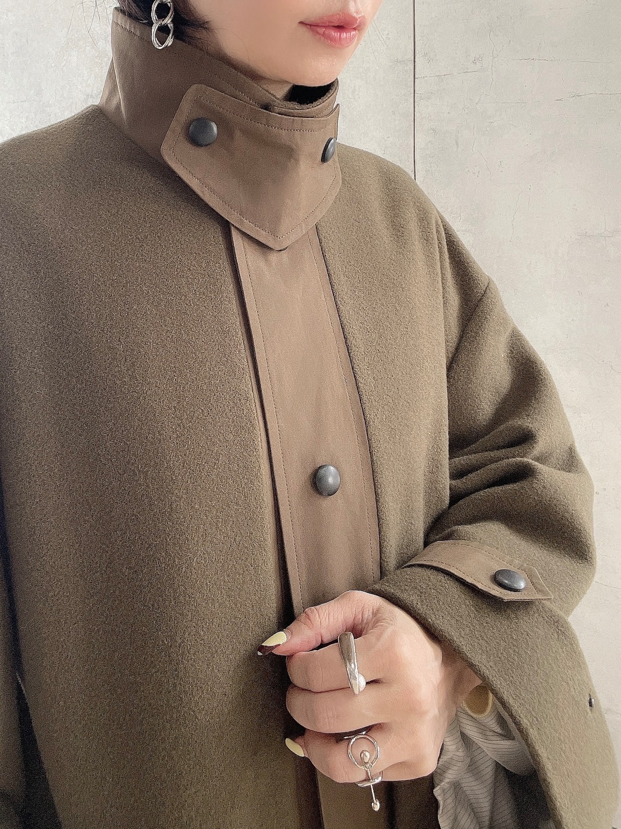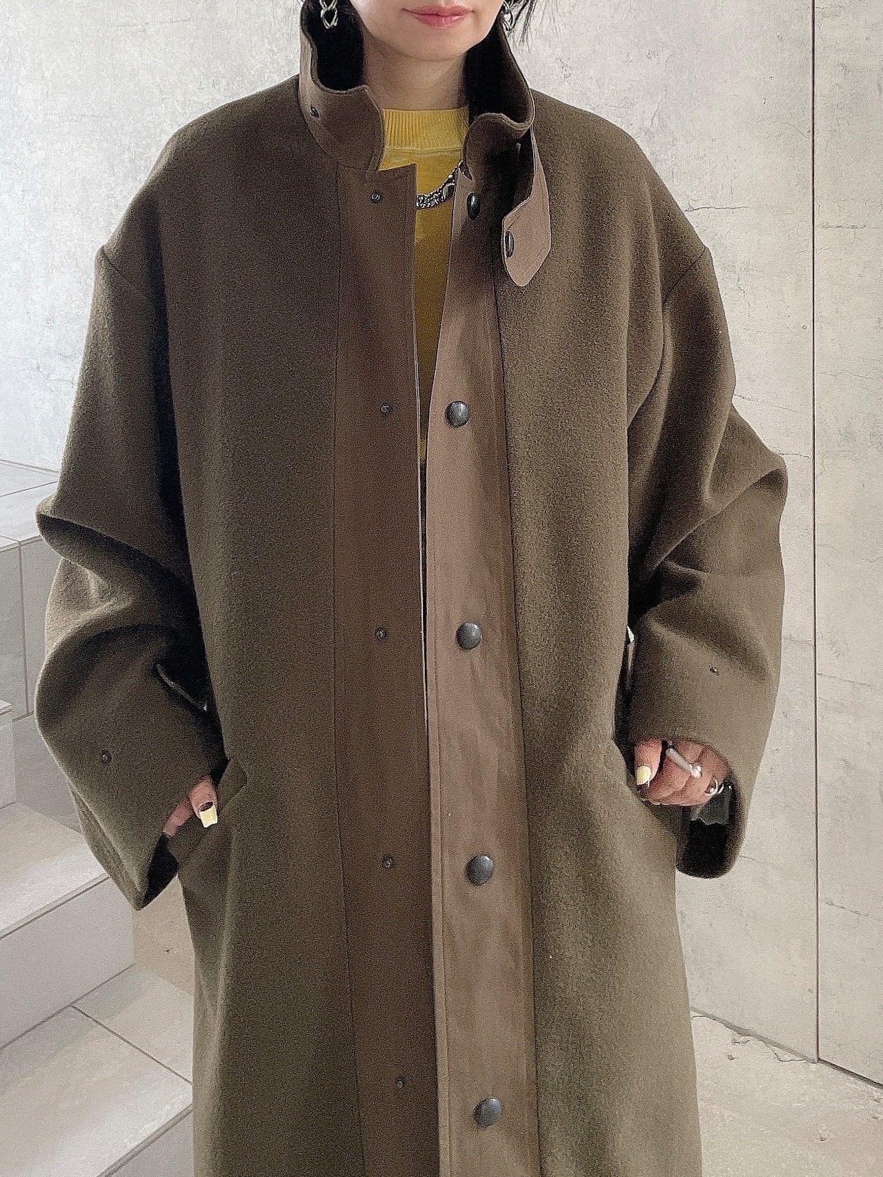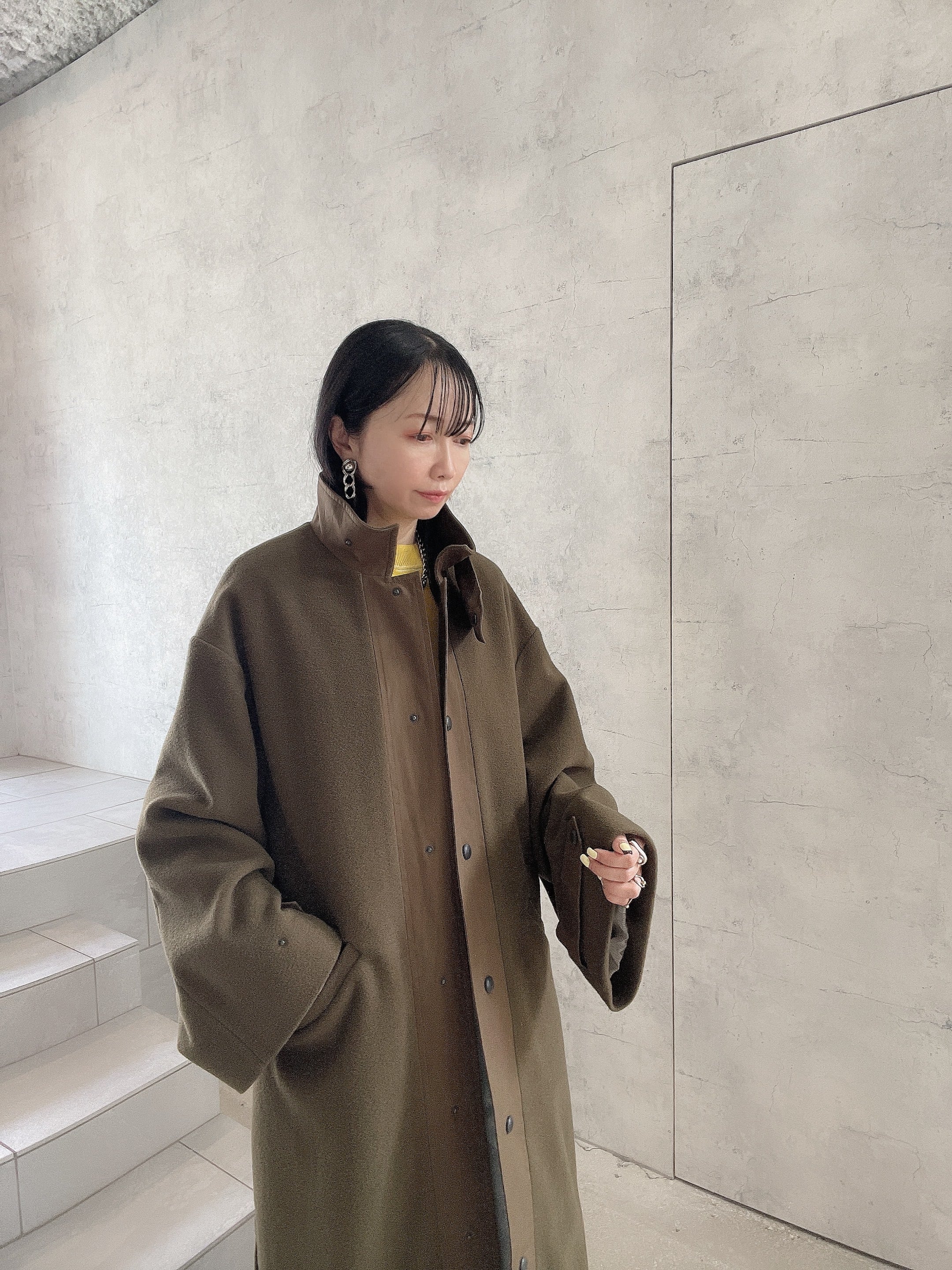 CIRCULATION送料無料【maison lener メゾン レネー/フランス】ウール100% スタンドカラーコート スタンドカラーコート ロングコート ブラウンカーキ NO: COCHER ML-BACO / khaki