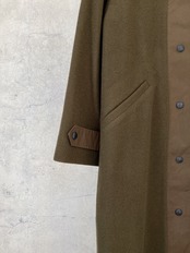 深みのあるミリタリーカラーとロング丈がサマになるフランスらしいコート。一般的なミリタリーカラーと違い素材の良さならではの絶妙なカラー。ロング丈でありながら非常に軽く