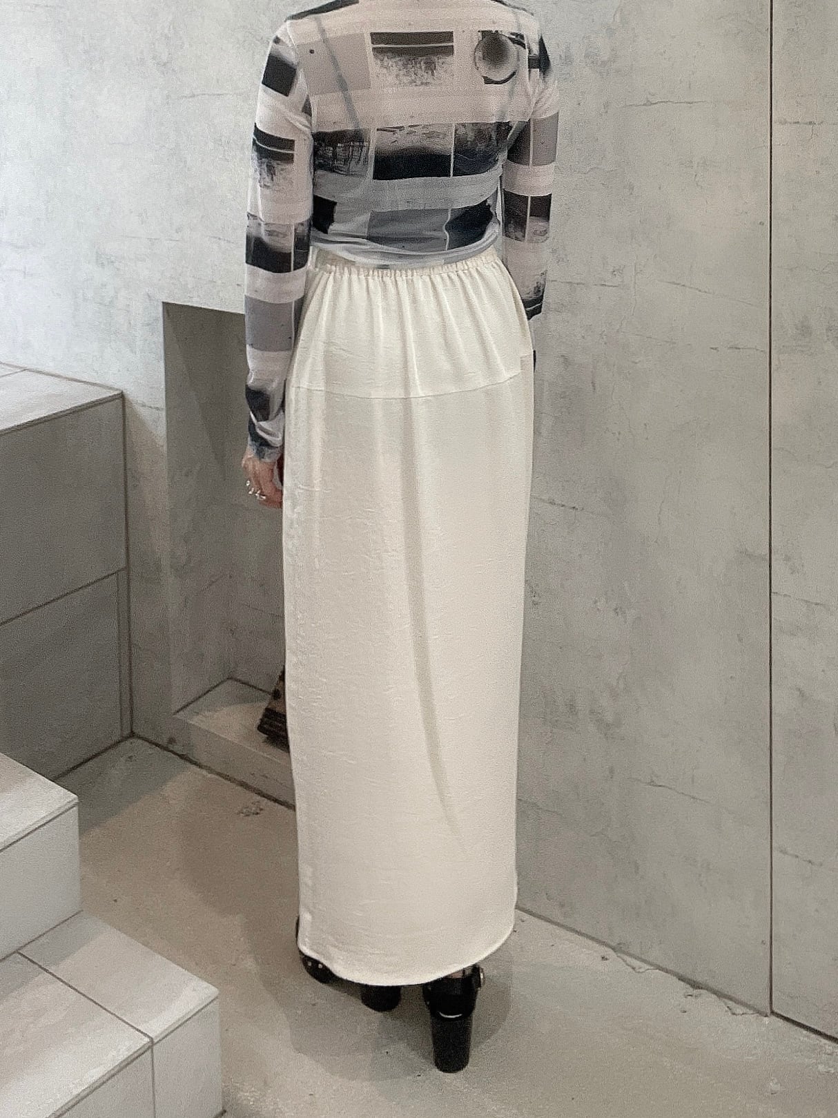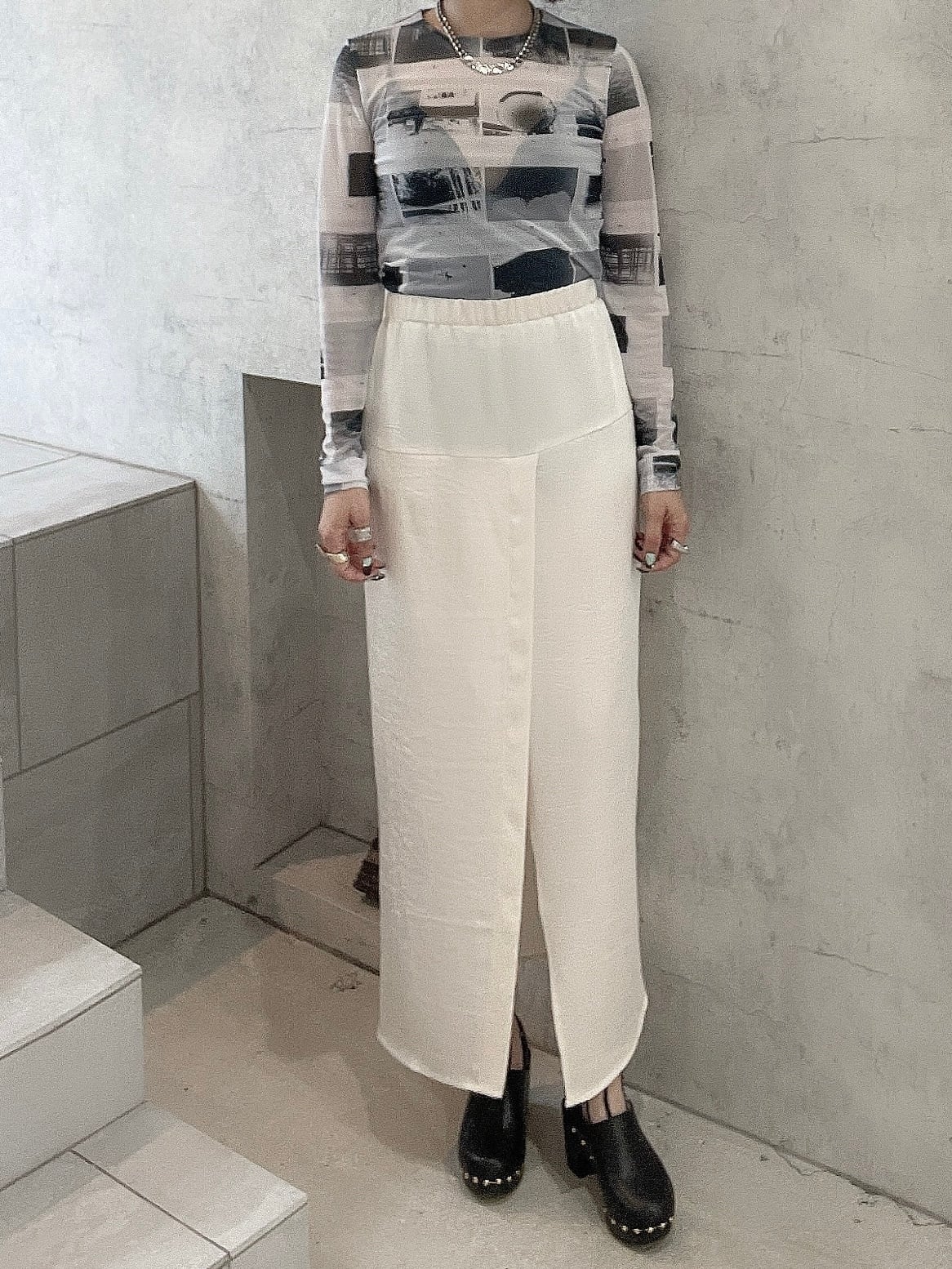シワにならない布地にシワ加工を施し布地自体にも表情があり光すぎずバランスも非常に良スリットスカート。