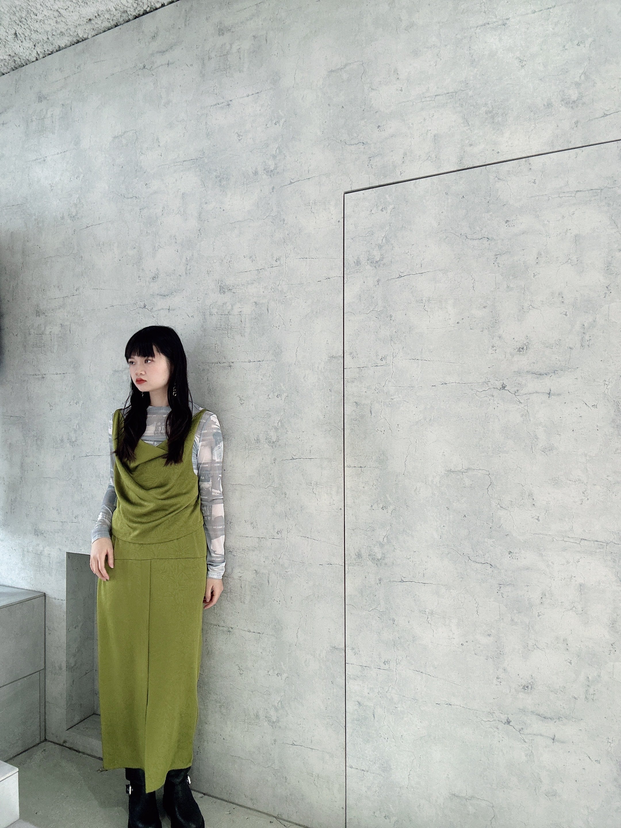 CIRCULATION送料無料【NIGEL PRESTON ナイジェル・プレストン/イギリス】フロントスリットスカート スカート グリーン NO: NPBKWL330J/CRST / LICHEN