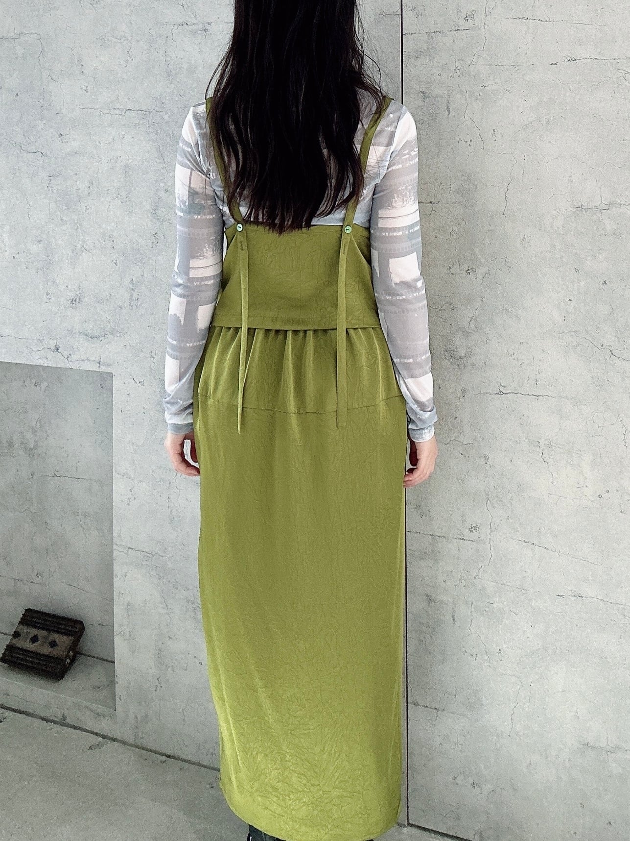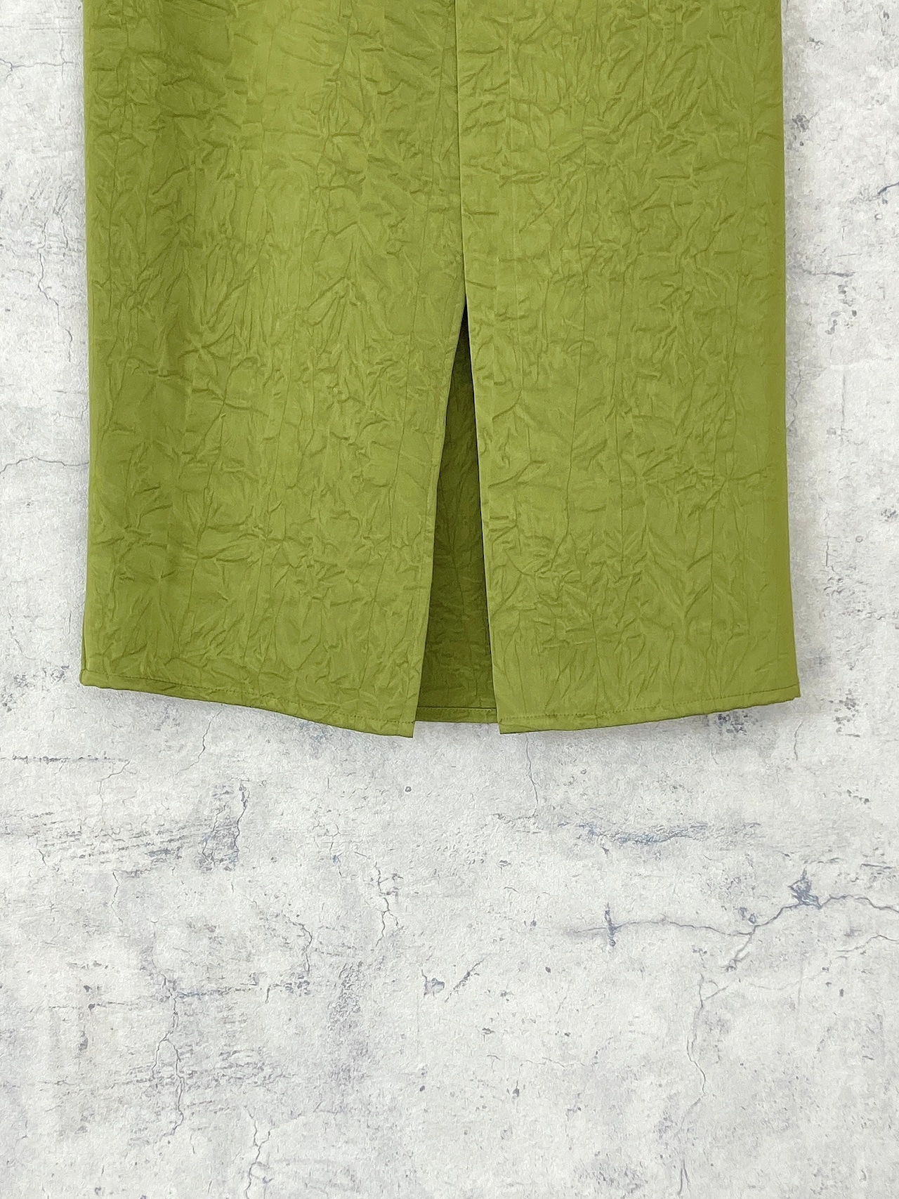 シワにならない布地にシワ加工を施し布地自体にも表情があり光すぎずバランスも非常に良スリットスカート。