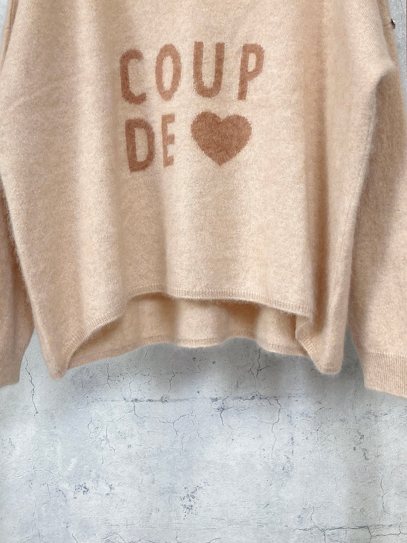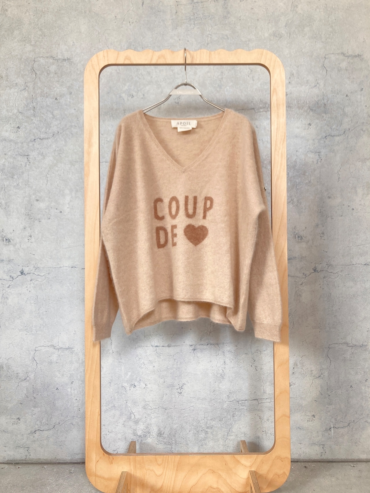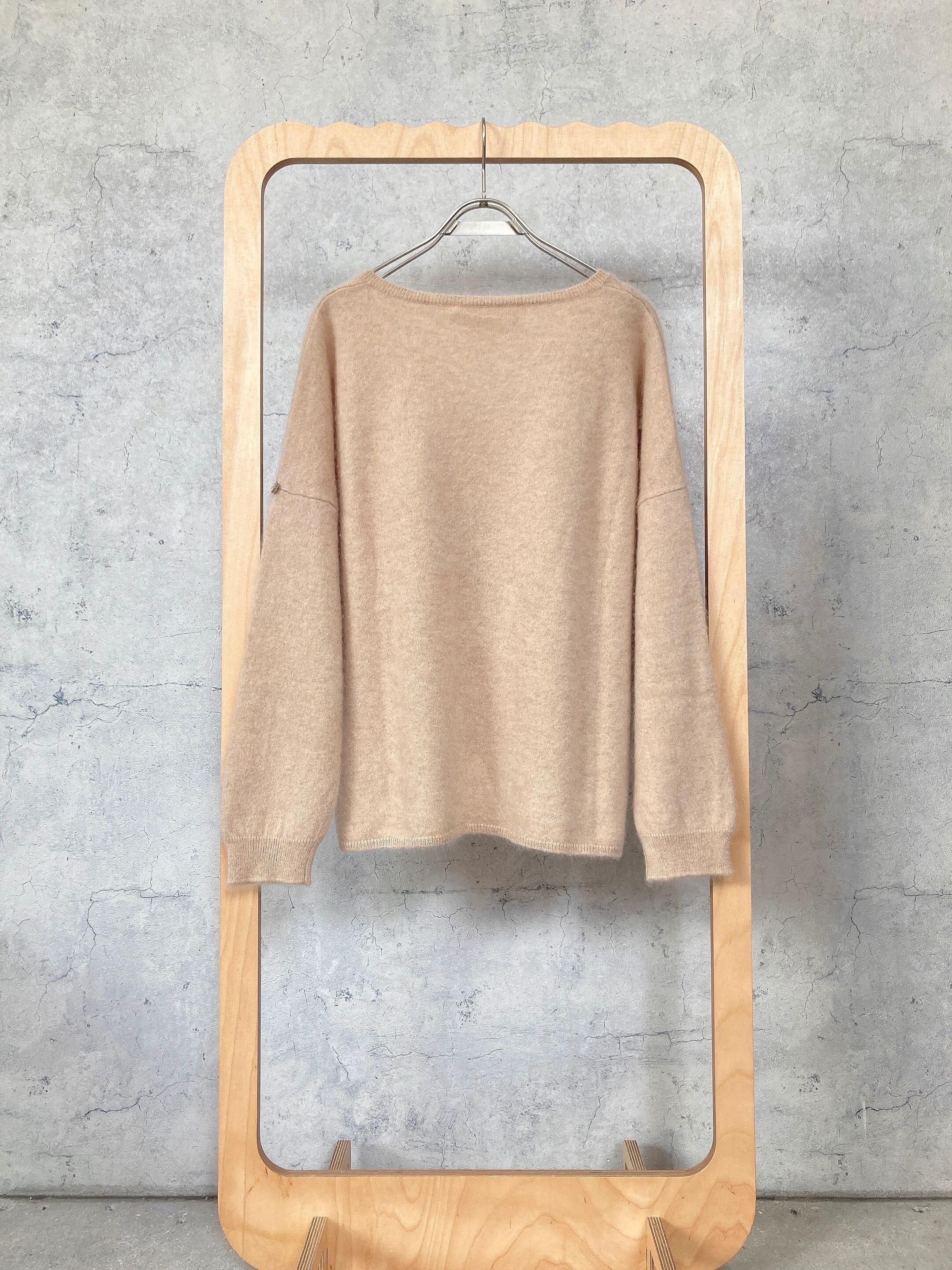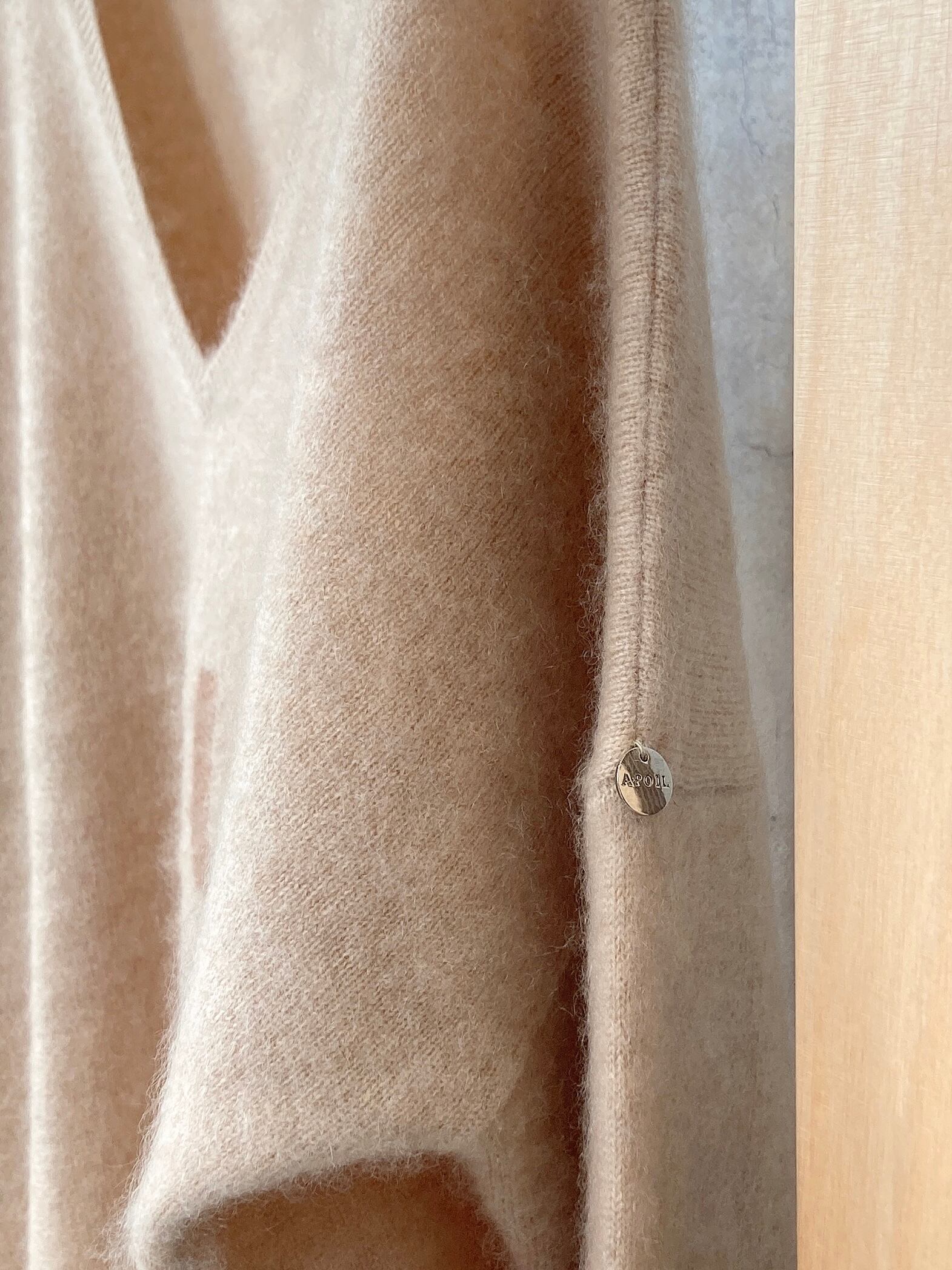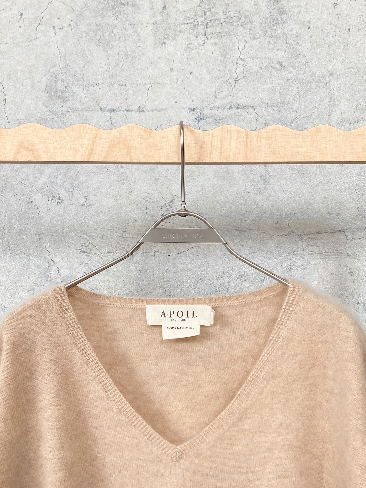 CIRCULATION送料無料【A・POIL アーポワル/フランス】カシミヤVネックロゴニット カシミヤ100% Vネック ロゴニット ベージュ NO: AP HERSE / COL A(Beige/Camel)