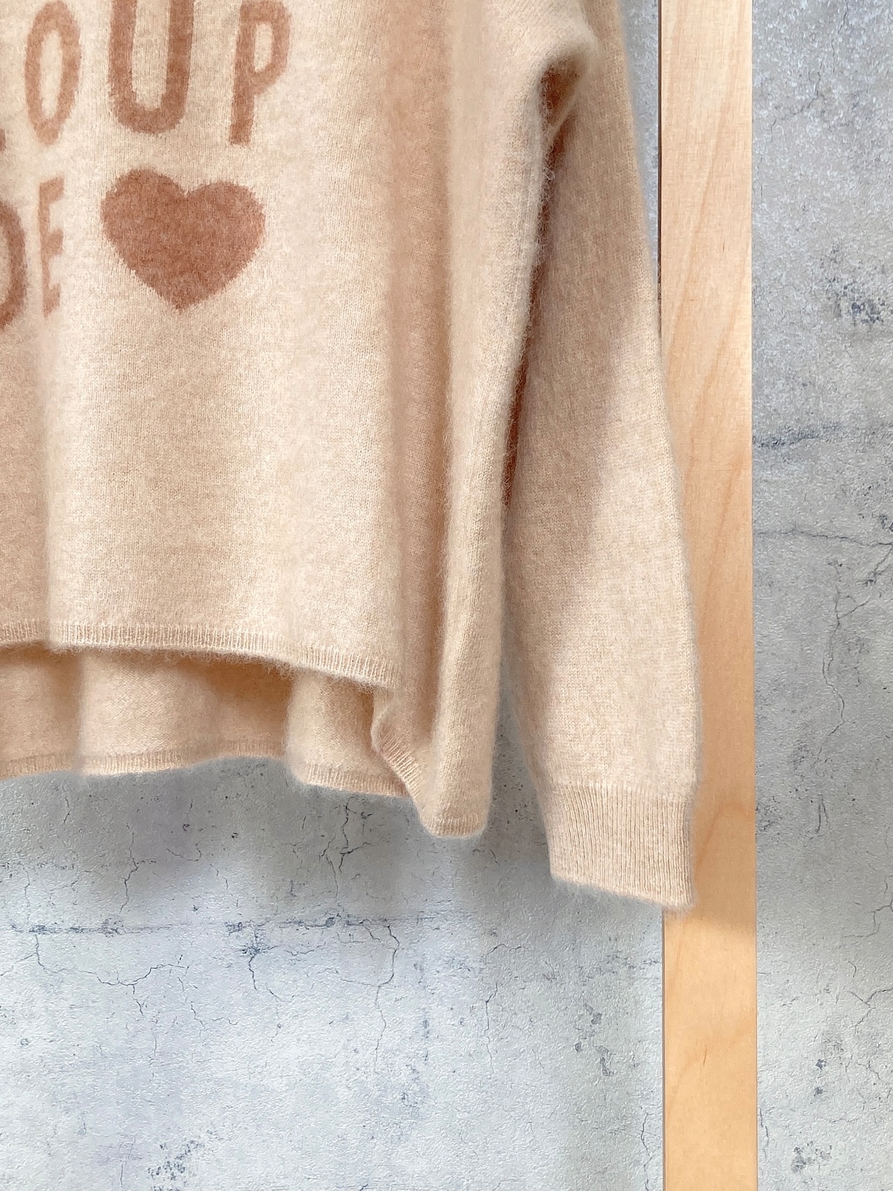 APOILのカシミアはフランスでも特に良いカシミヤを長年にわたり使用しており、その風合いはみるからに上質で心地よい肌触りは一度着用すると包まれているような気持ちになる最高級ならではの質感です。