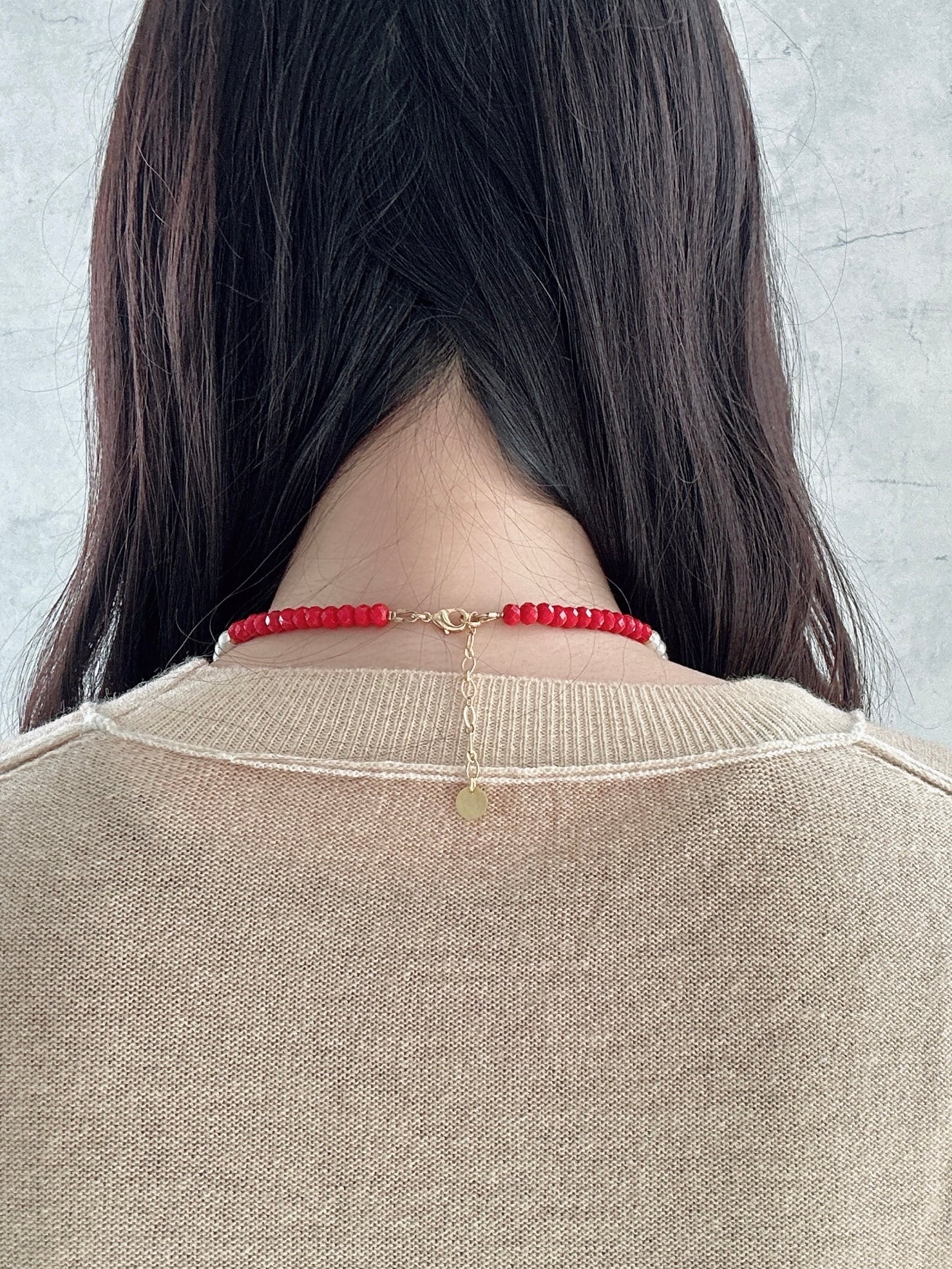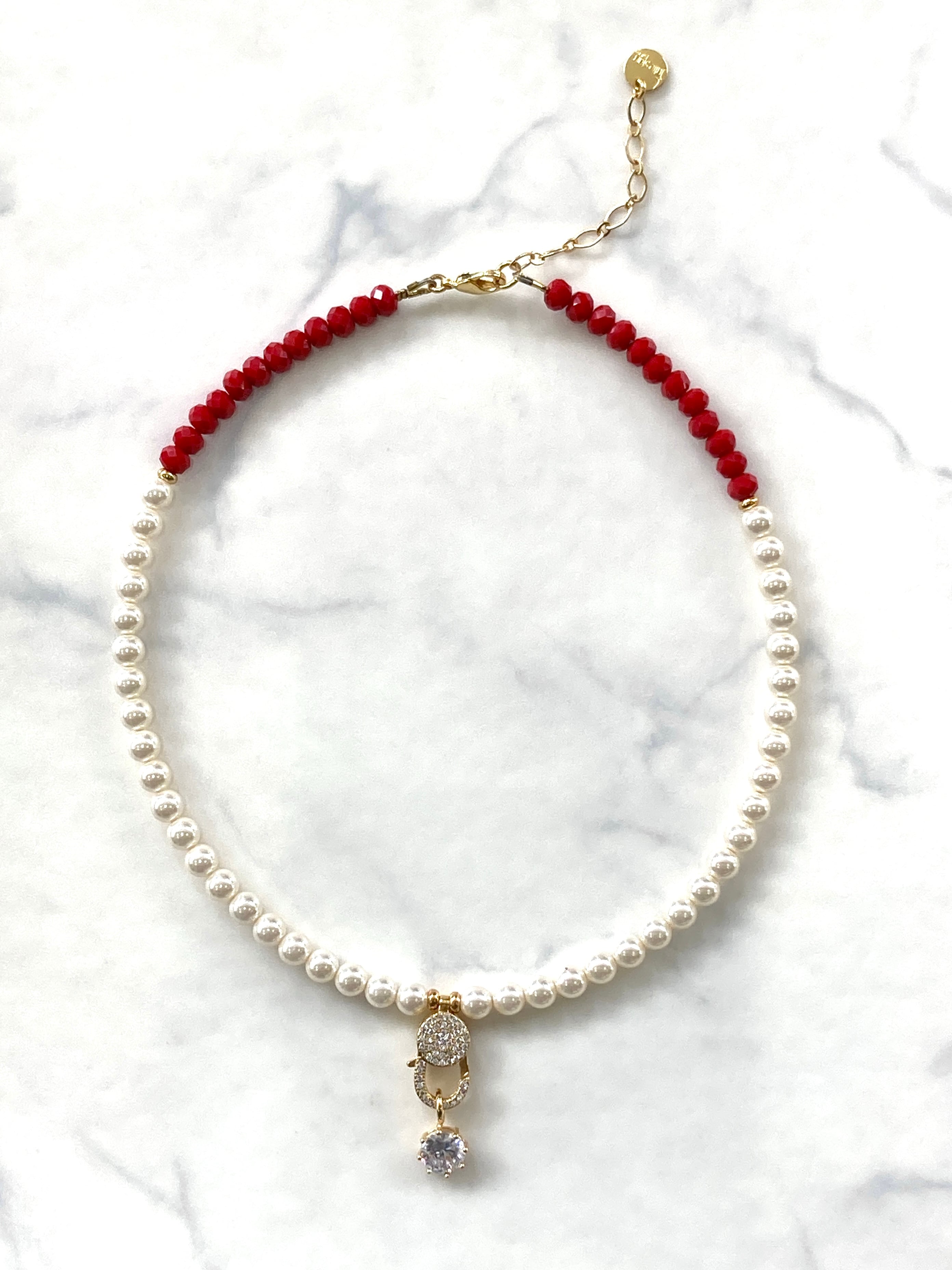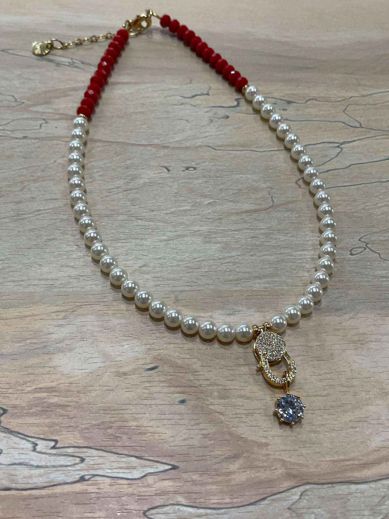 CIRCULATION送料無料【JULIE SION ジュリーシオン/フランス】クリスタルパールネックレス レッド ゴールド NO: Collier LOVER Pearl/NC Red