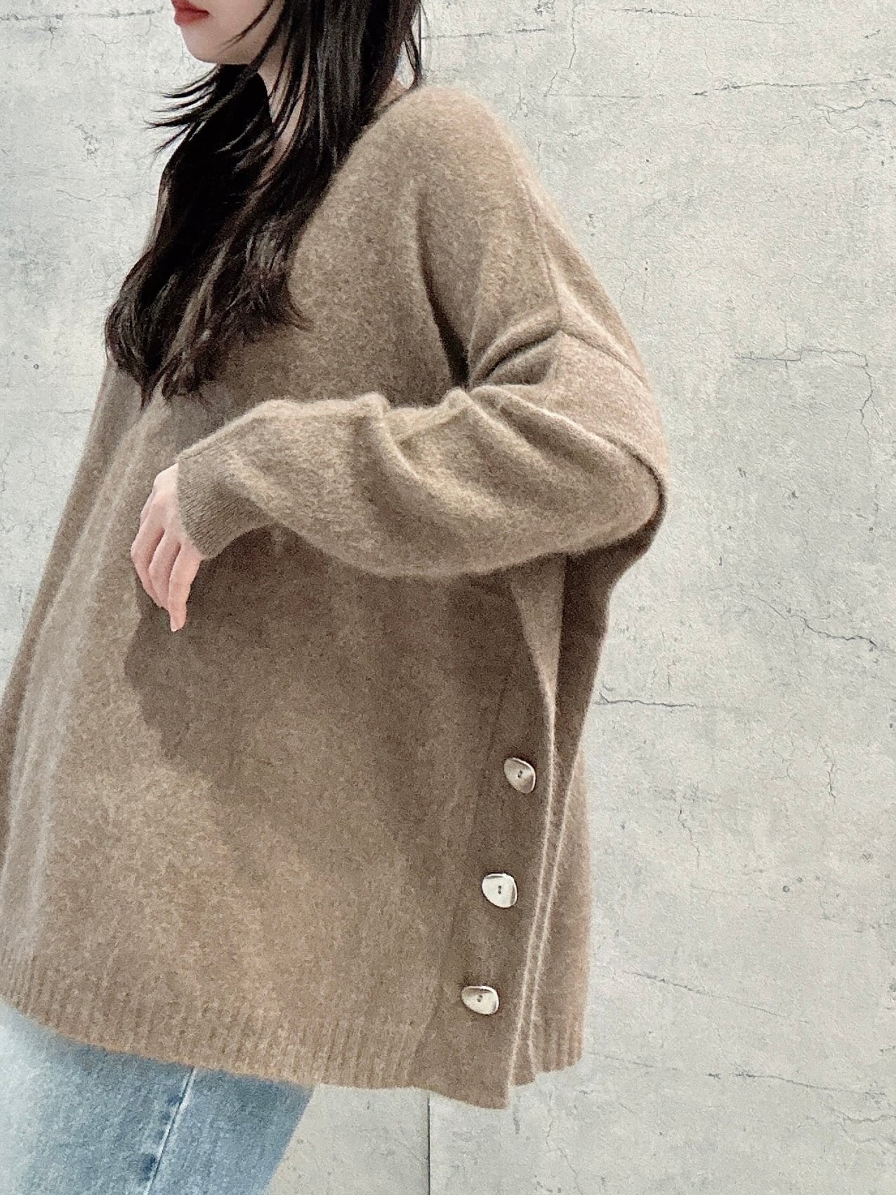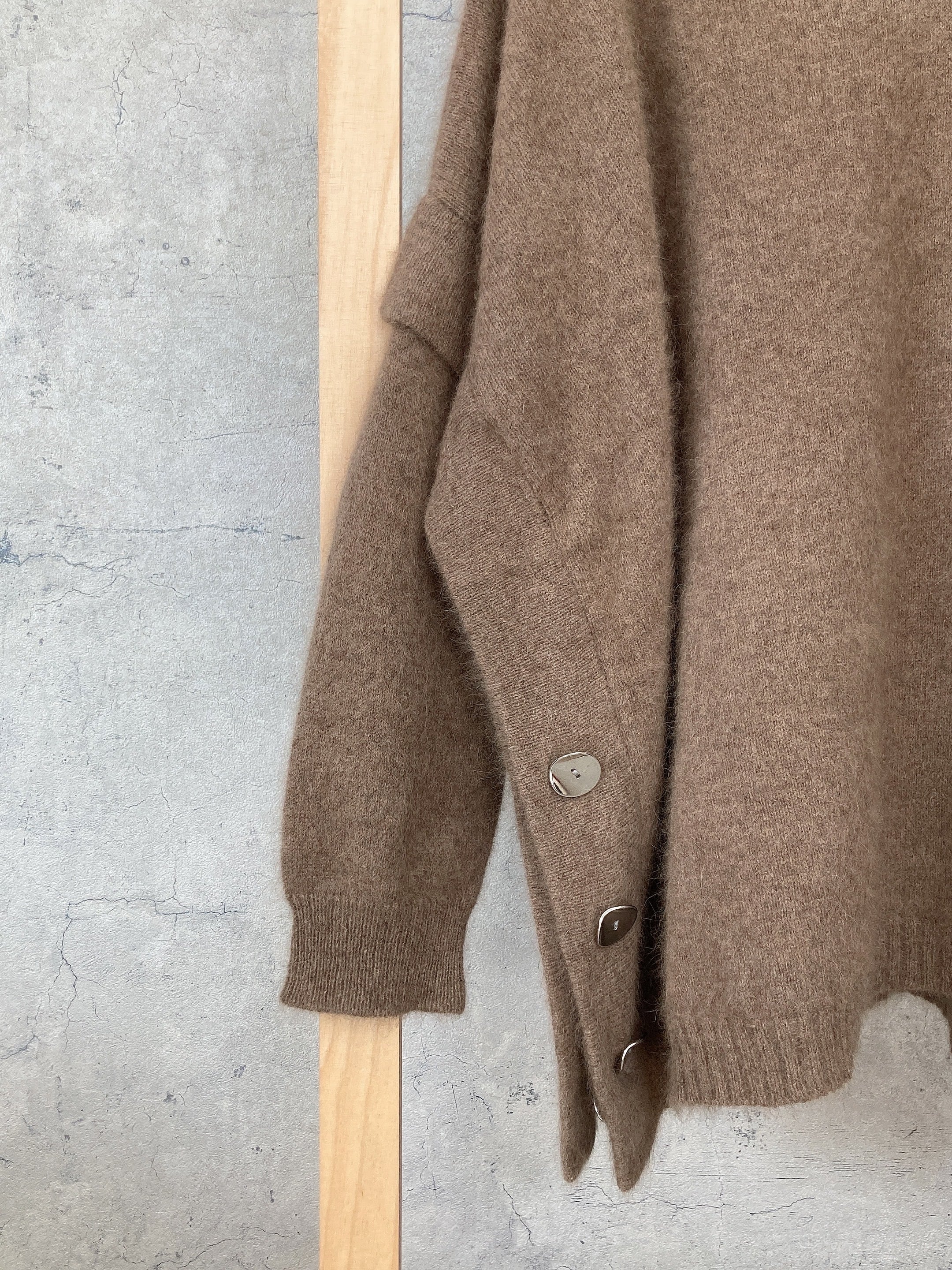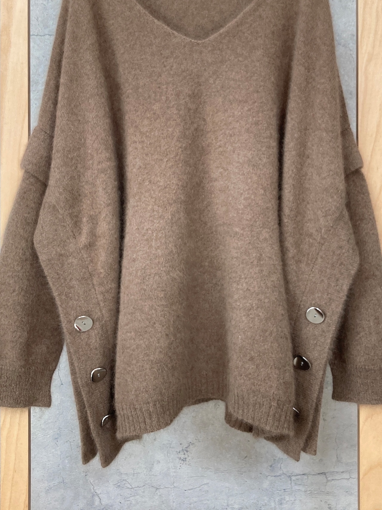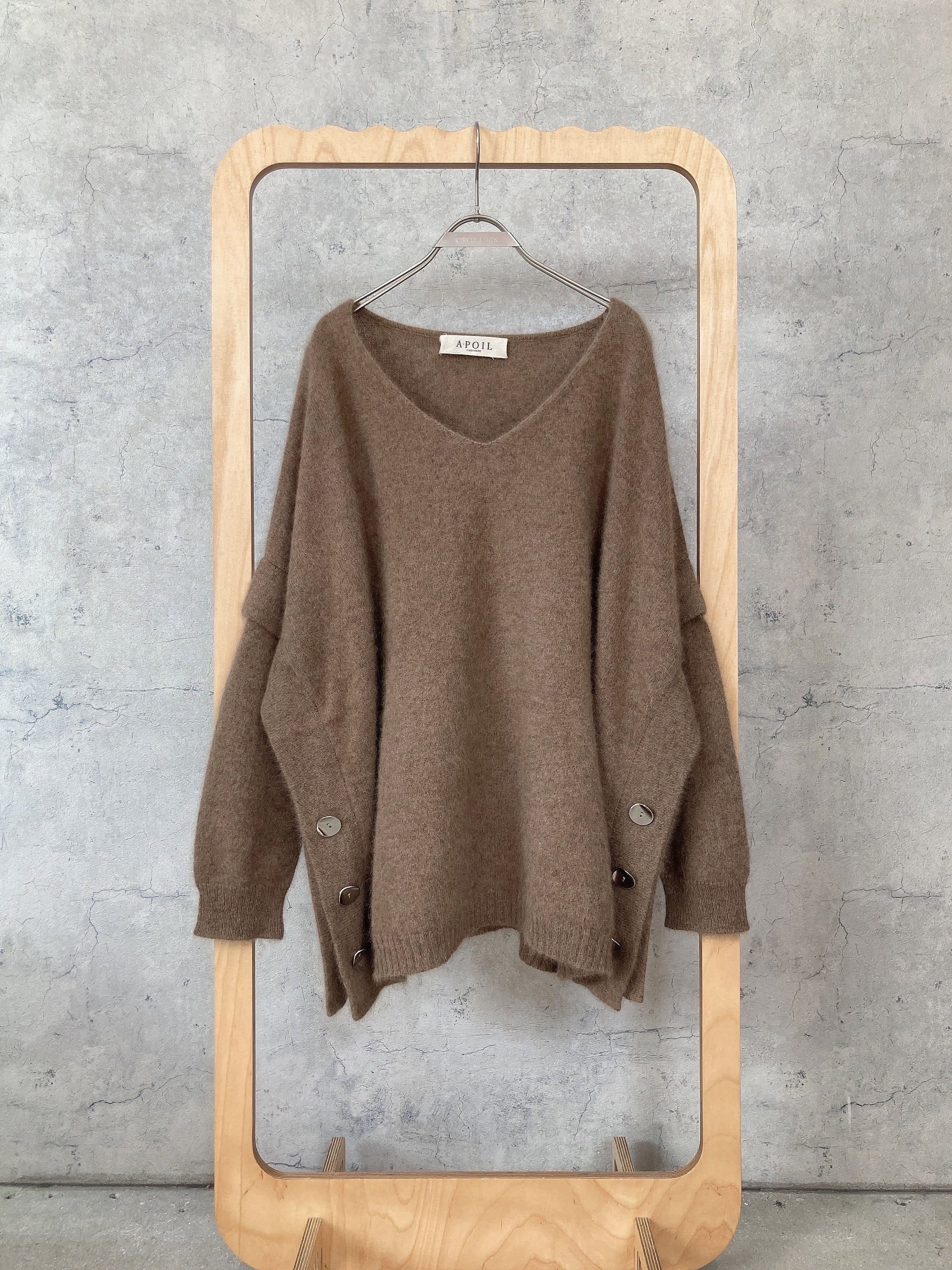 商品説明 CIRCULATION送料無料【A・POIL アーポワル/フランス】ラクーンサイドボタンデザインVネックニット ラクーン100% ブラウン NO: AP HYSTERIE / Kindle(ブラウン)