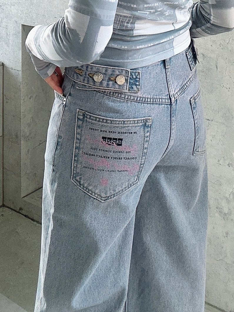 CIRCULATION送料無料【 EENK インク / 韓国 】ポケットロゴプリントデニム ピンク ロゴ デニム NO: EEC-1Q151-DP01-PK / Pink Wash