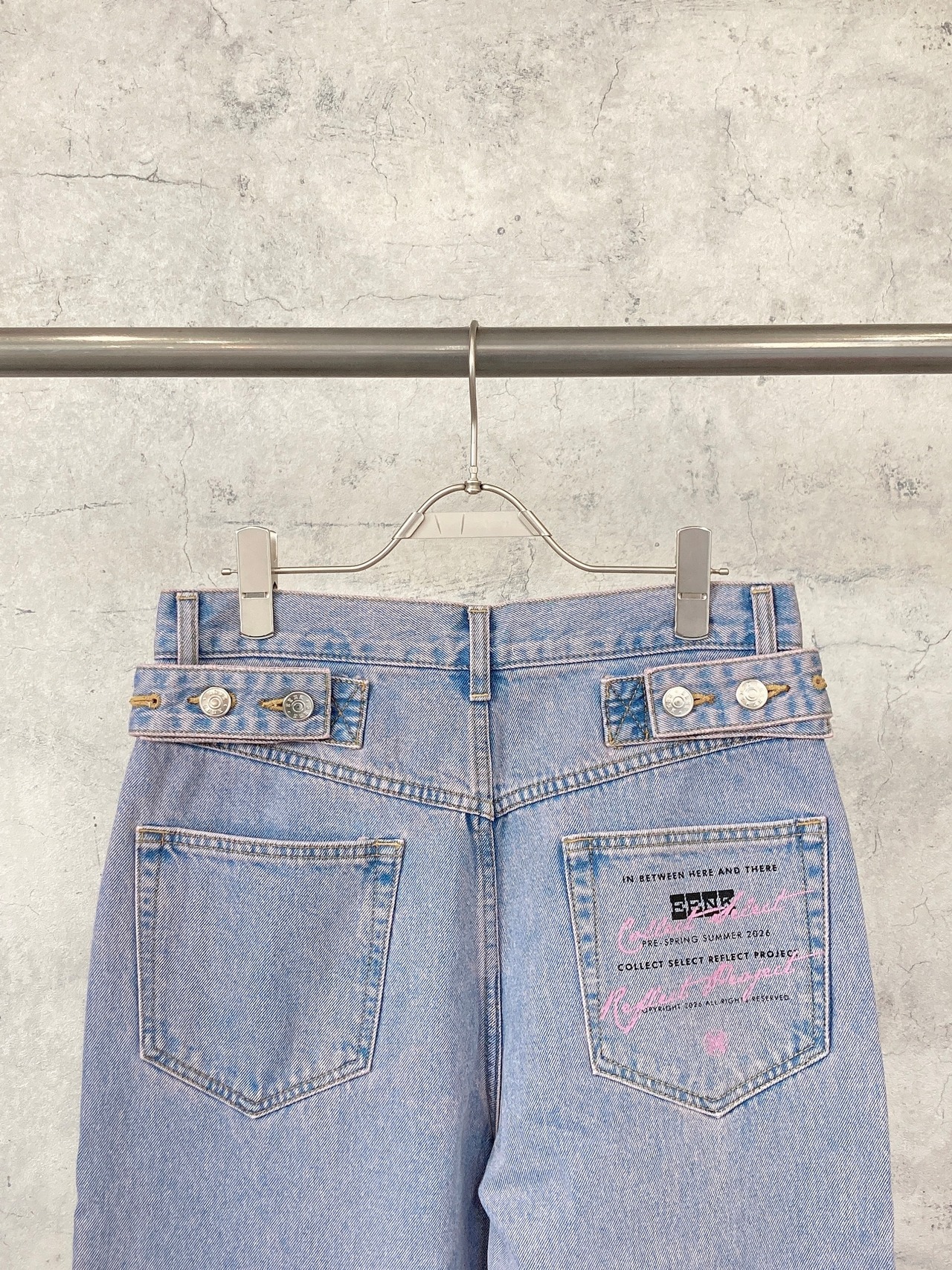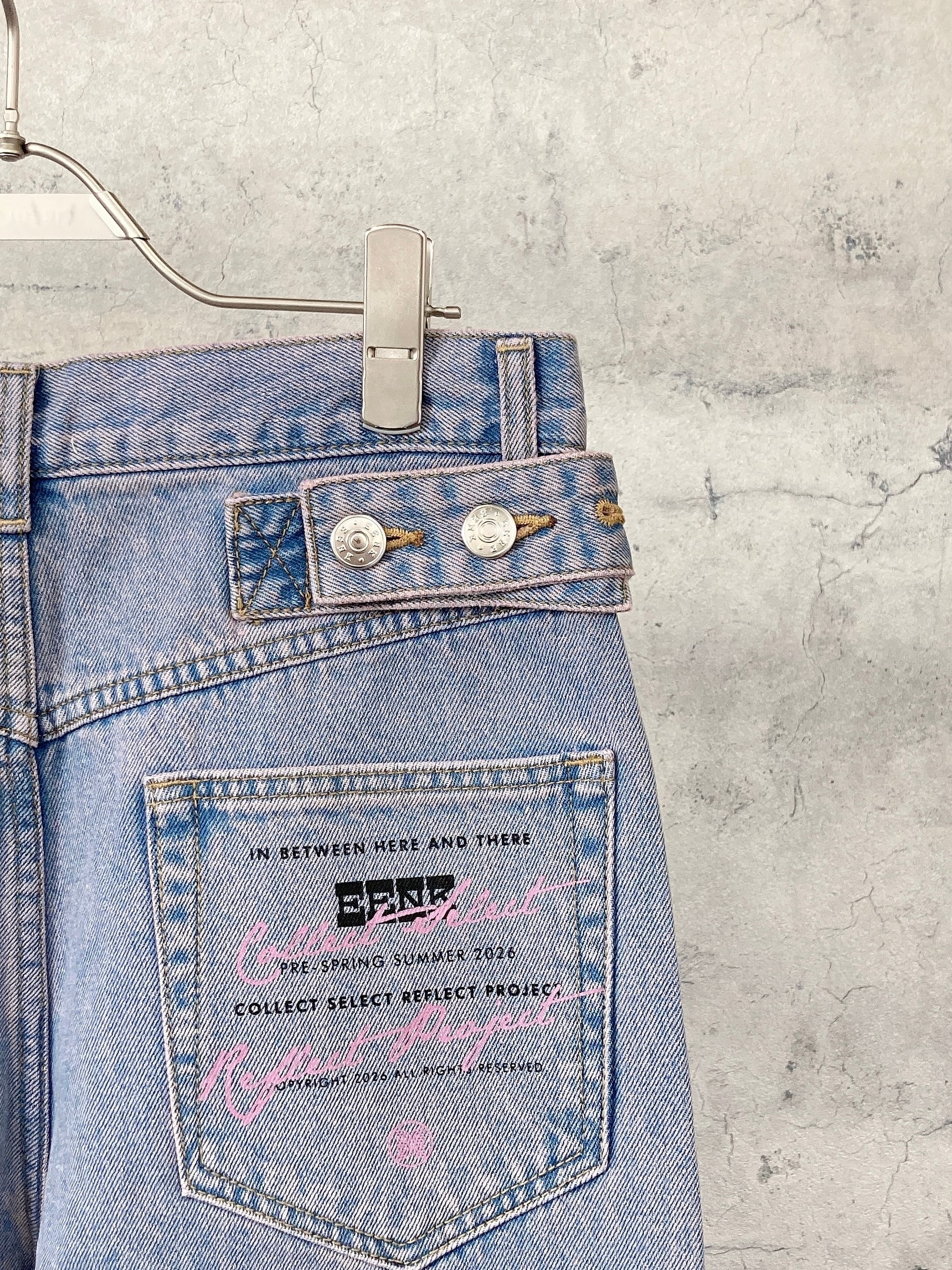 ピンクウォッシュ デニム。サイドやbackポケットなどEENKらしい細部まで拘ったデニムがスタイリングに差をつけてくれます。