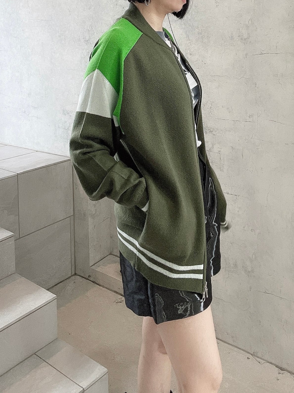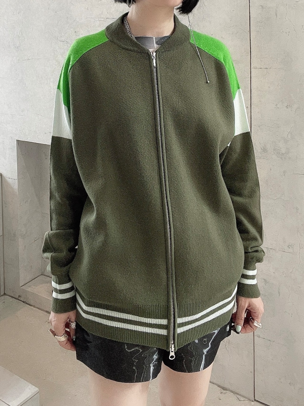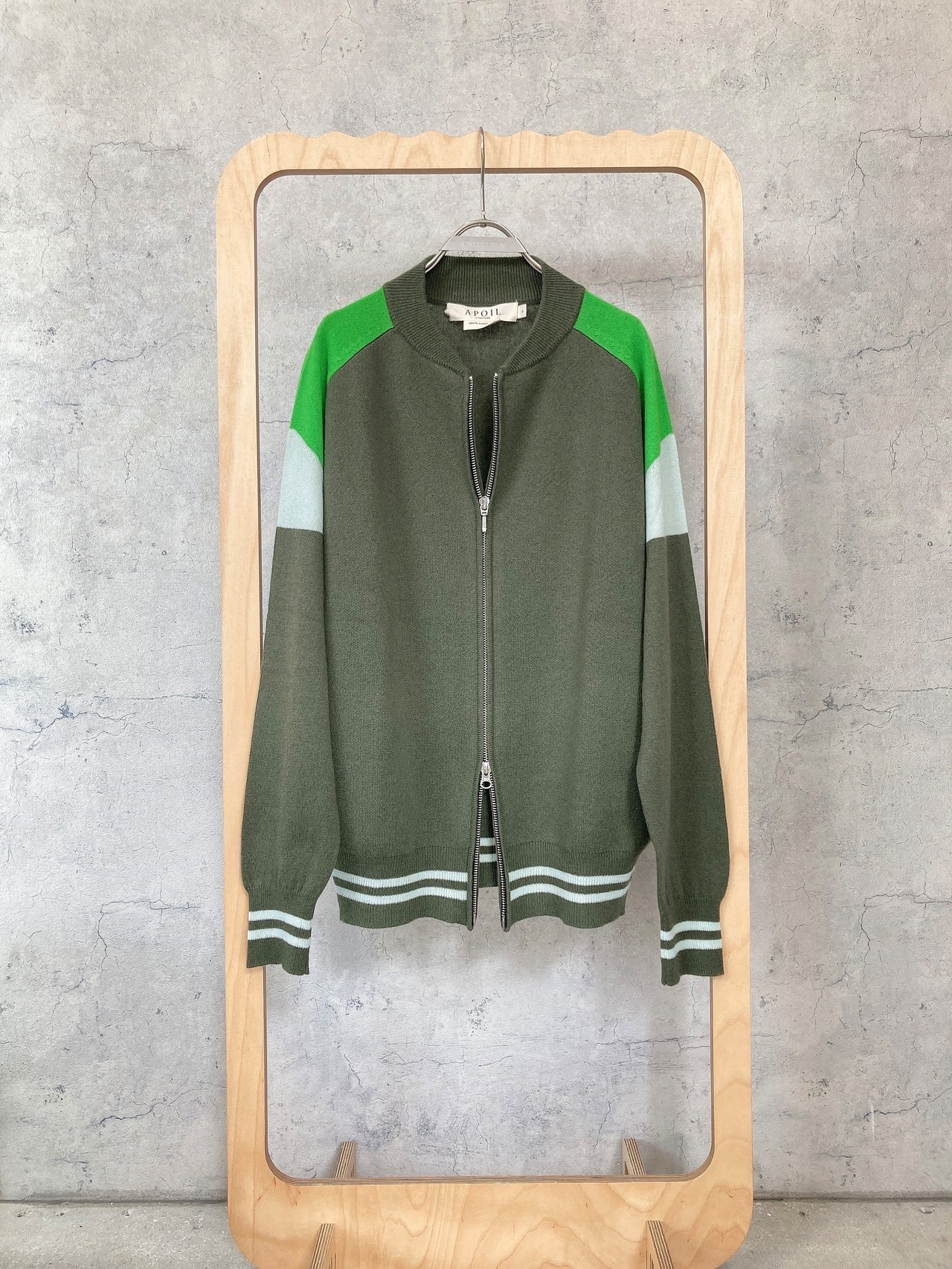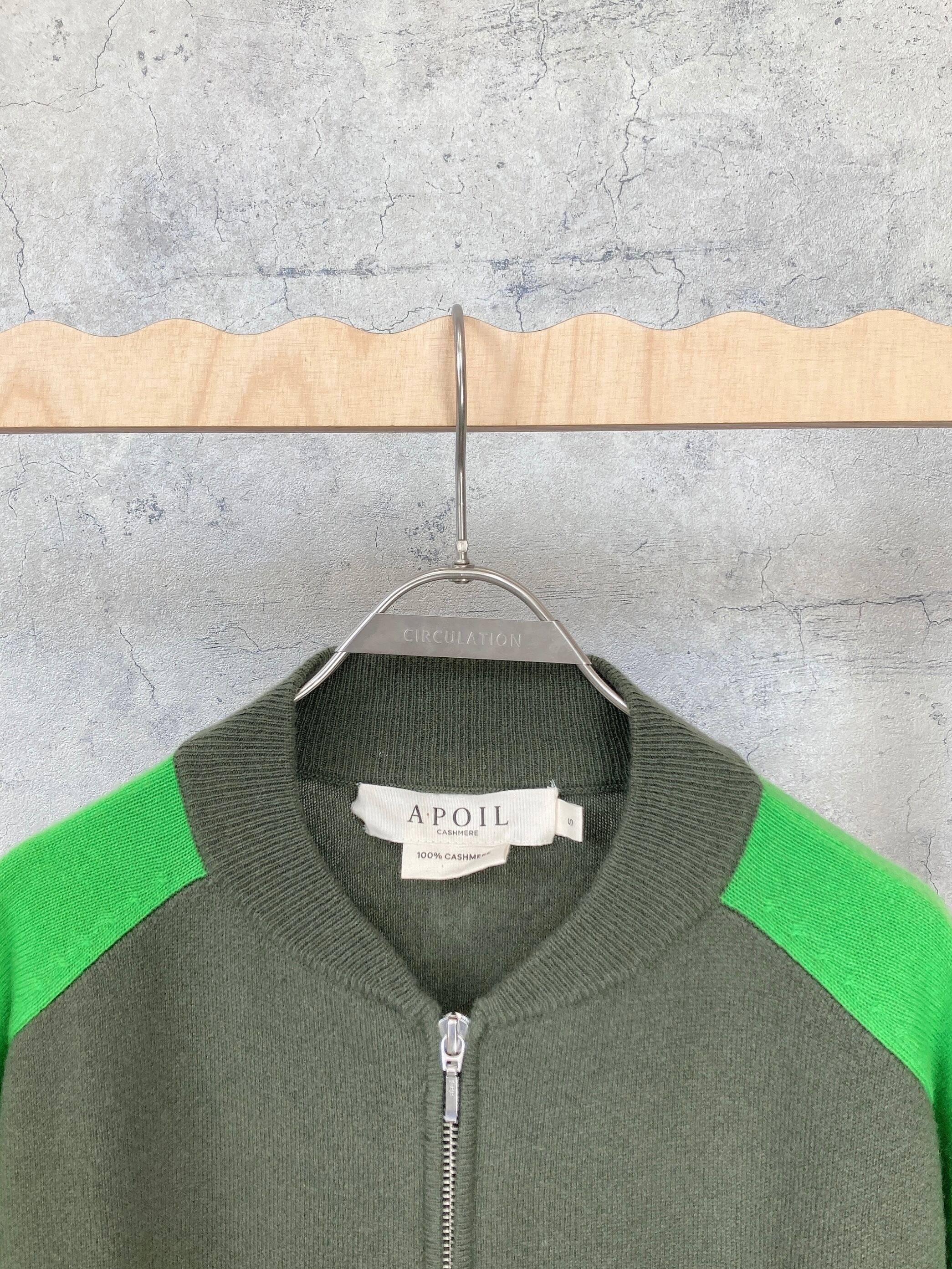 CIRCULATION送料無料【A・POIL アーポワル/フランス】100%カシミヤ サイドラインフルジップカーディガン サイドライン フルジップ カーディガン NO: AP HISTORIA / COL A(New Khaki/Flash/Spray)