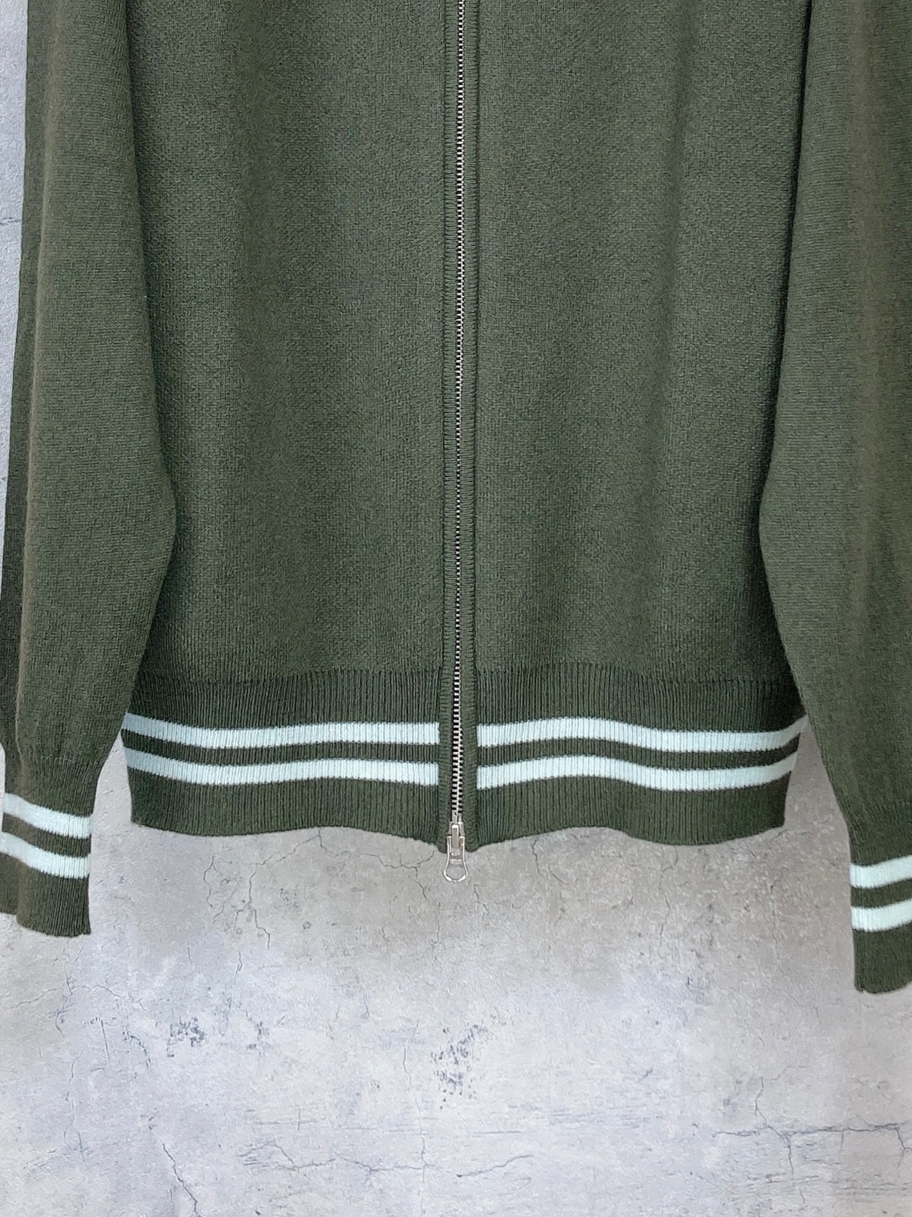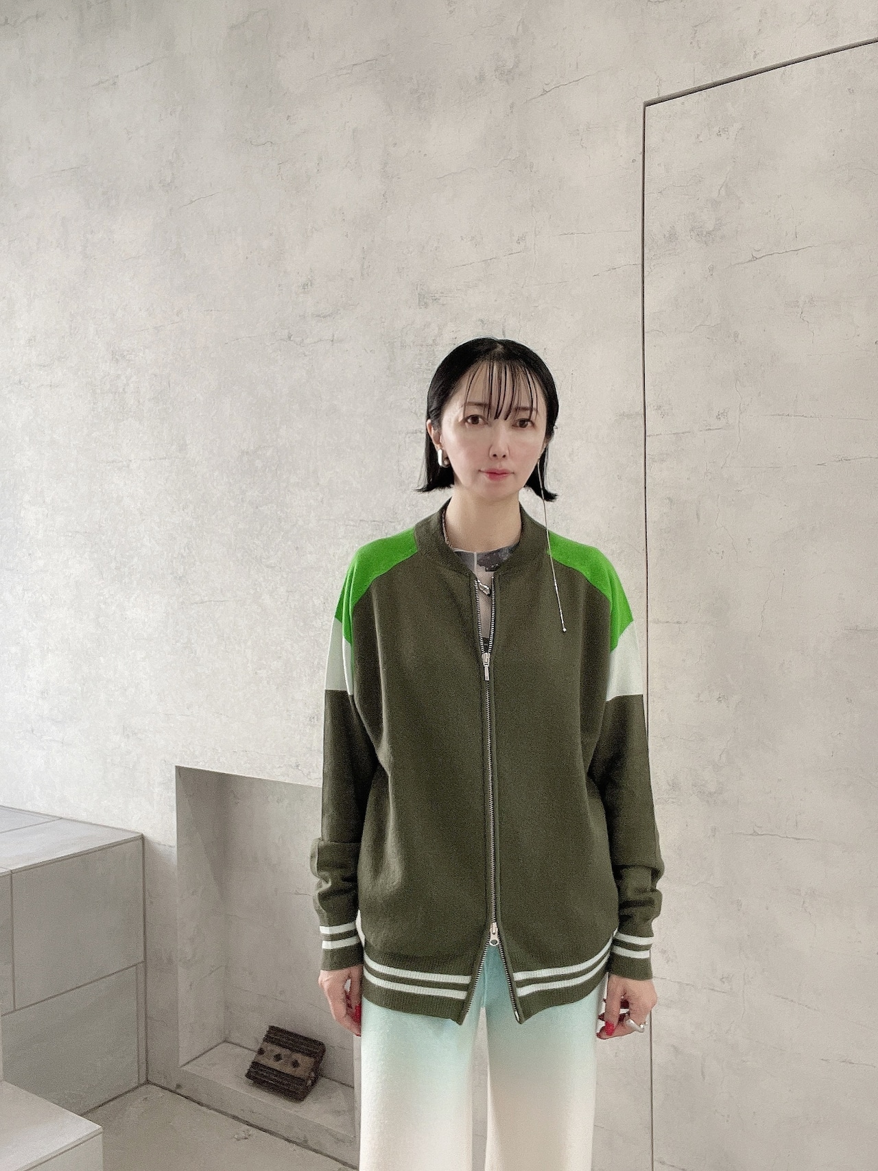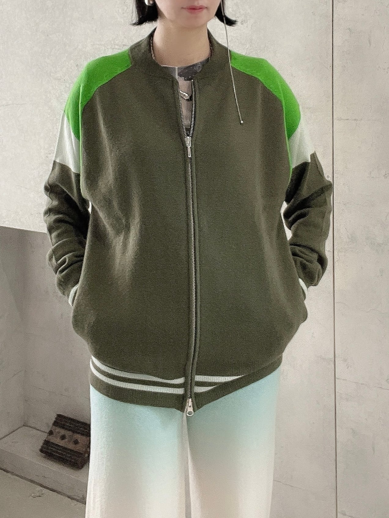 カシミア100%のスポーツテイストのトラックジャケット。白く上質な糸に染色するからこその発色の良さ。ブラックスタイルにもポイントカラーをプラスするヨーロッパならではのスタイリングに。