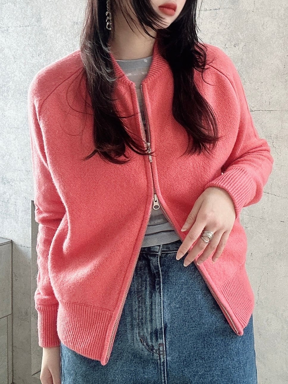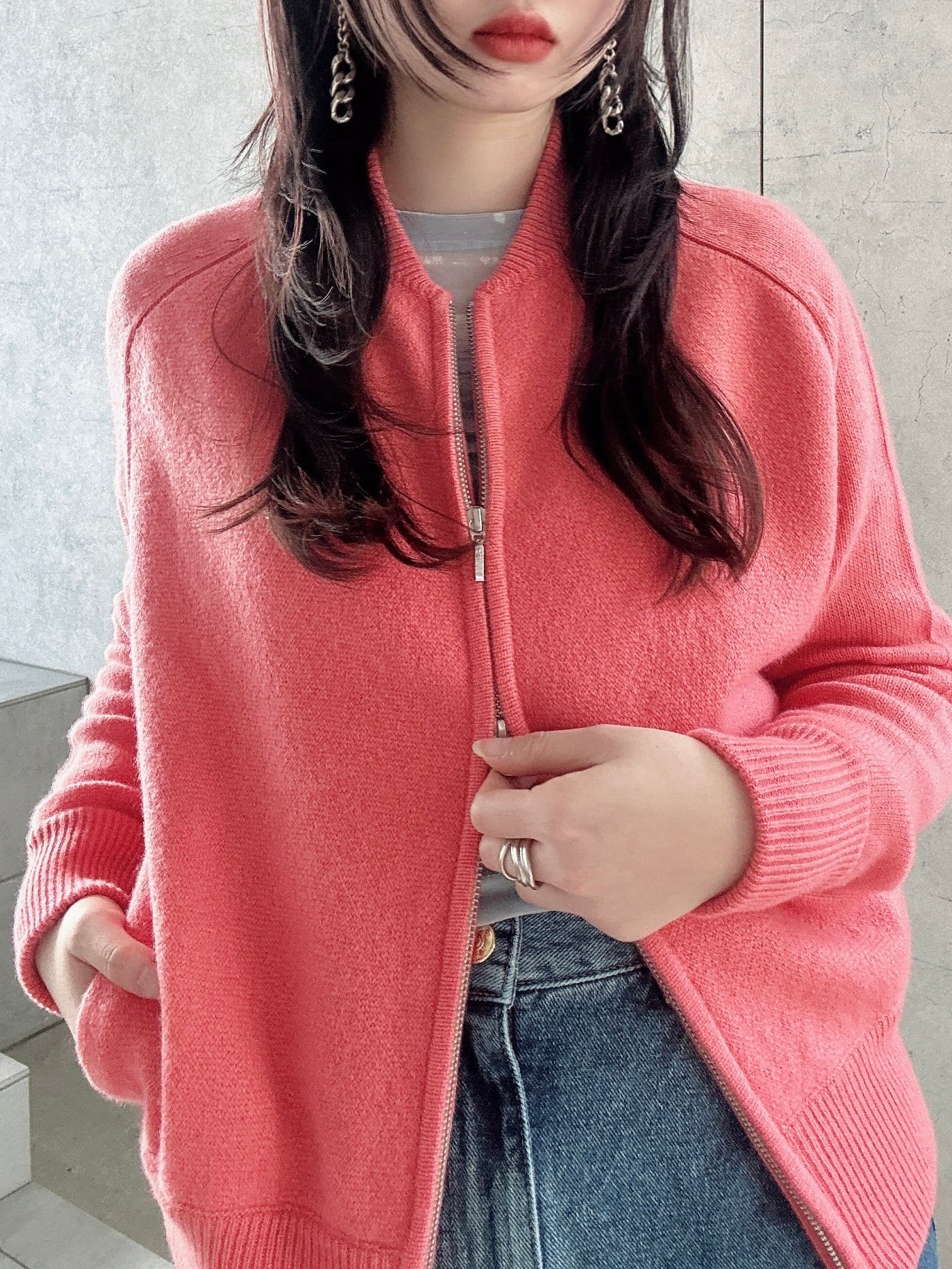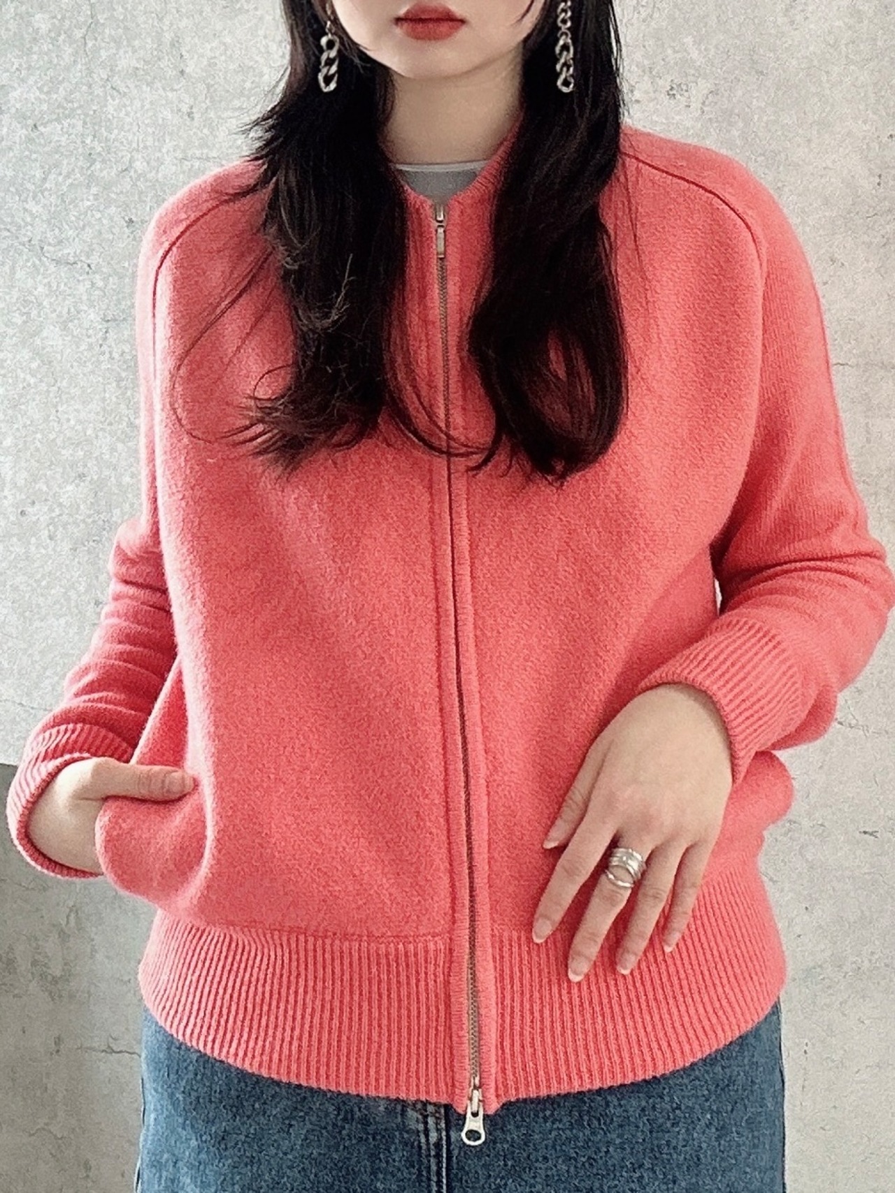 CIRCULATION送料無料【A・POIL アーポワル/フランス】カシミヤ100% ダブルジッパーカシミヤカーディガン ダブルジッパー ピンク NO: AP HENNIM / Peach Bud(ピンク)