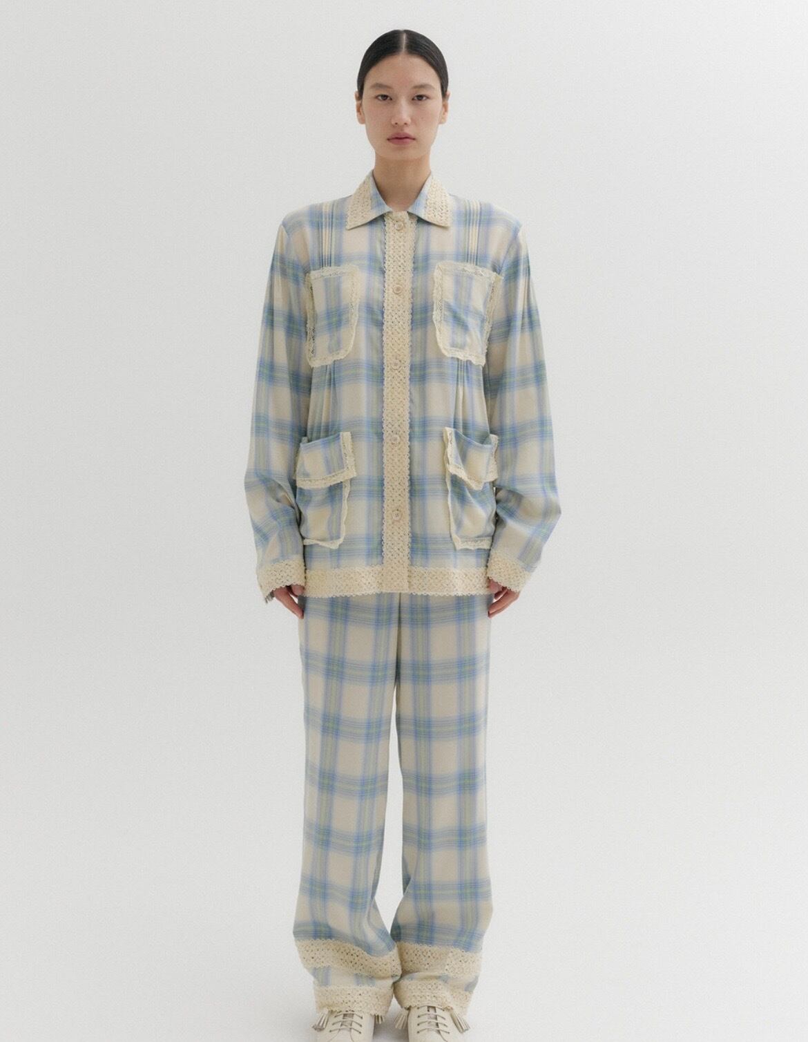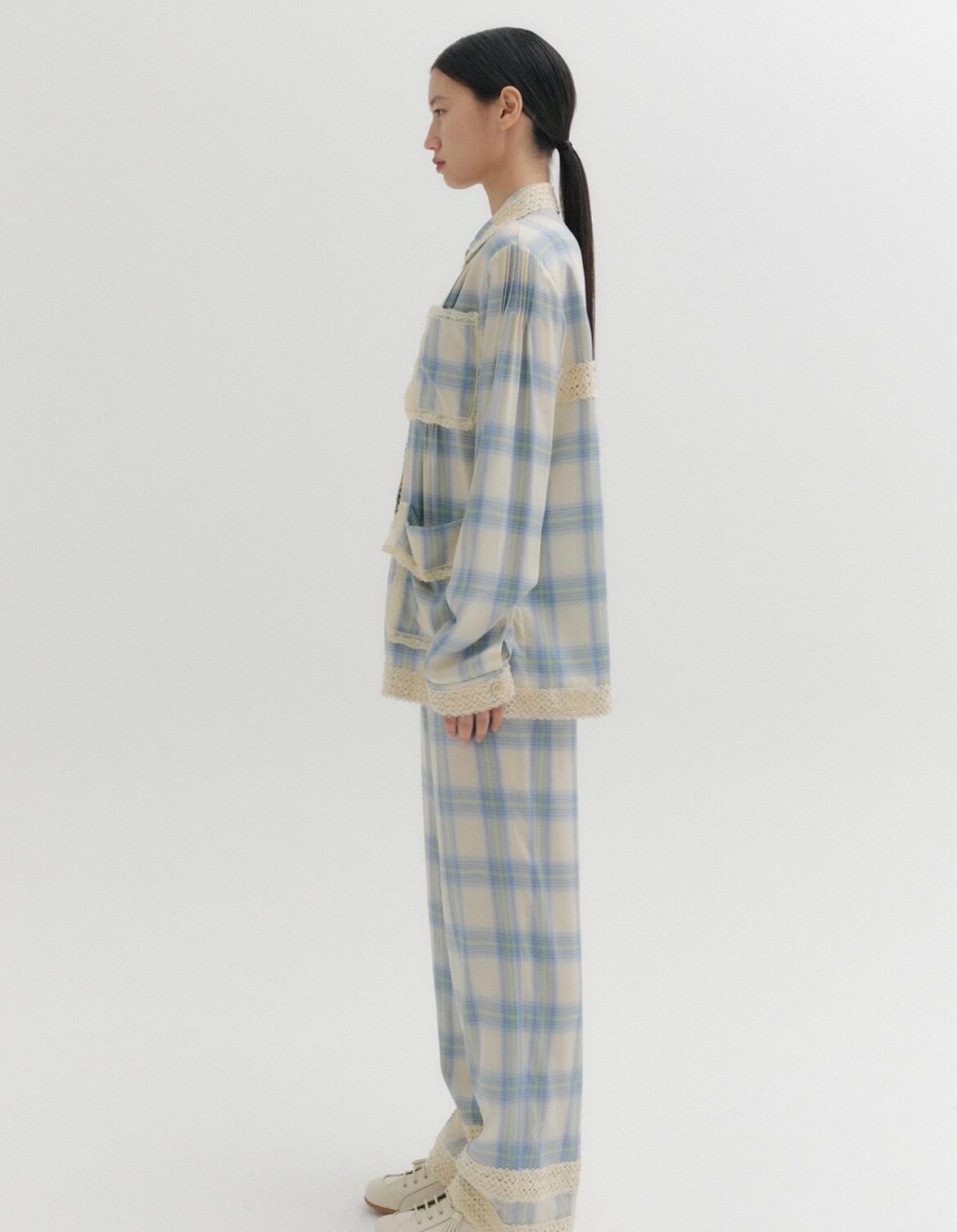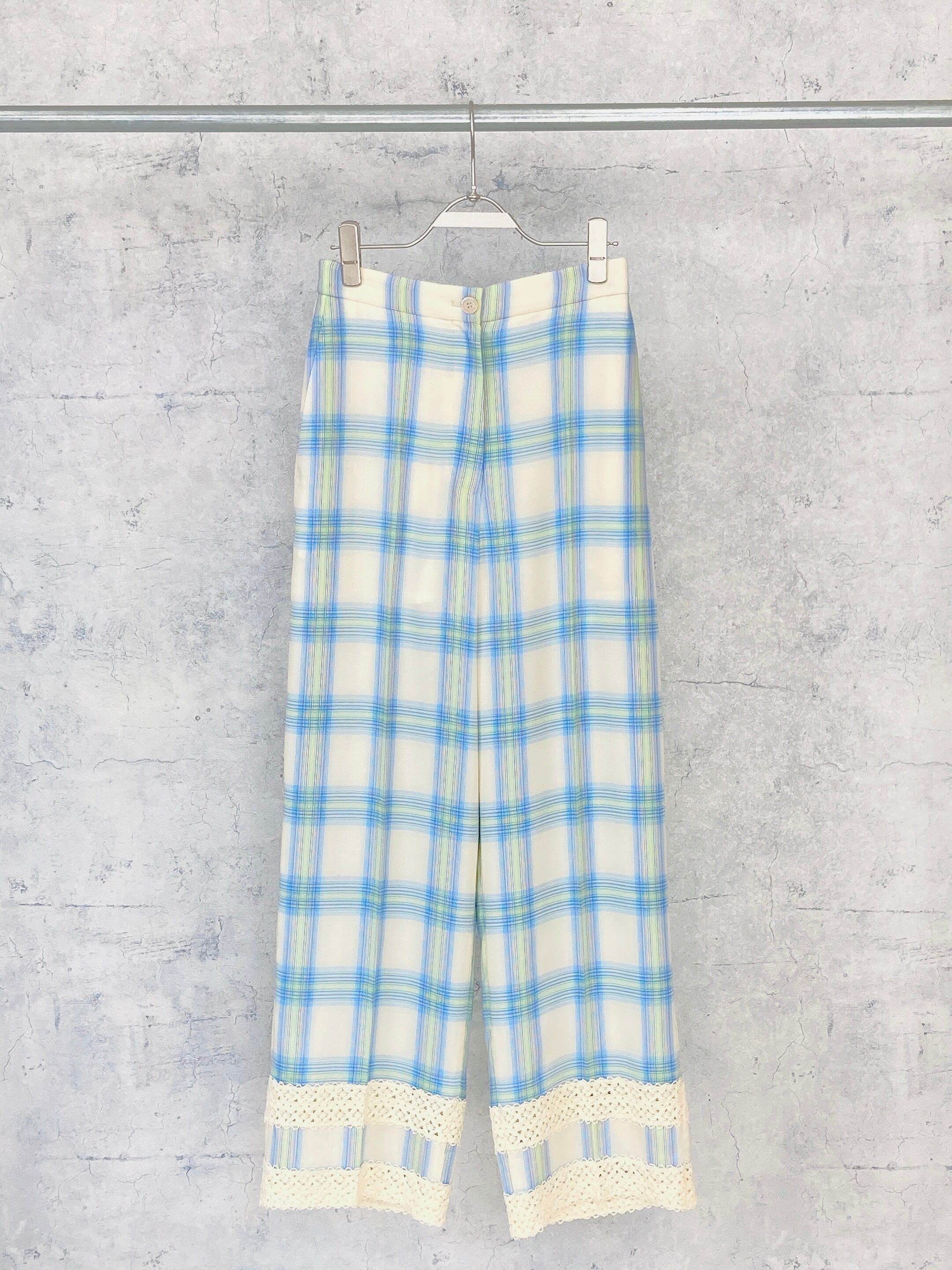 CIRCULATION送料無料【 EENK インク / 韓国 】レースチェックパンツ レース チェック パンツ ブルー緑 NO: EEC-1Q151-PT01-MU / Multi