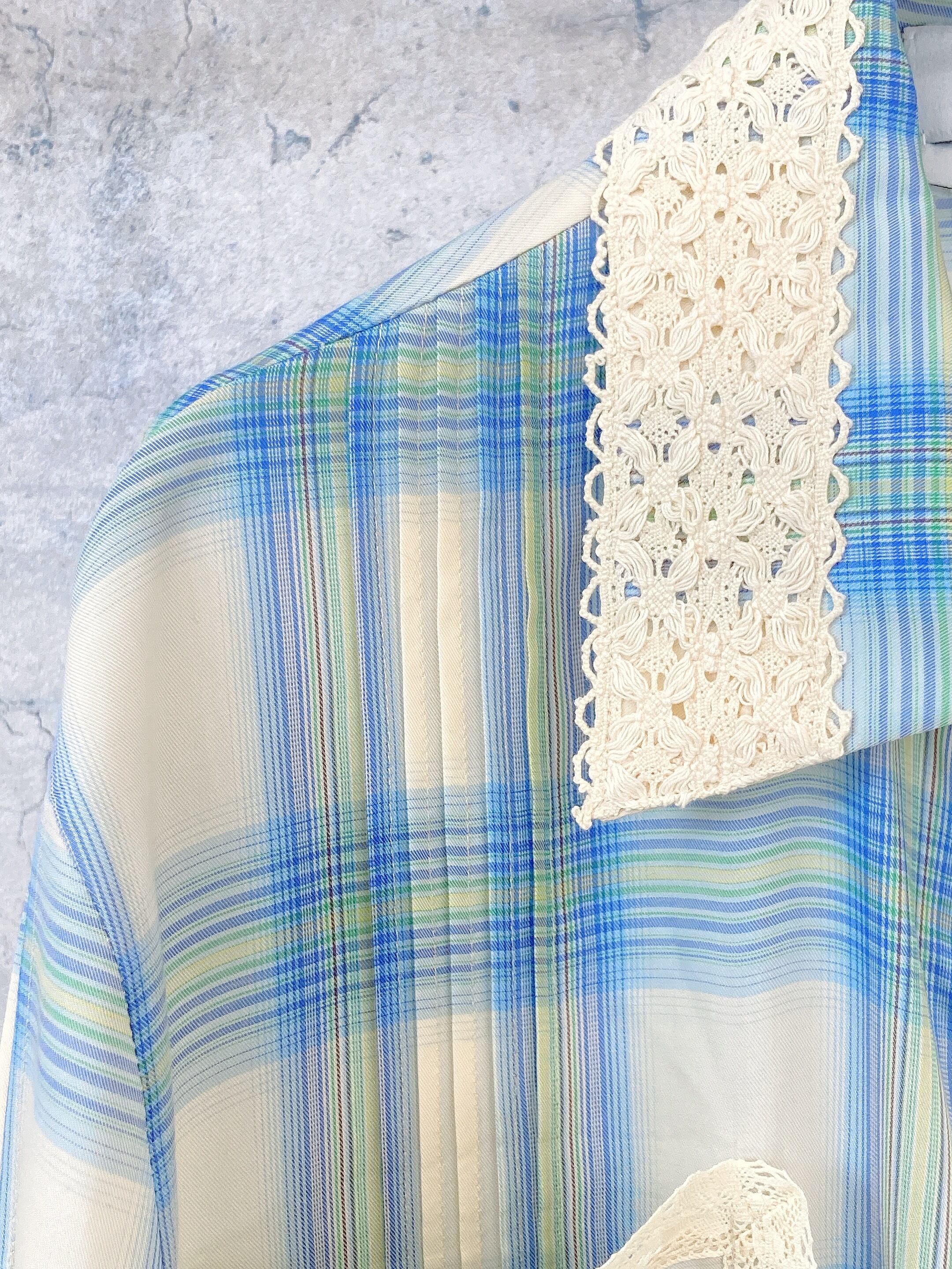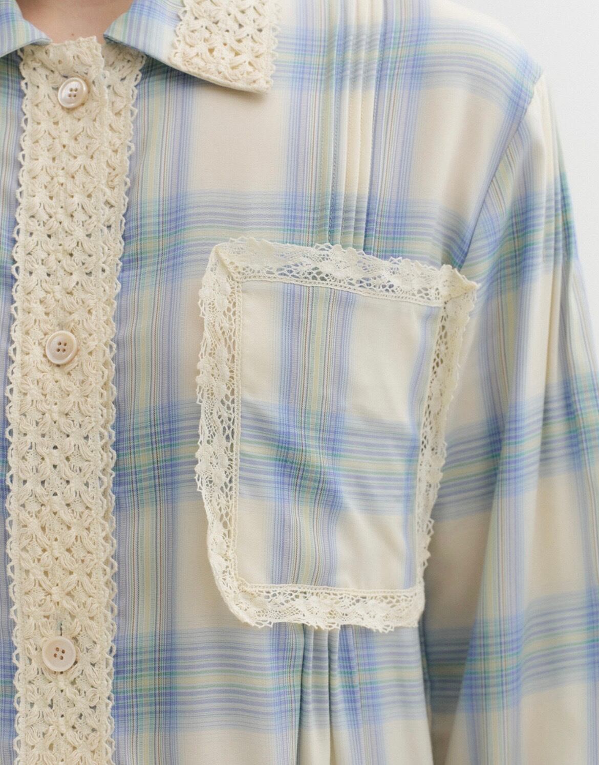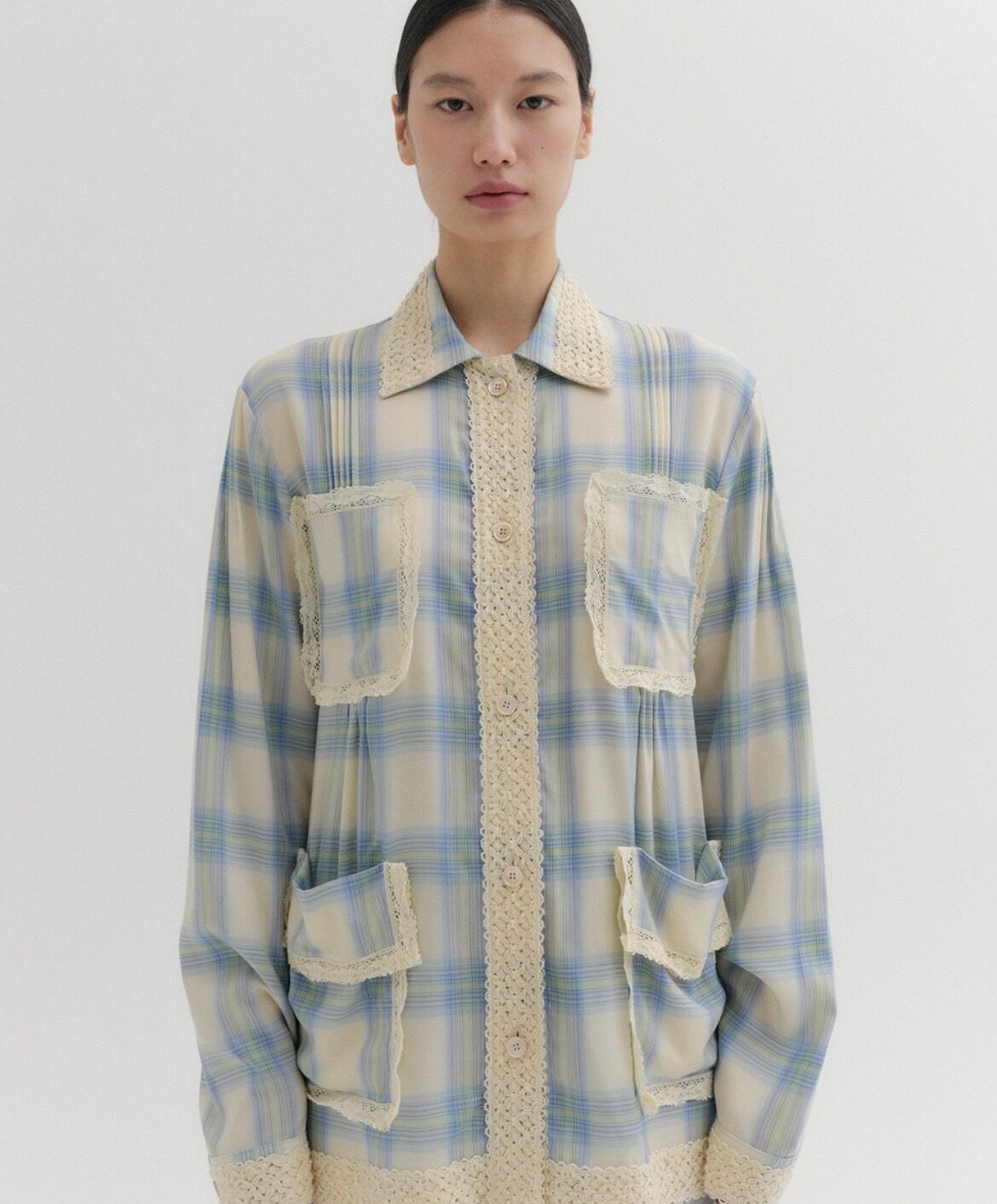 CIRCULATION送料無料【 EENK インク / 韓国 】レースチェックシャツ チェック ブルー緑 チェック シャツ NO: EEC-1Q150-SH03-MU / Multi