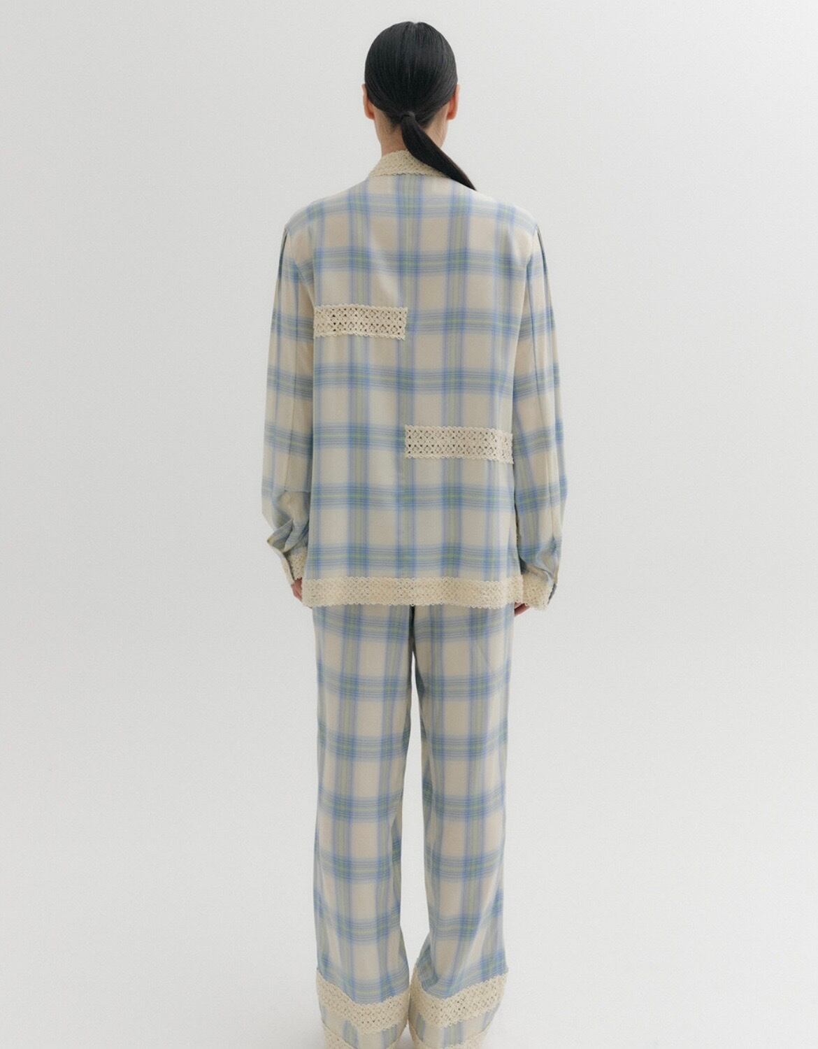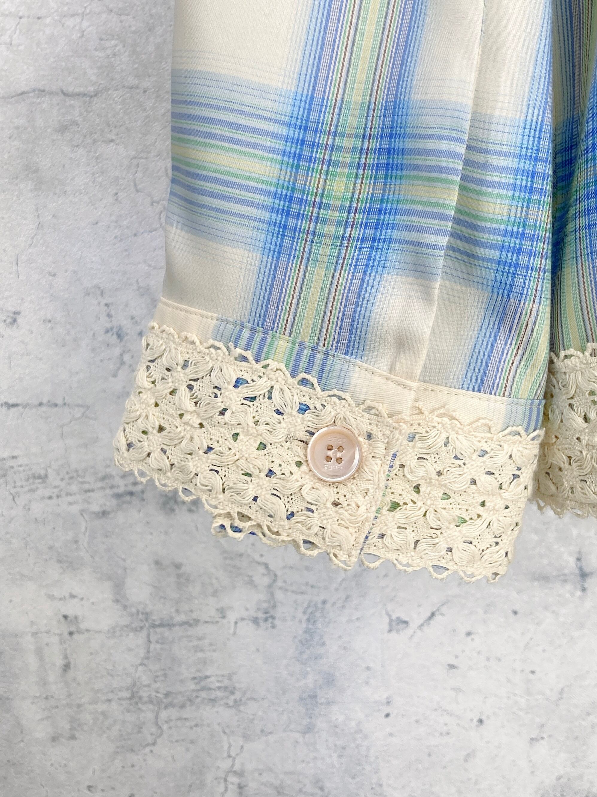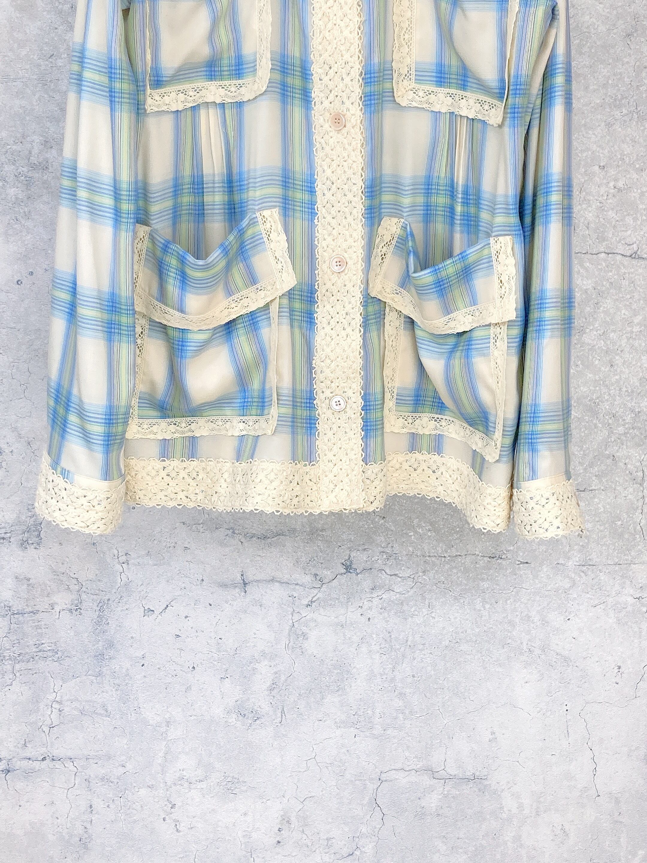 CIRCULATION送料無料【 EENK インク / 韓国 】レースチェックシャツ チェック ブルー緑 チェック シャツ NO: EEC-1Q150-SH03-MU / Multi