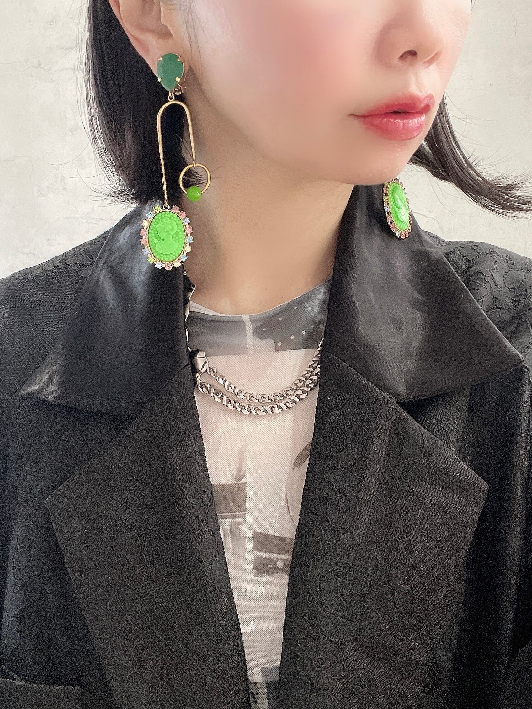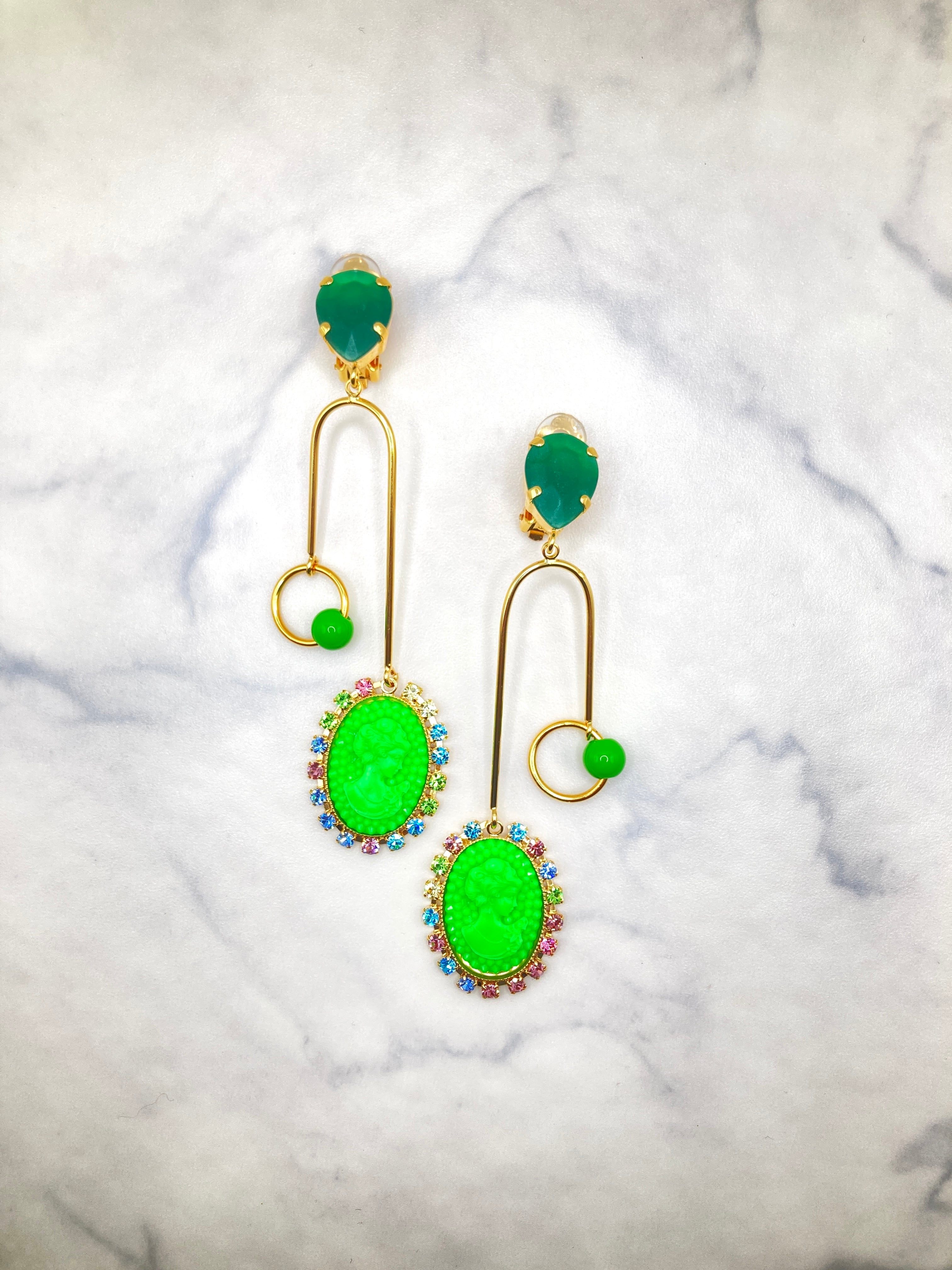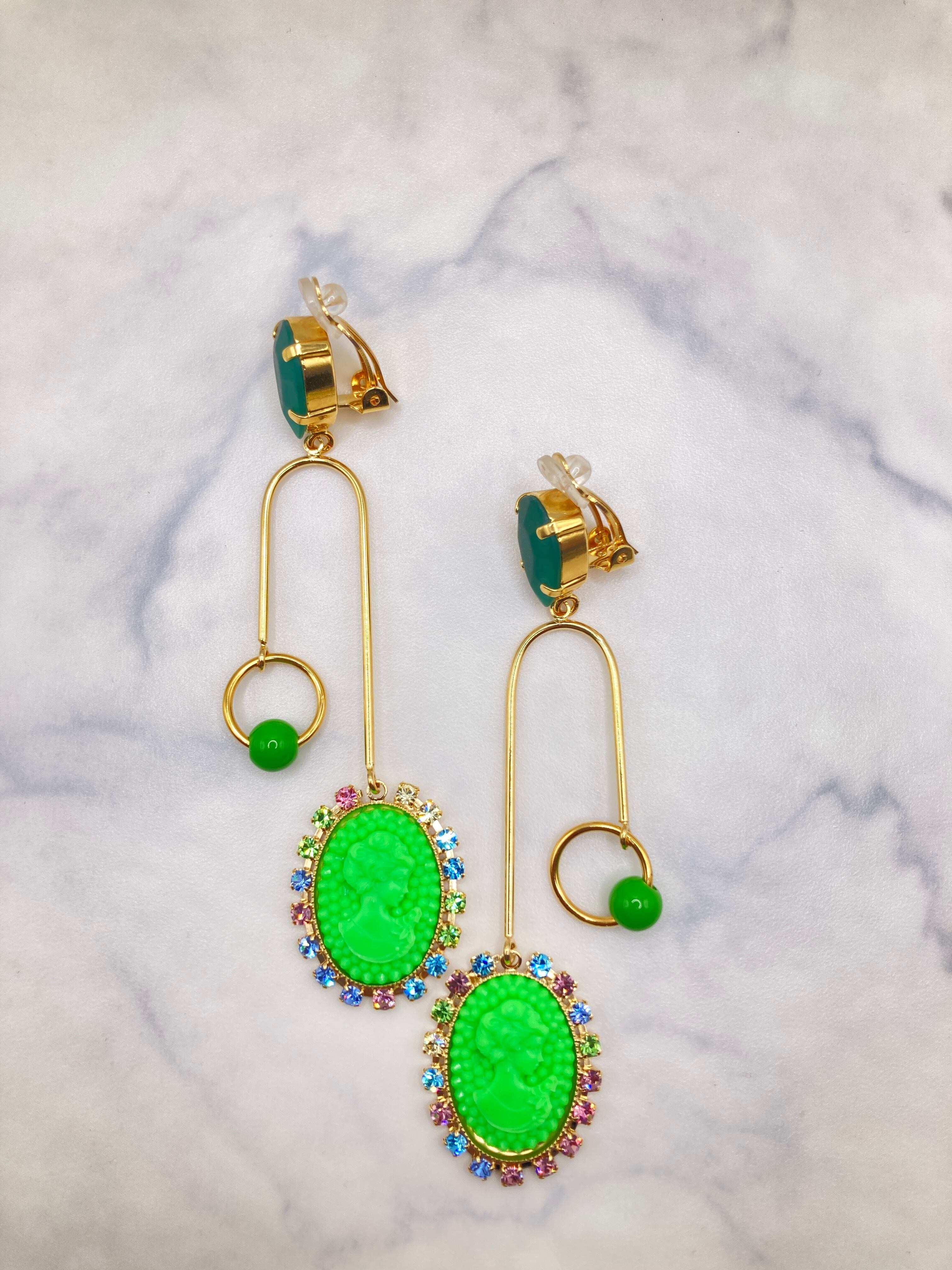 CIRCULATION送料無料【JULIE SION ジュリーシオン/フランス】カメオU字 クリップ ピアス NO: BO POMPADOUR BILLE / Vert2