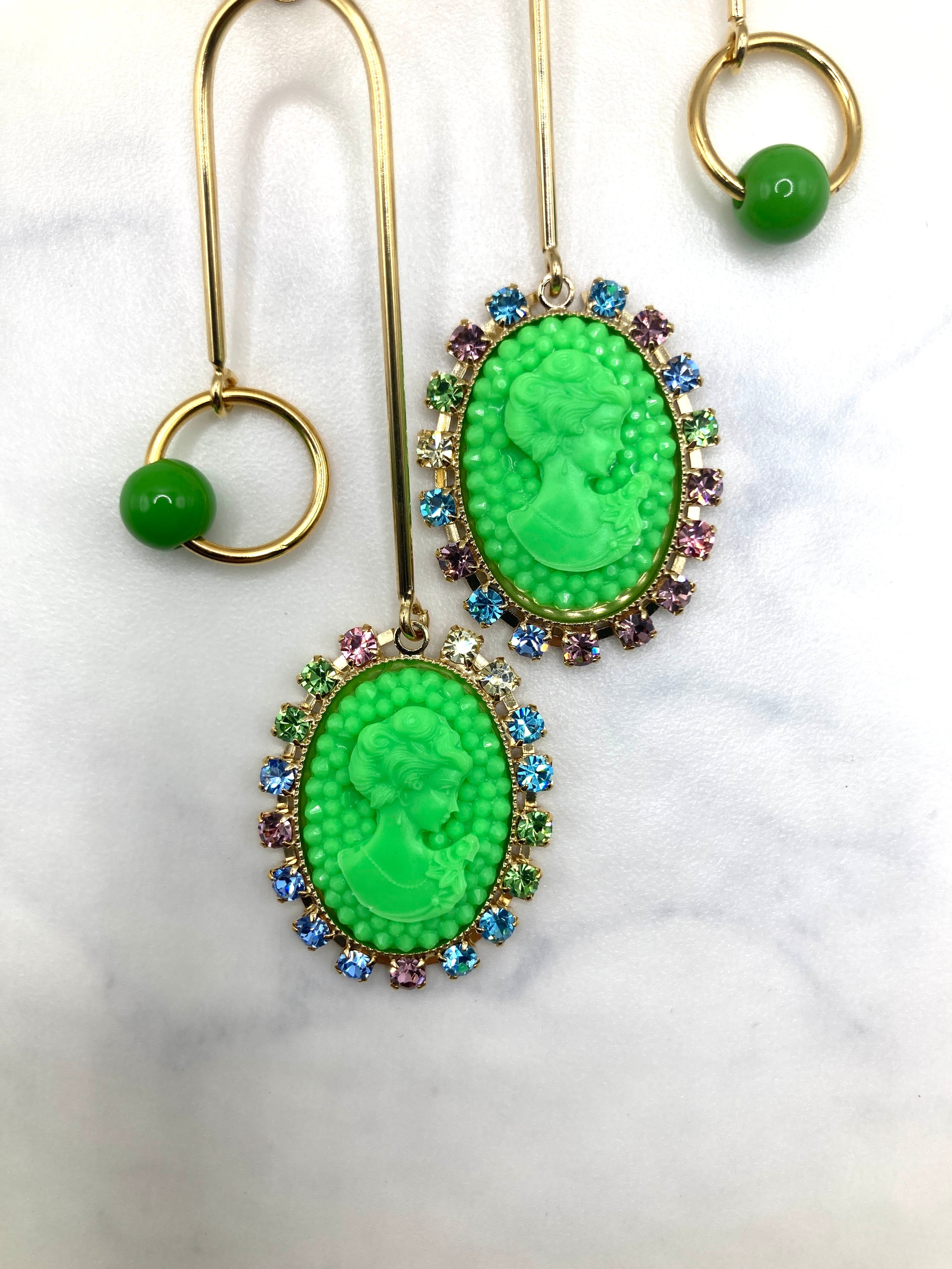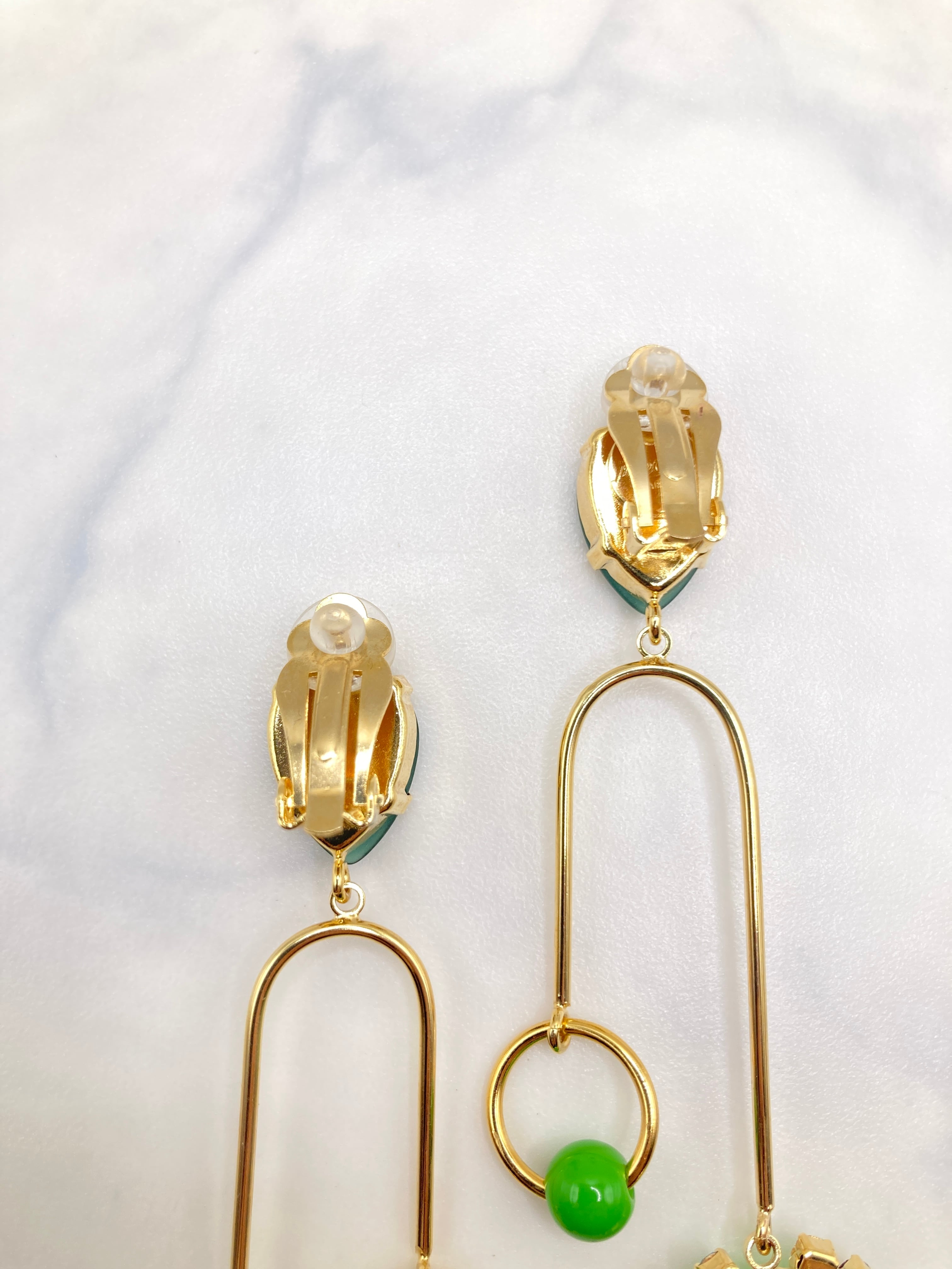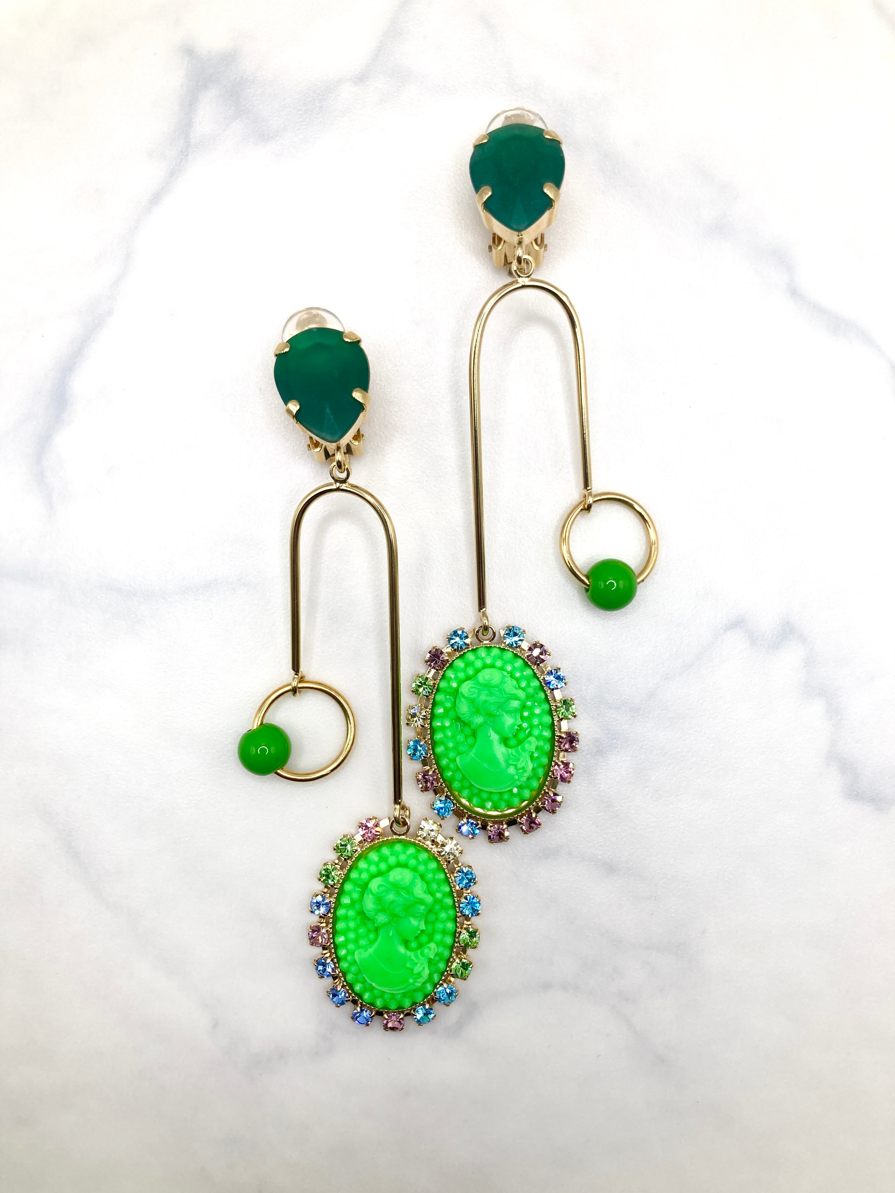 CIRCULATION送料無料【JULIE SION ジュリーシオン/フランス】カメオU字 クリップ ピアス NO: BO POMPADOUR BILLE / Vert2
