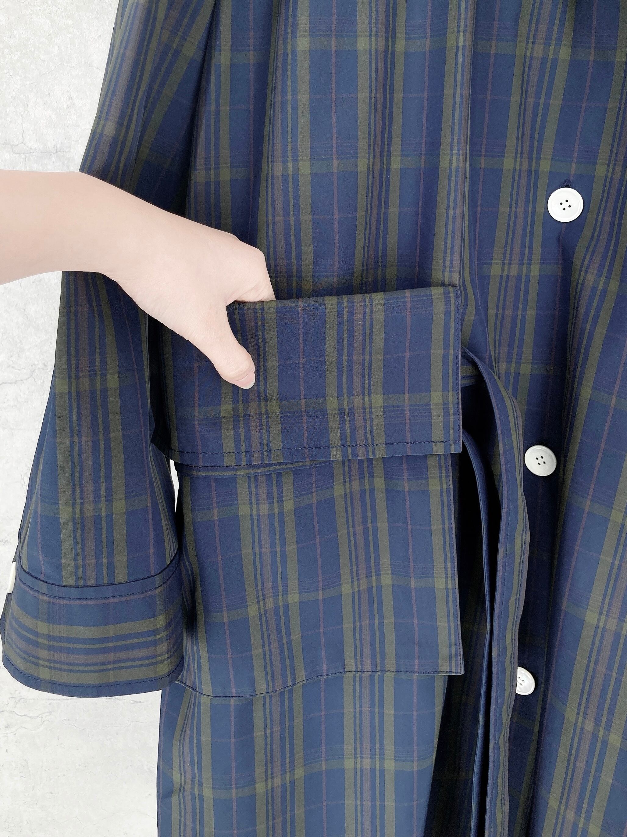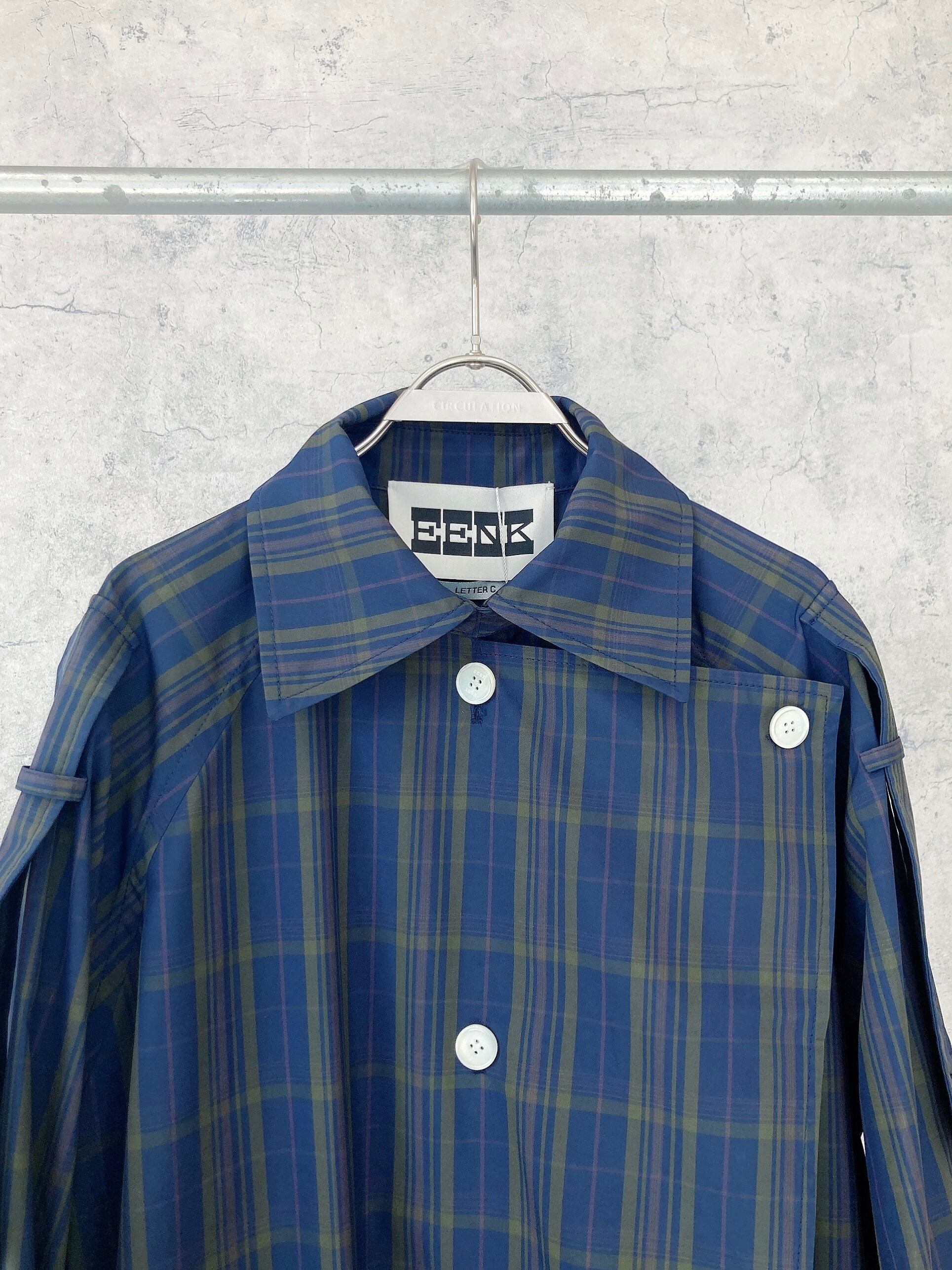 CIRCULATION送料無料【 EENK インク / 韓国 】ネイビー緑チェックロングコート チェック ロングコート NO: EEC_1Q253-CT02-MU / Multi