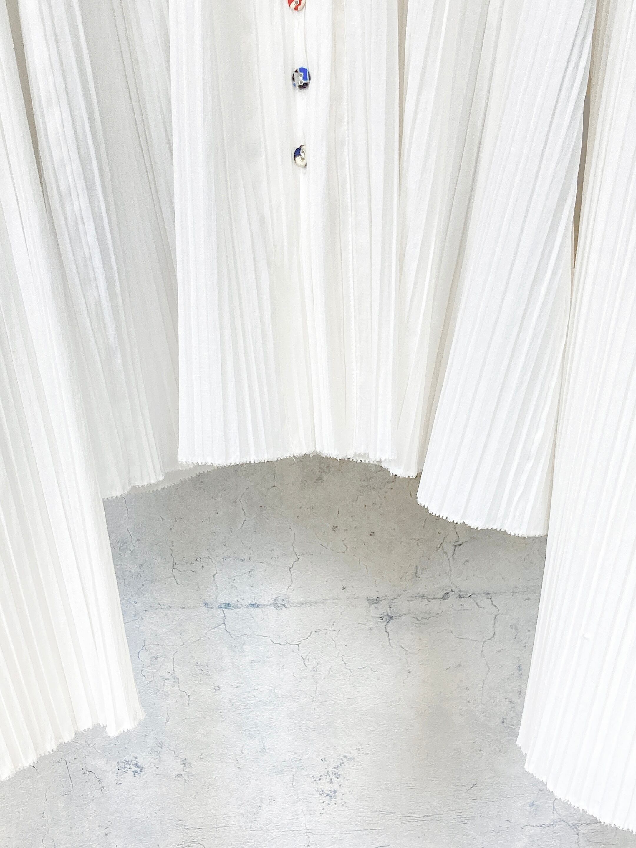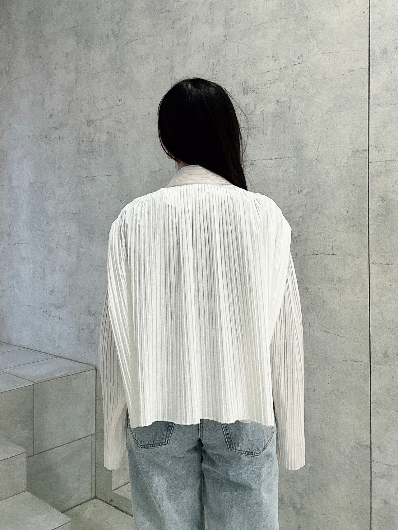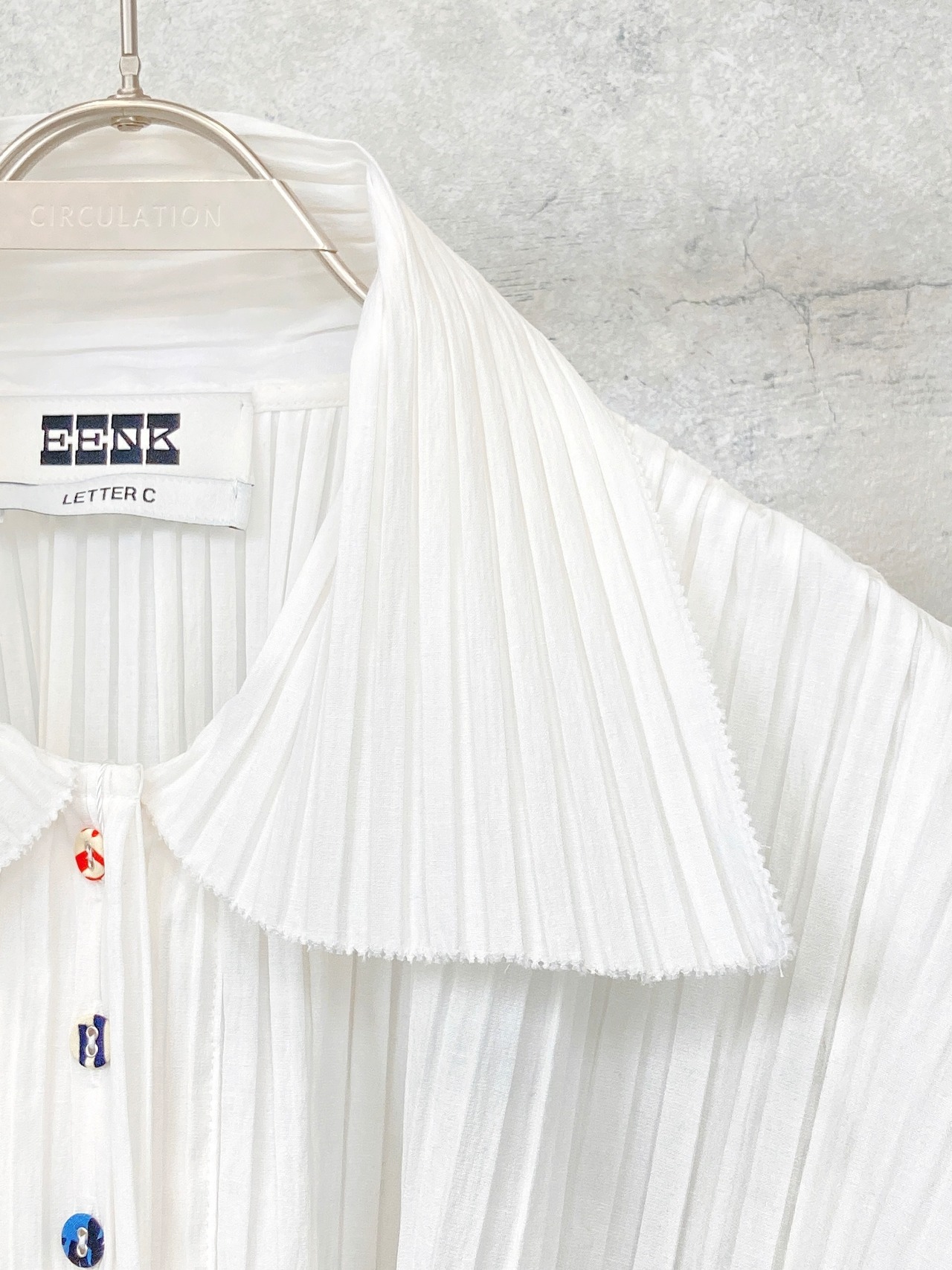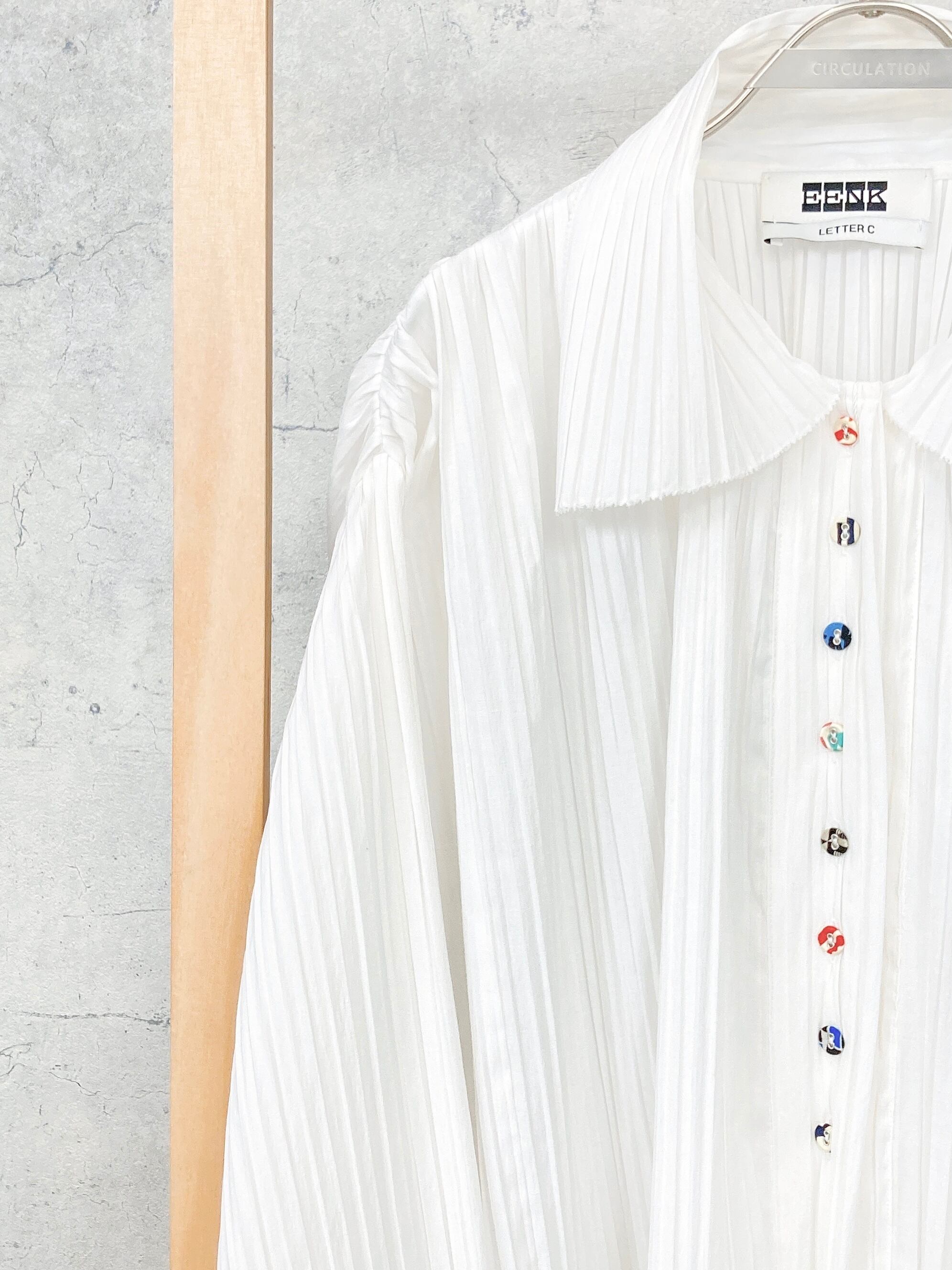 CIRCULATION送料無料【 EENK インク / 韓国 】プリーツデザインボタンシャツ プリーツ ホワイト デザインボタン NO: EEC-1Q250-SH04-IV / Ivory