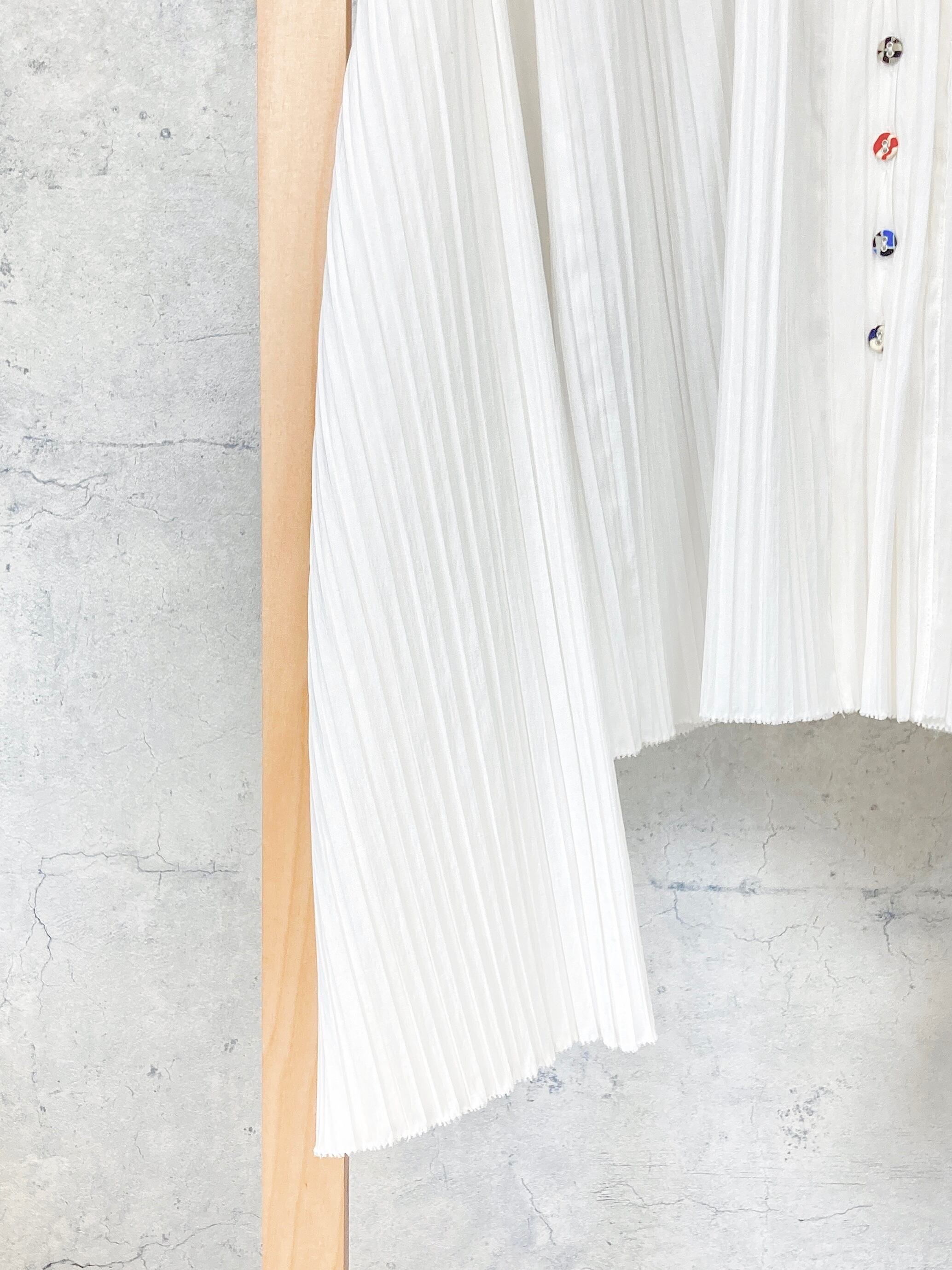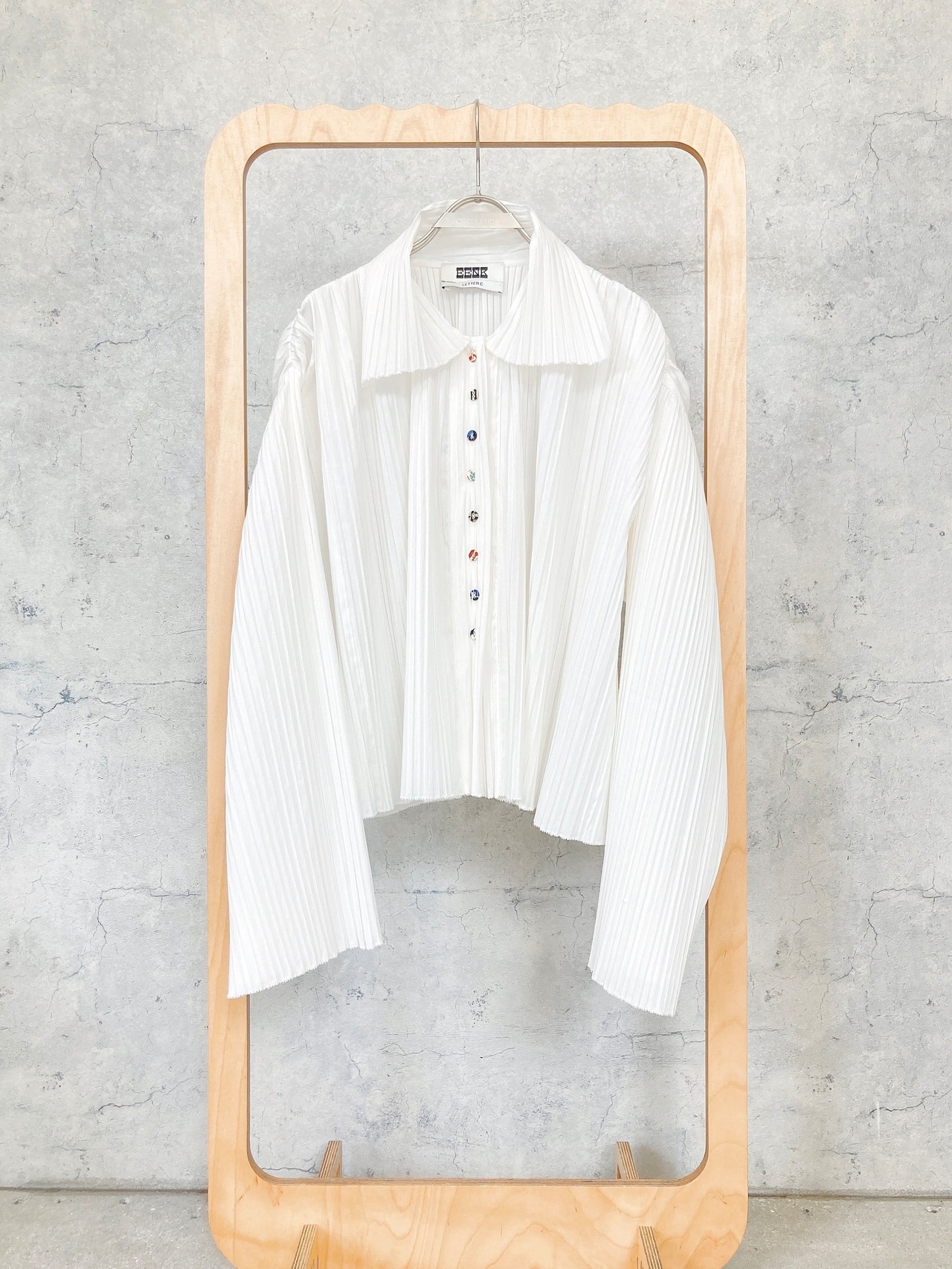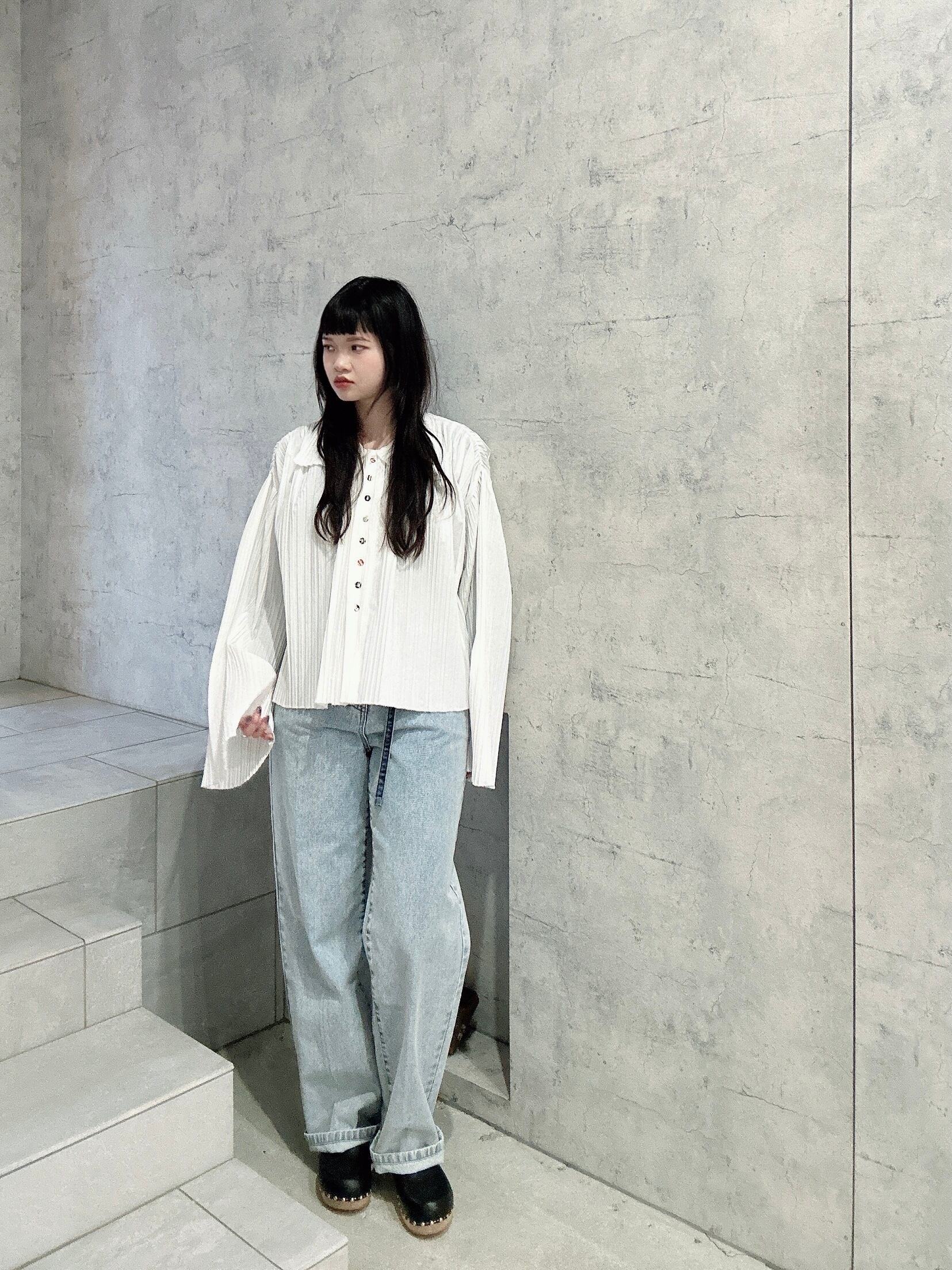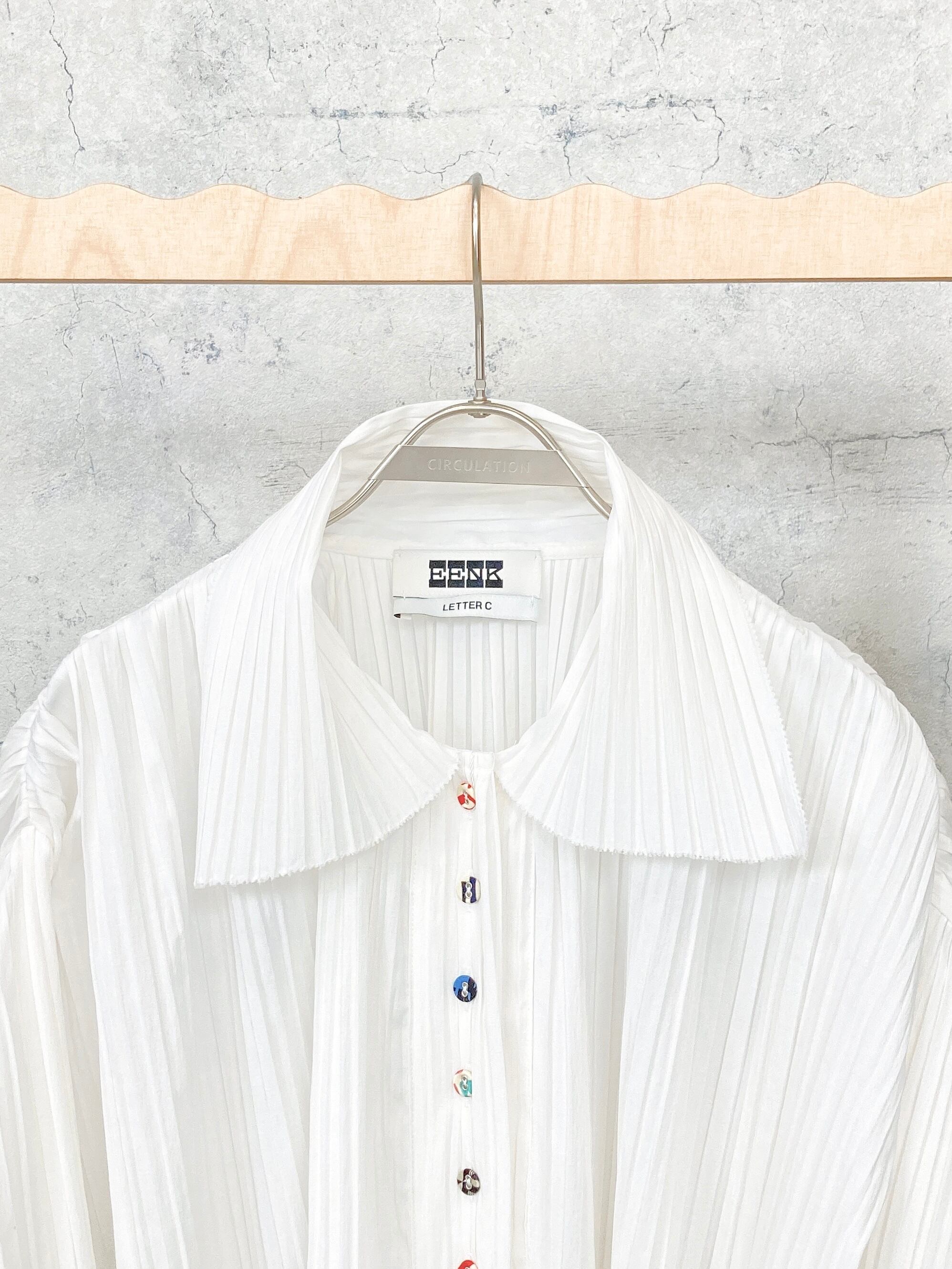 CIRCULATION送料無料【 EENK インク / 韓国 】プリーツデザインボタンシャツ プリーツ ホワイト デザインボタン NO: EEC-1Q250-SH04-IV / Ivory