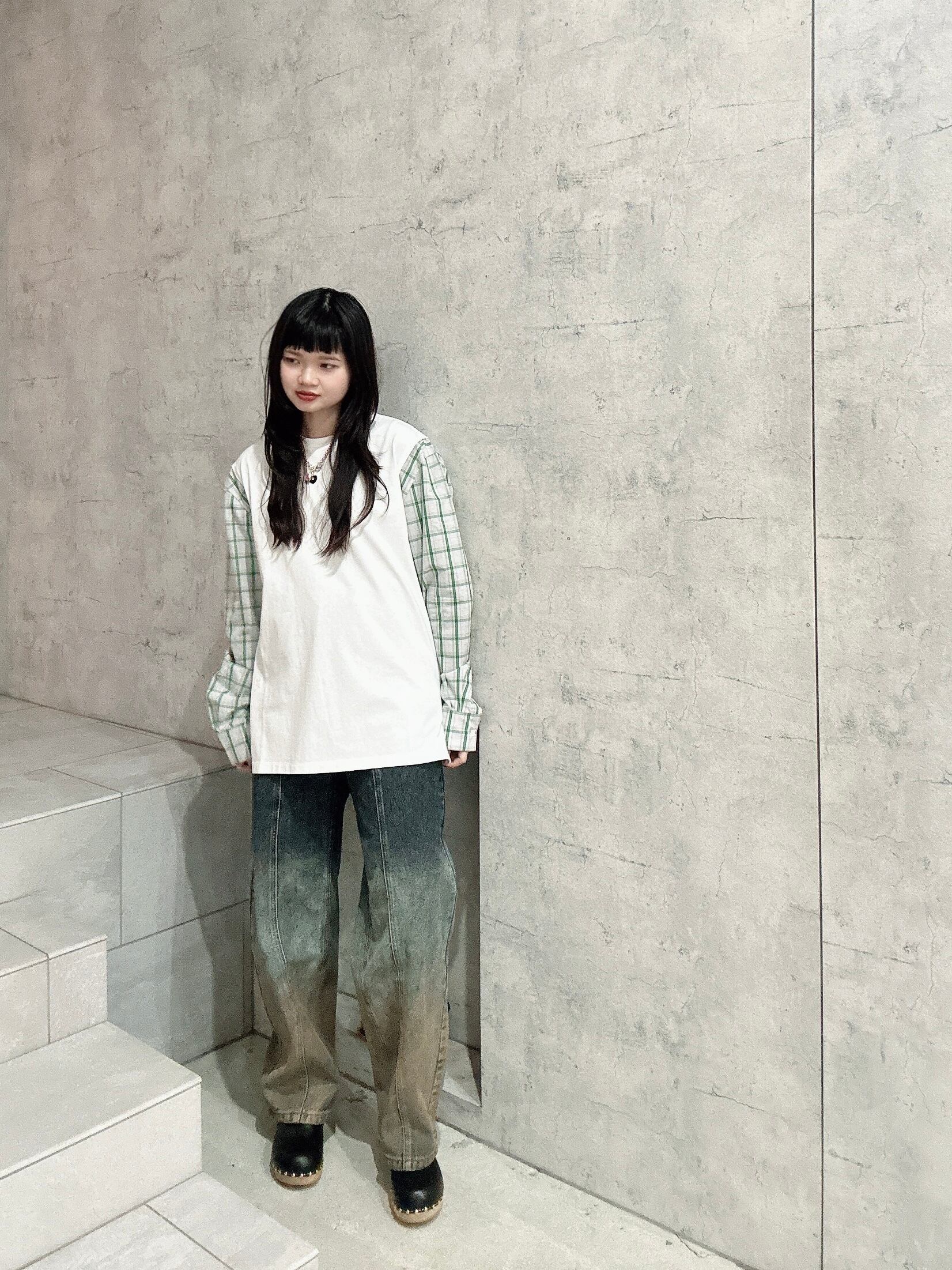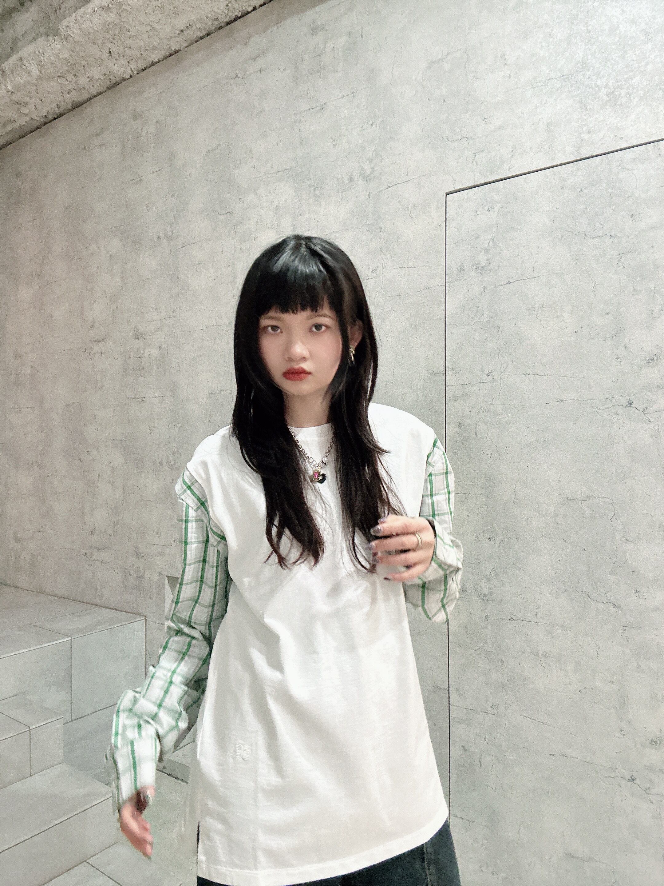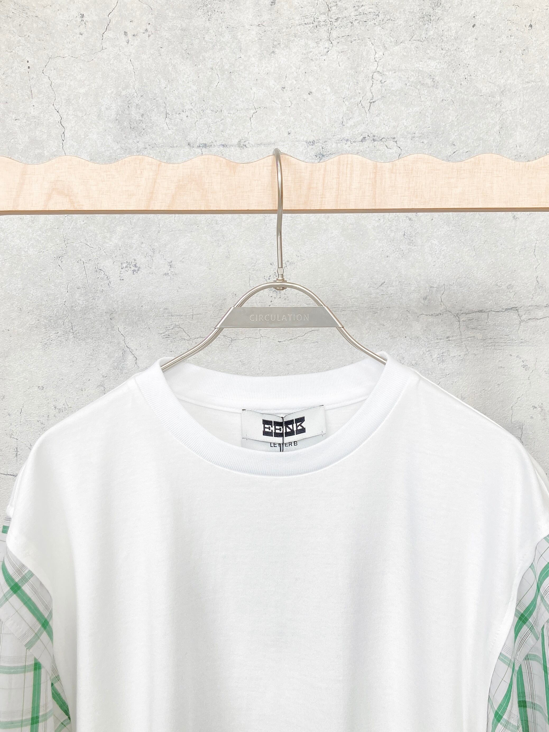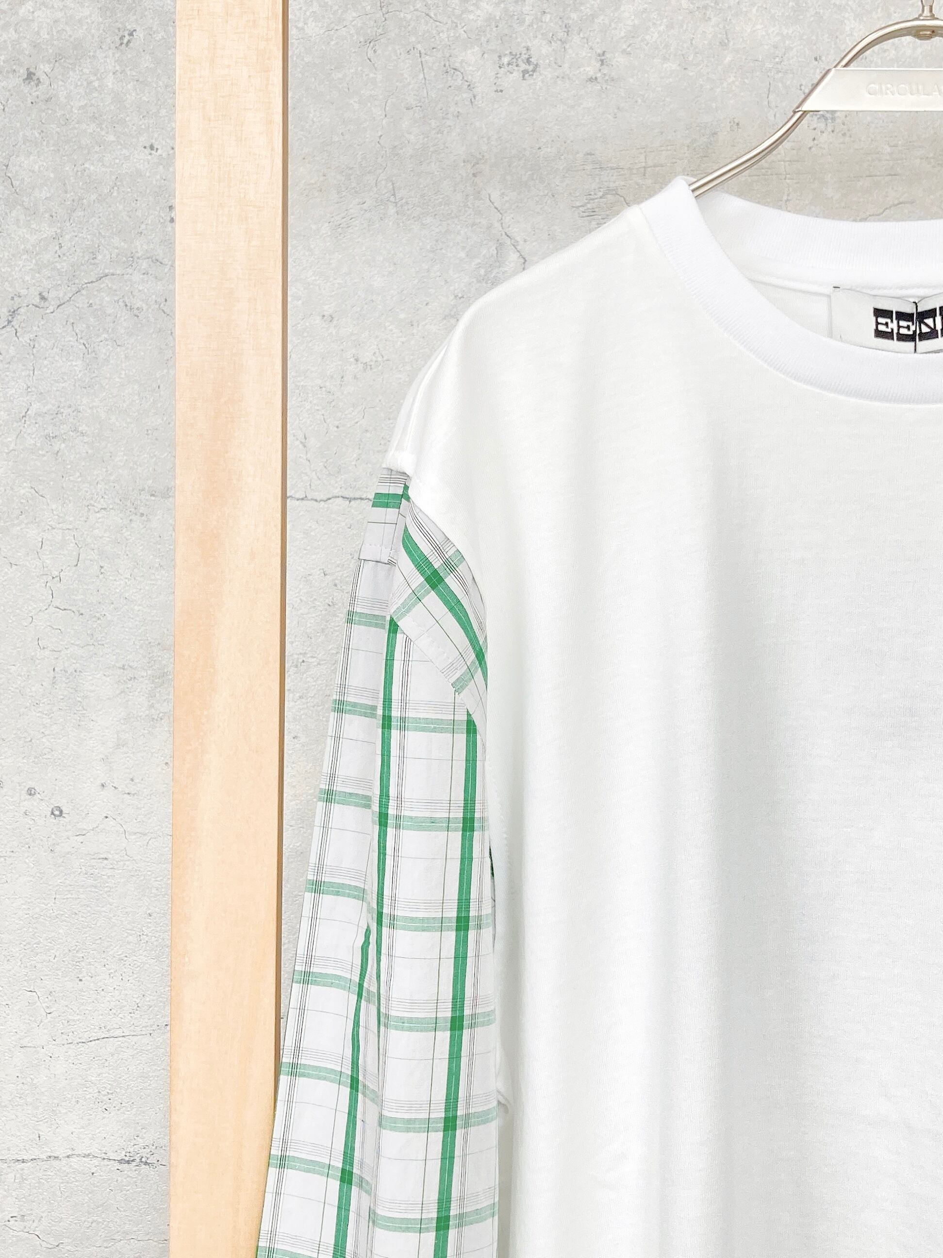 CIRCULATION送料無料【 EENK インク / 韓国 】ユニセックス ロンT チェック袖NO: EEB-1P350-M-TP04-WT / White