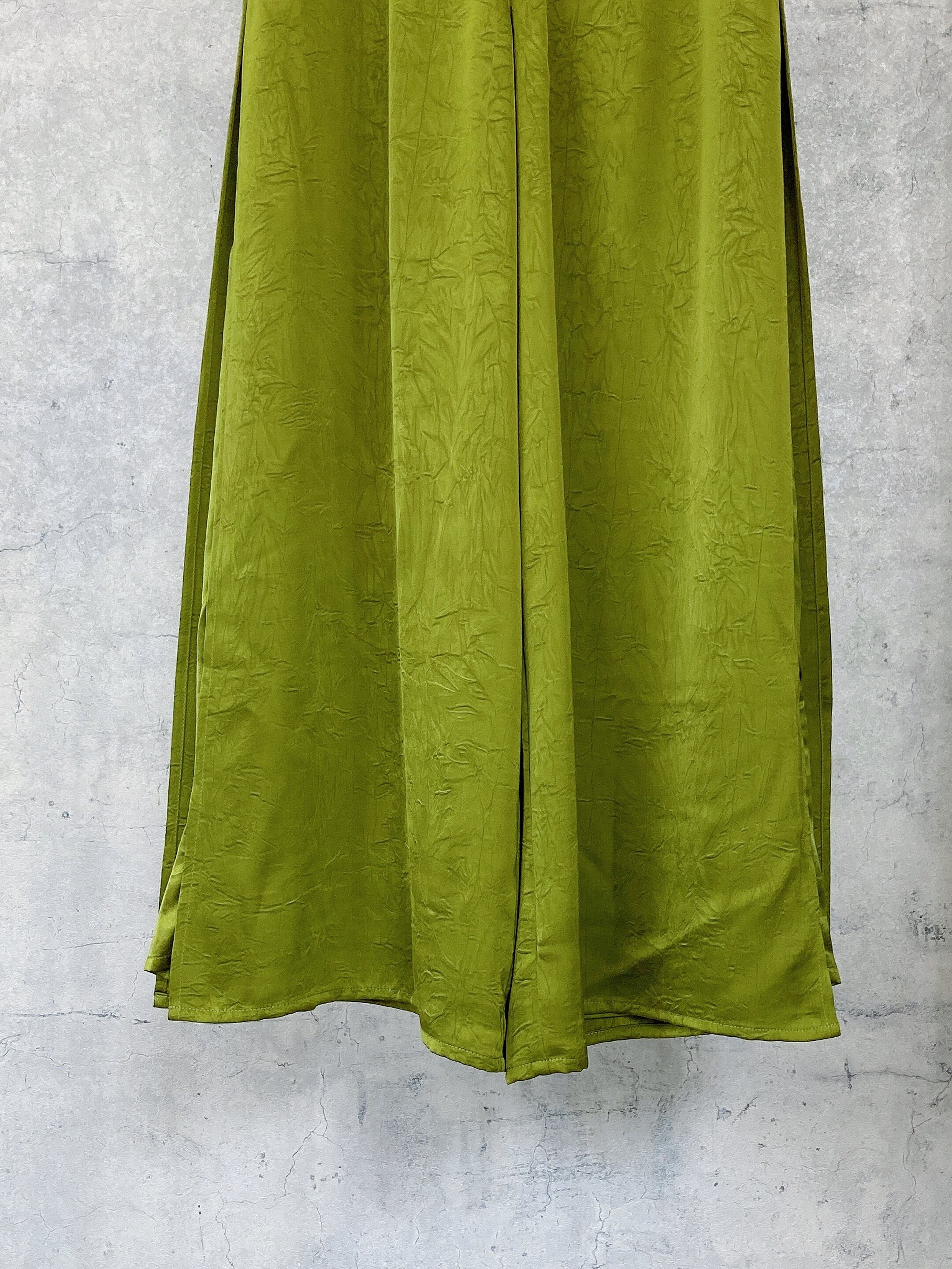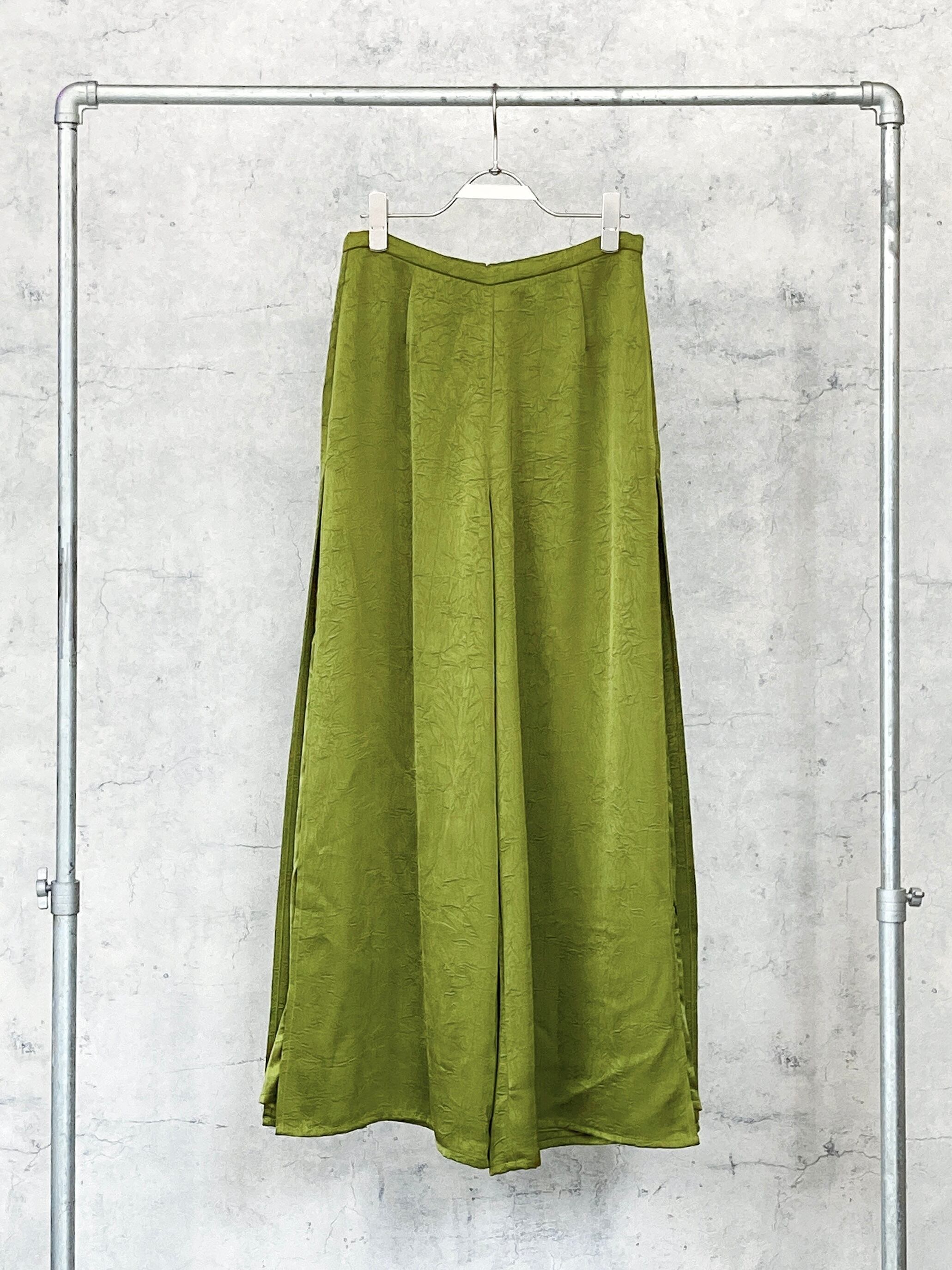 CIRCULATION送料無料【NIGEL PRESTON ナイジェル・プレストン/イギリス】サイドスリットシワ加工パンツ スリット パンツ シワ加工 NO: NPBKWL315J/CRST / LICHEN(グリーン)