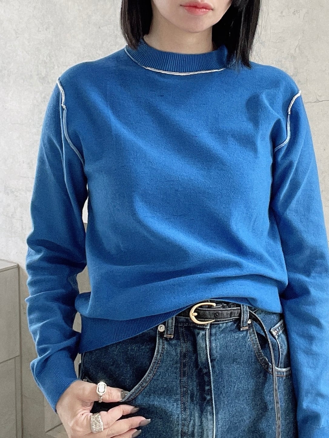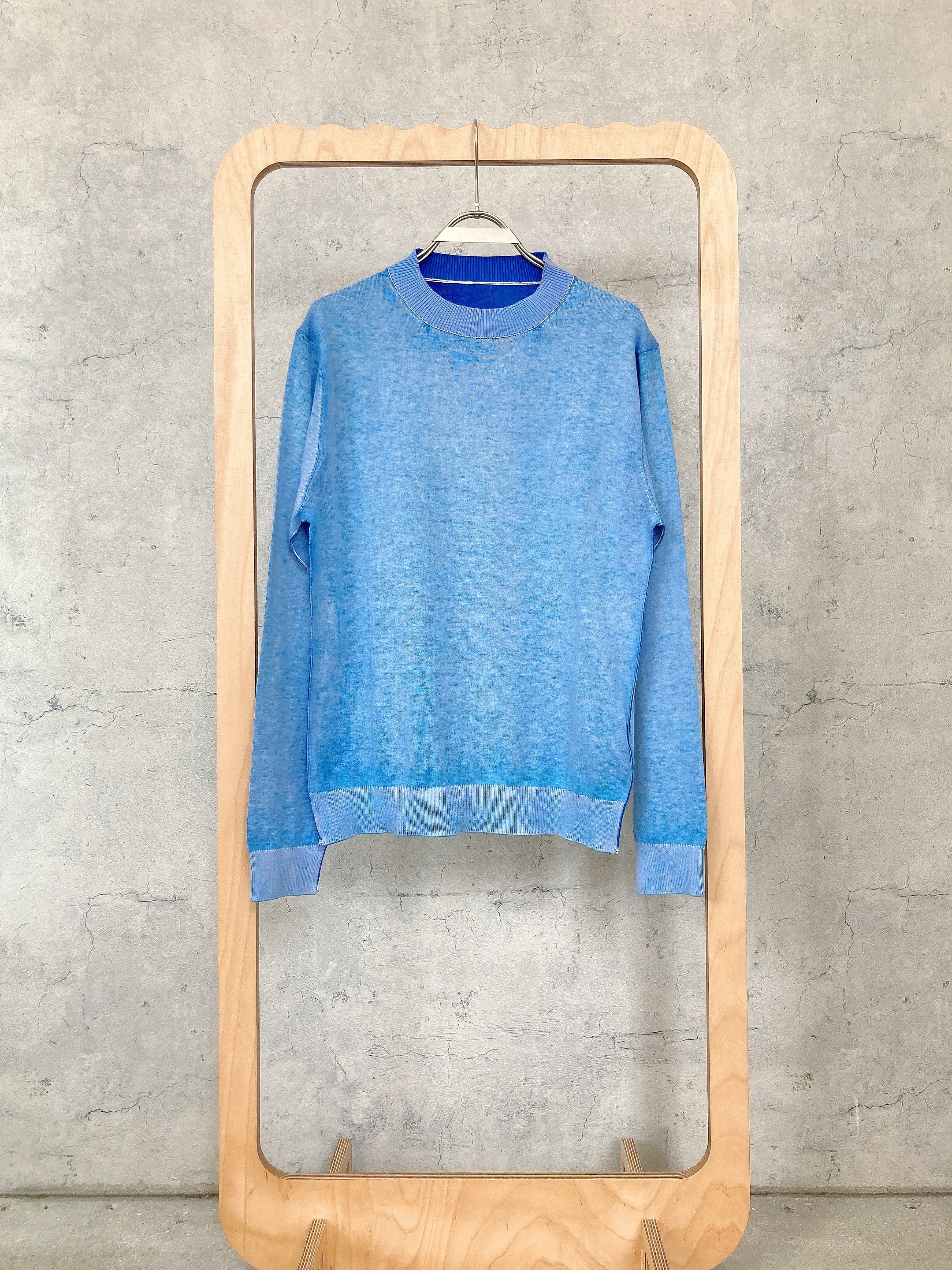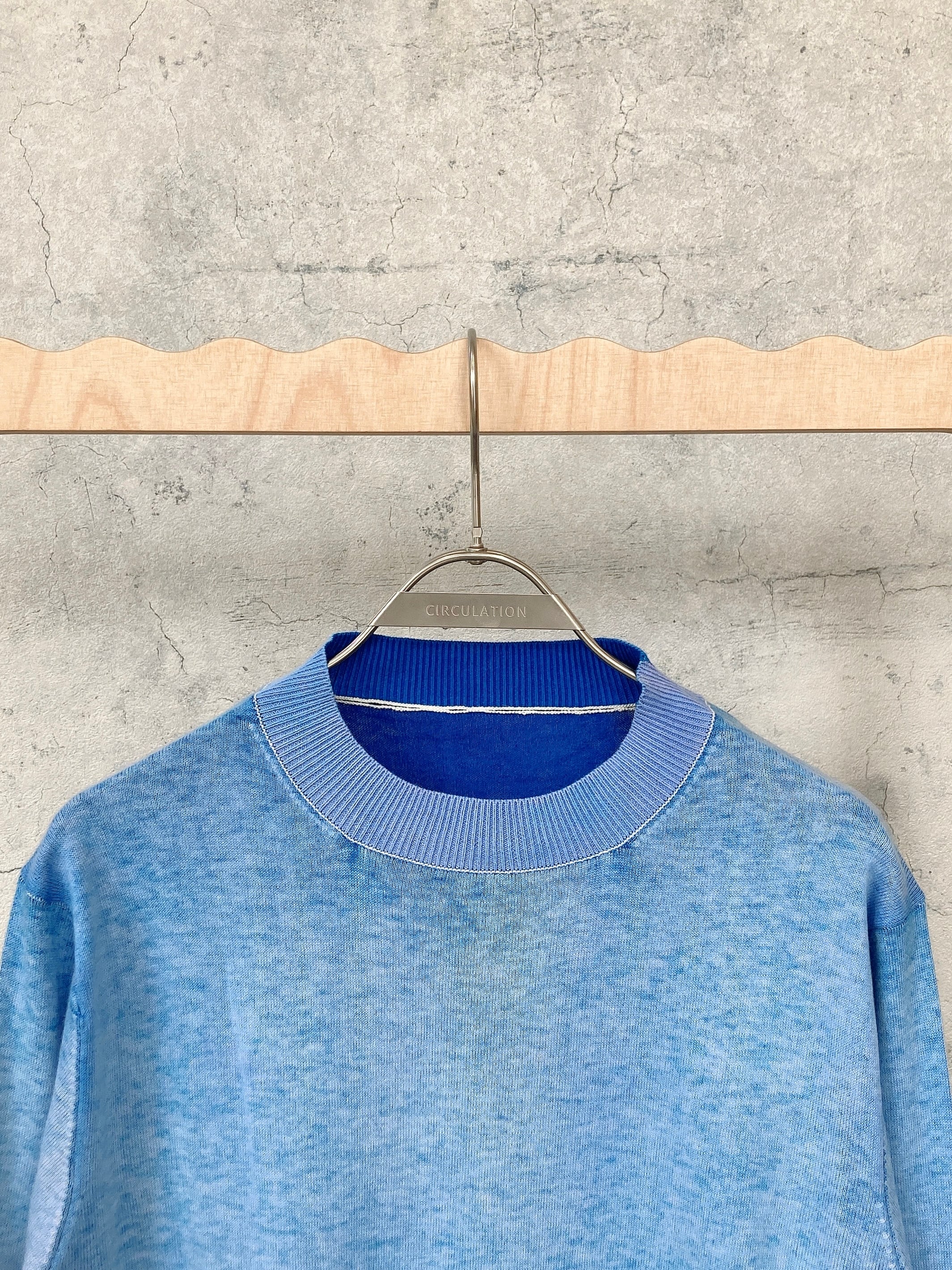 CIRCULATION送料無料【A・POIL アーポワル/フランス】コットンカシミヤリバーシブルカットソー リバーシブル コットンカシミアニット ブルー NO: AP GARNITURE / COL E(Chalk/Print:Captain)