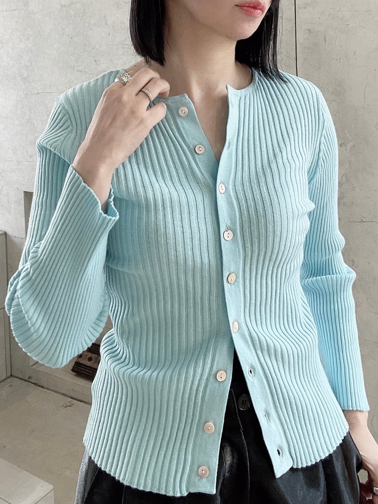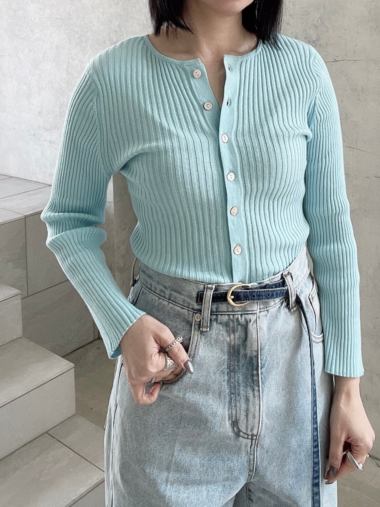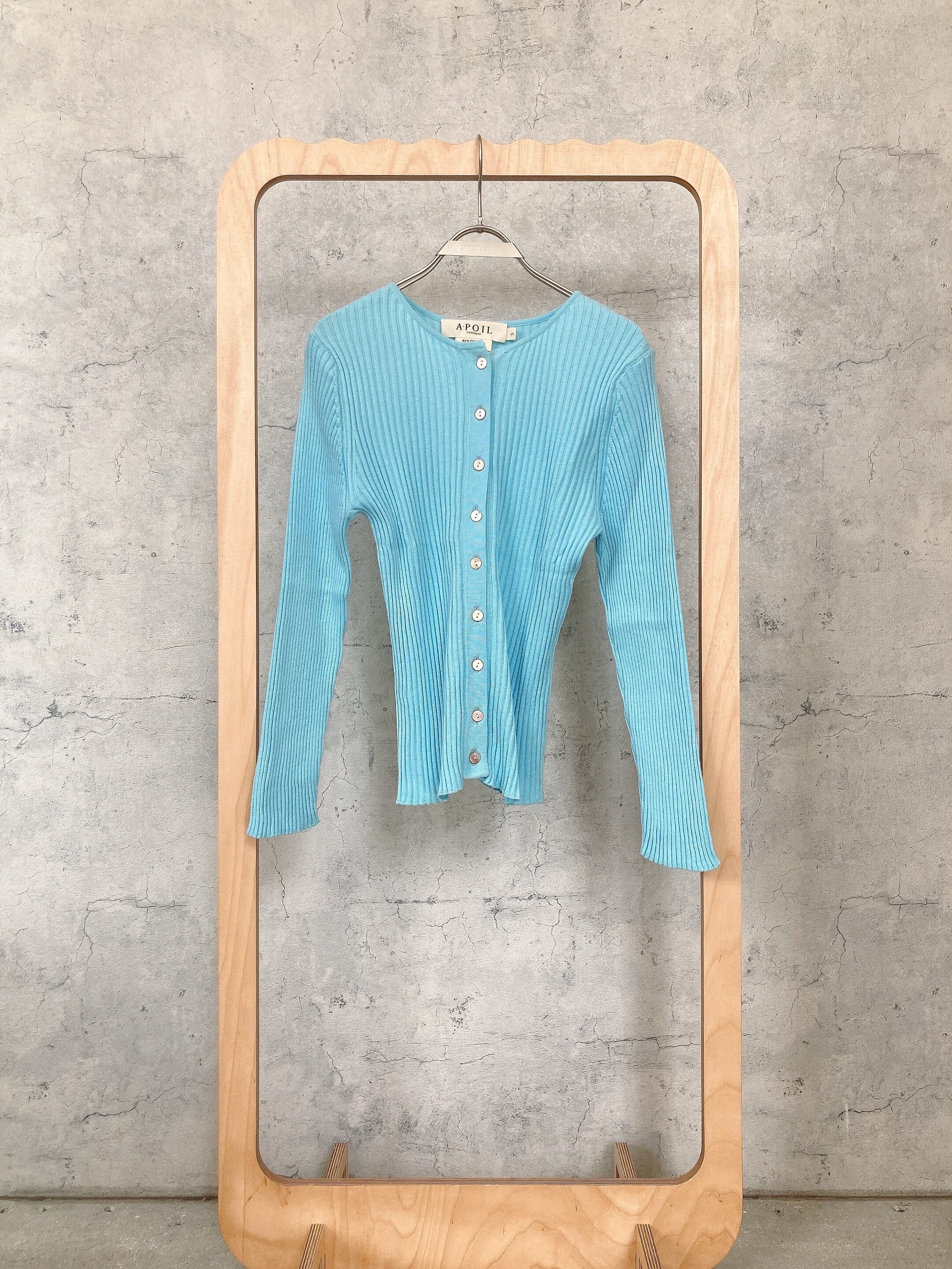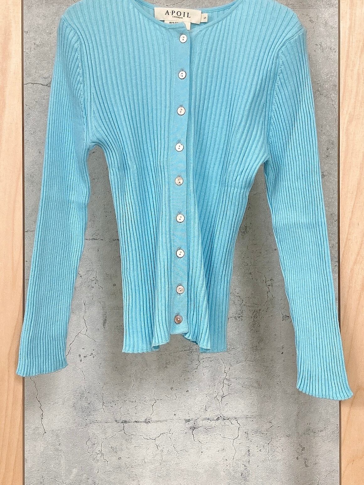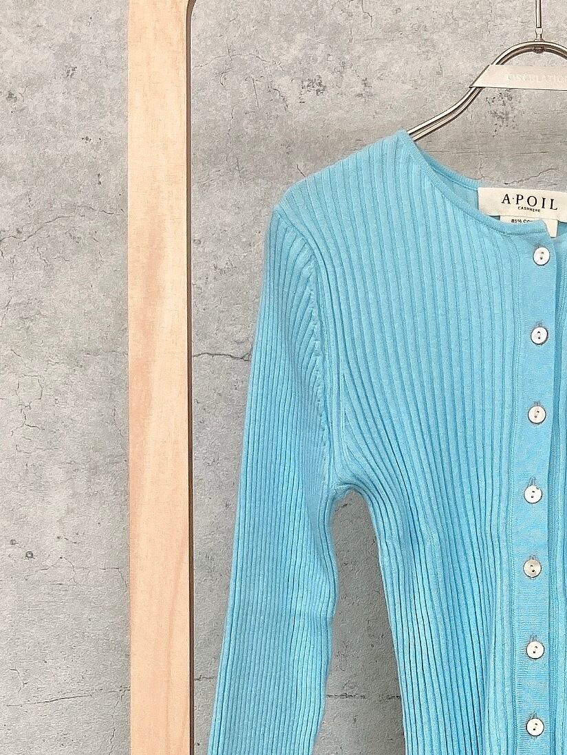 CIRCULATION送料無料【A・POIL アーポワル/フランス】コットンカシミヤリブカーディガン 綿85% カシミヤ15% コットンカシミヤ リブカーディガン NO: AP FLYER-LS / Aqua