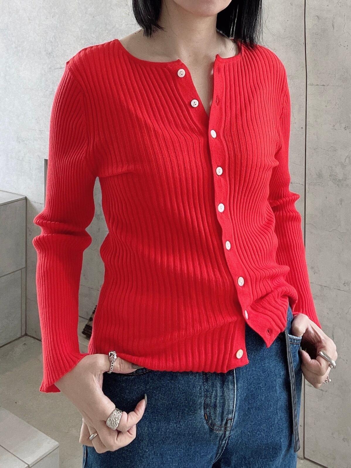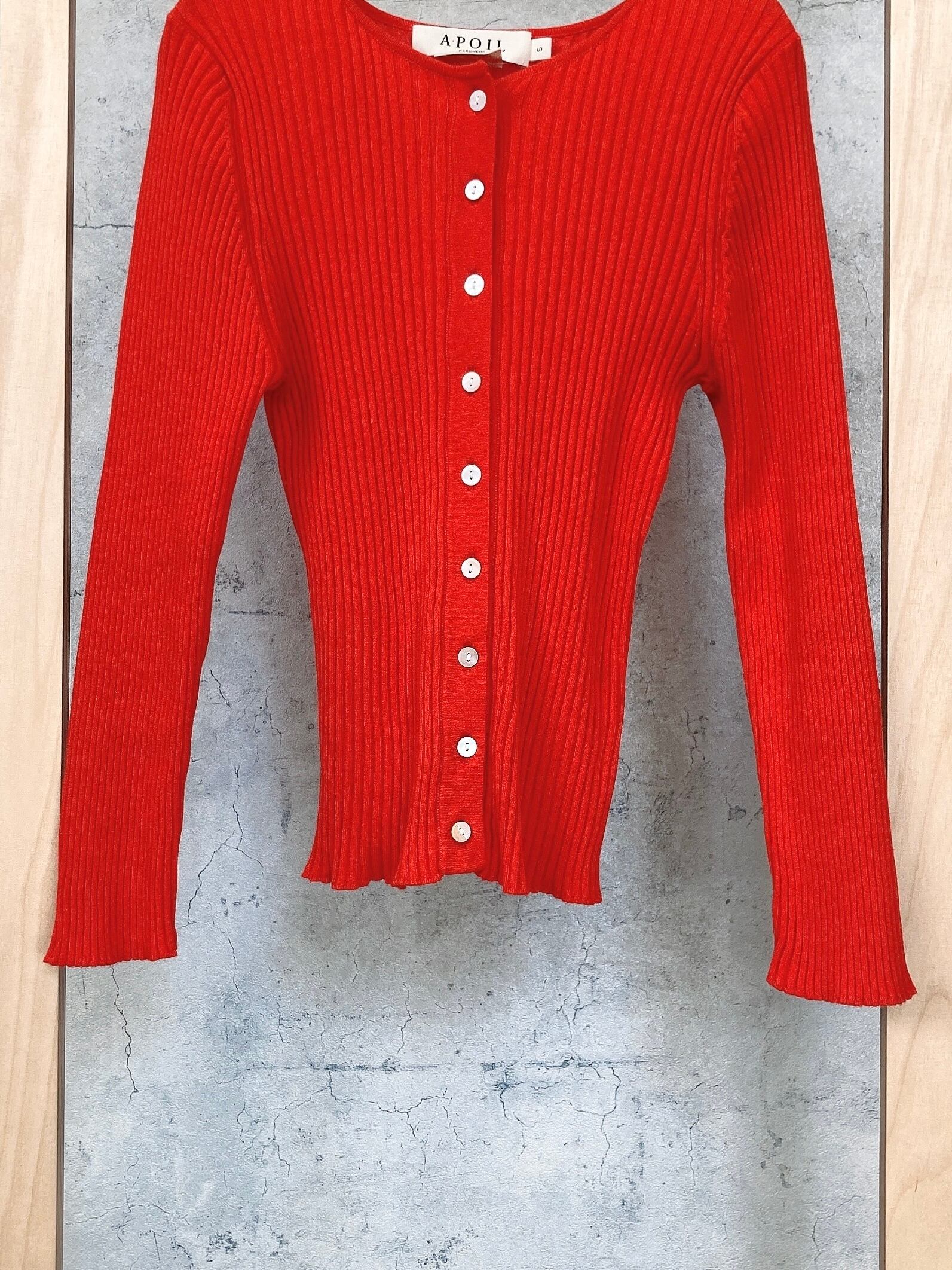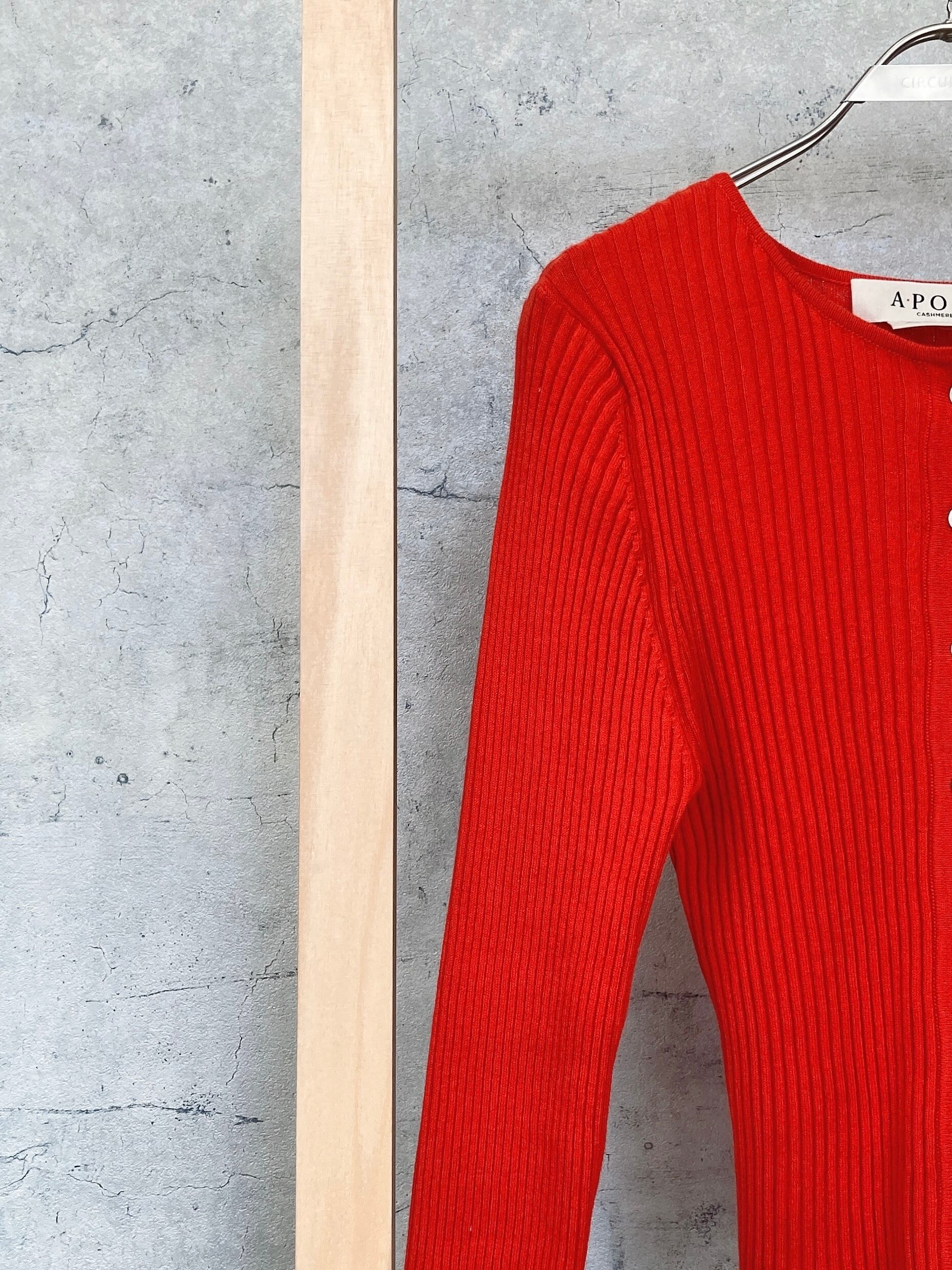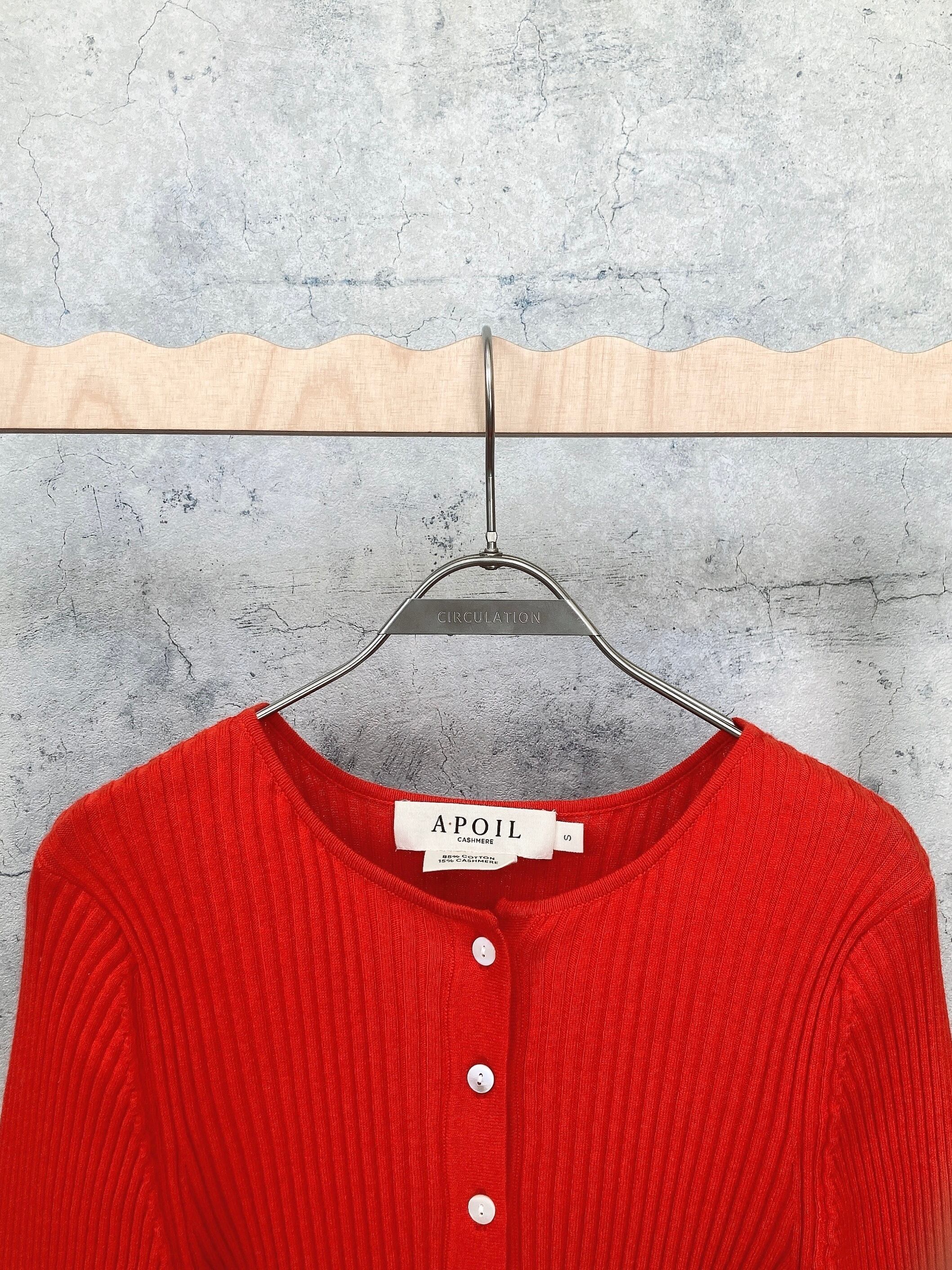 CIRCULATION送料無料【A・POIL アーポワル/フランス】コットンカシミヤリブカーディガン 綿85% カシミヤ15% コットンカシミヤ リブカーディガン NO: AP FLYER-LS / Tomato