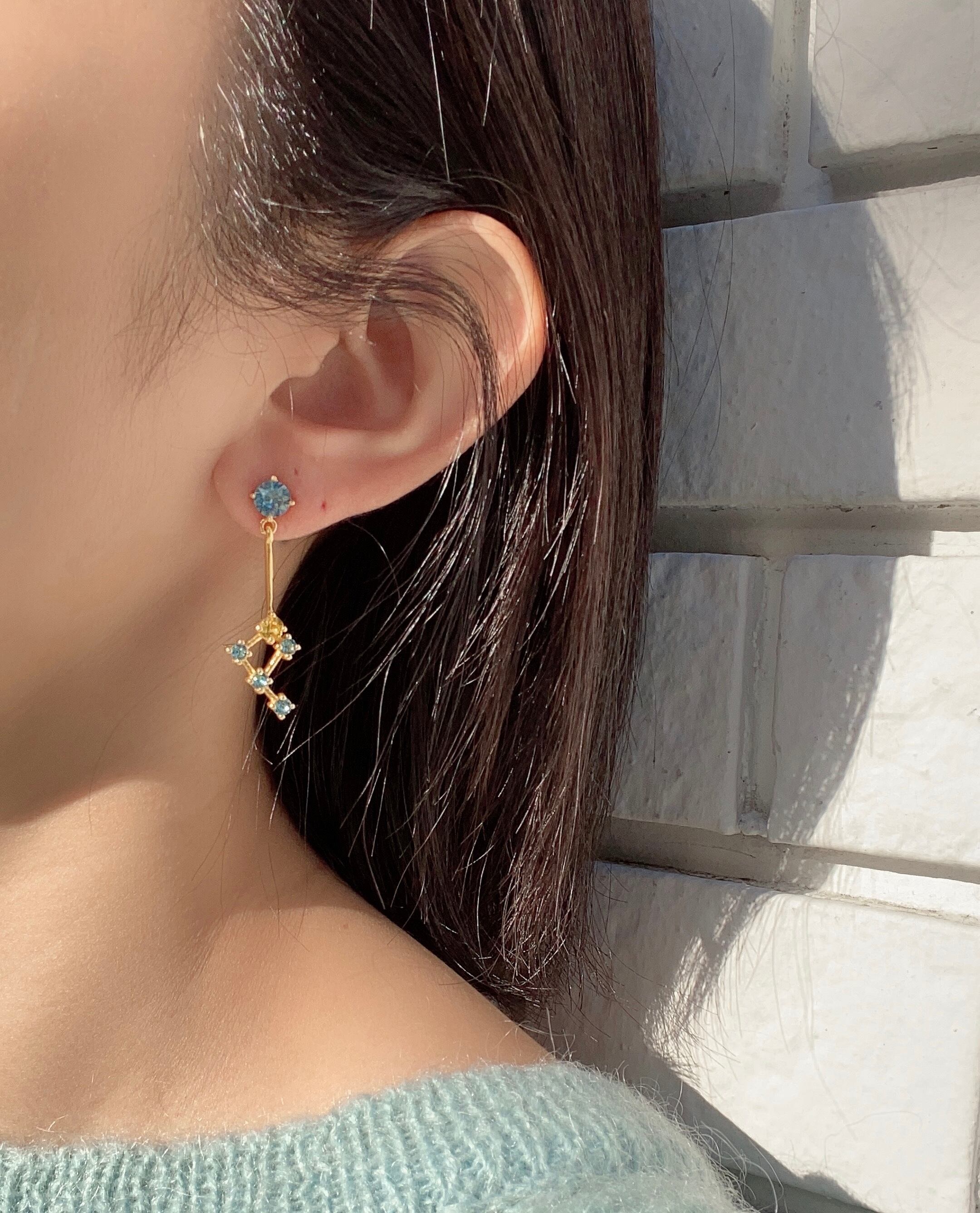 沢山のクリスタルが光を集めて顔周りに輝きを与えてくれる綺麗なピアスです。