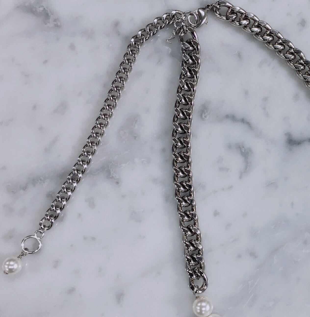 大粒のクリスタルパールとしっかりとしたチェーンが存在感あるネックレスは