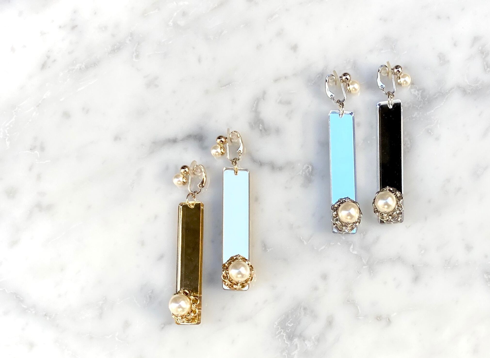 長方形のミラーがモードに、クリスタルパールがエレガントに