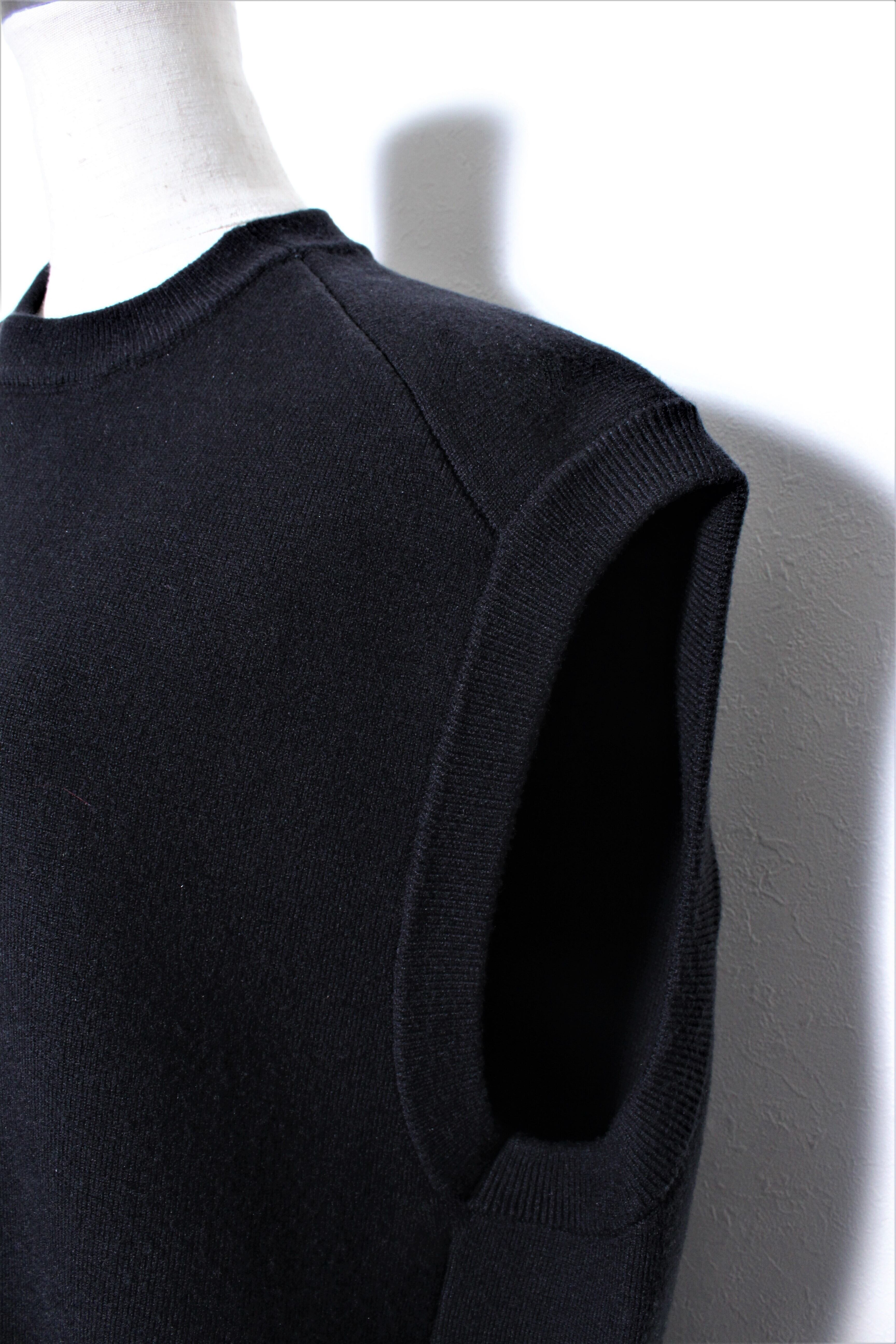 ロング丈のニットベストでヒップが隠れる丈感が嬉しいポイントです。