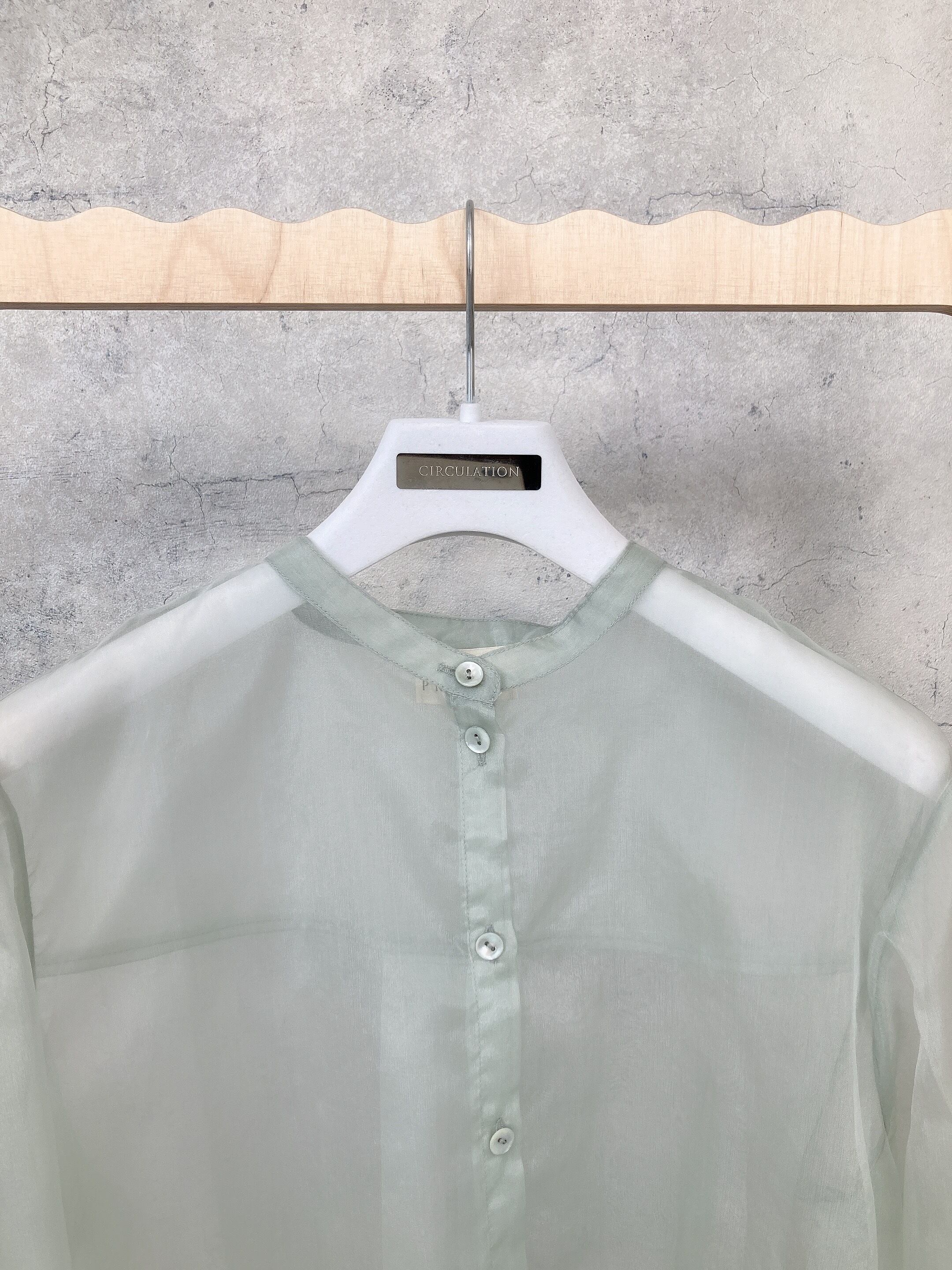 circulation送料無料【NIGEL PRESTON ナイジェル・プレストン/イギリス】オーガンジー ノーカラーシアーシャツ アシンメトリー NO:NPWC709UNOG