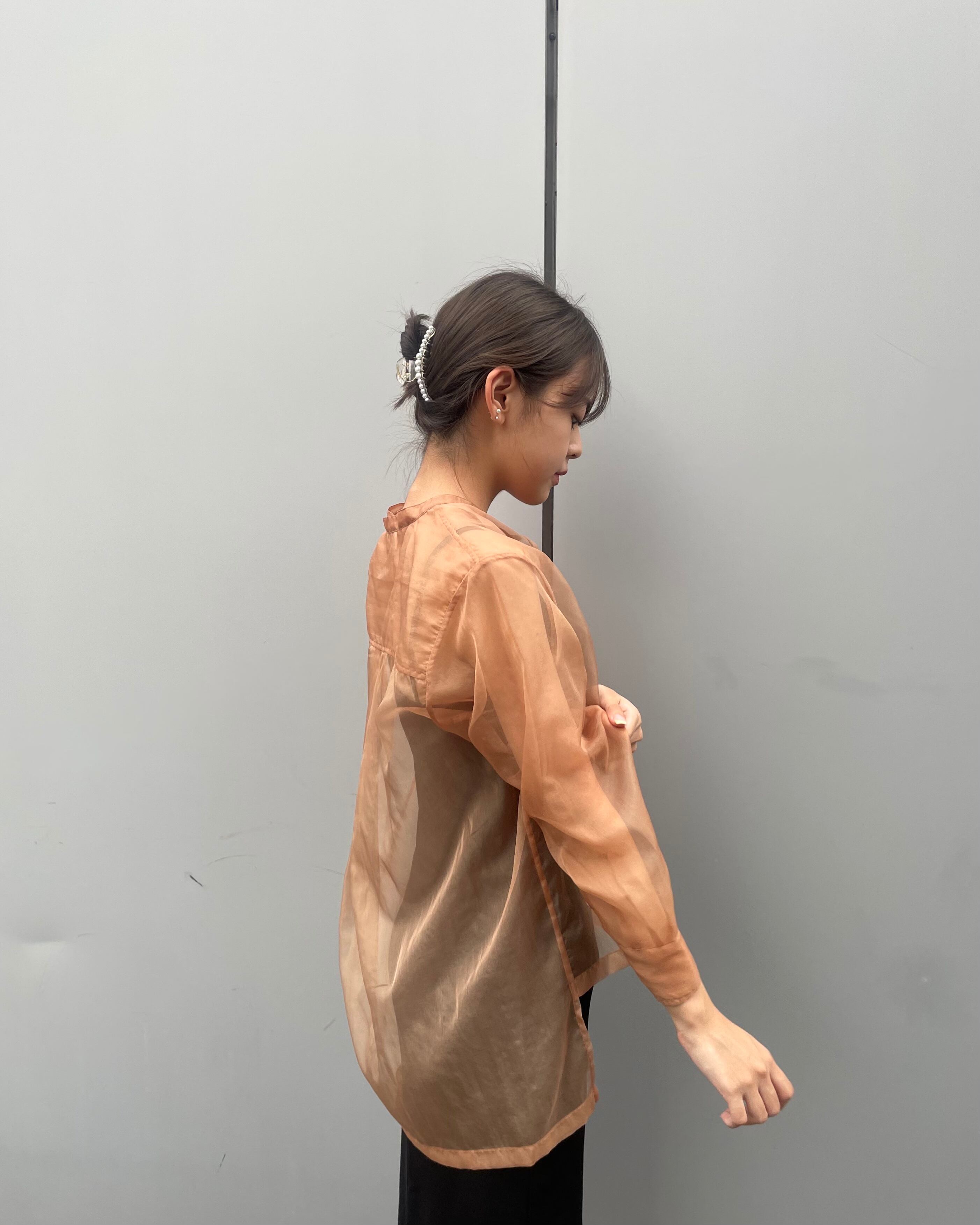 circulation送料無料【NIGEL PRESTON ナイジェル・プレストン/イギリス】オーガンジー ノーカラーシアーシャツ アシンメトリー NO:NPWC709UNOG