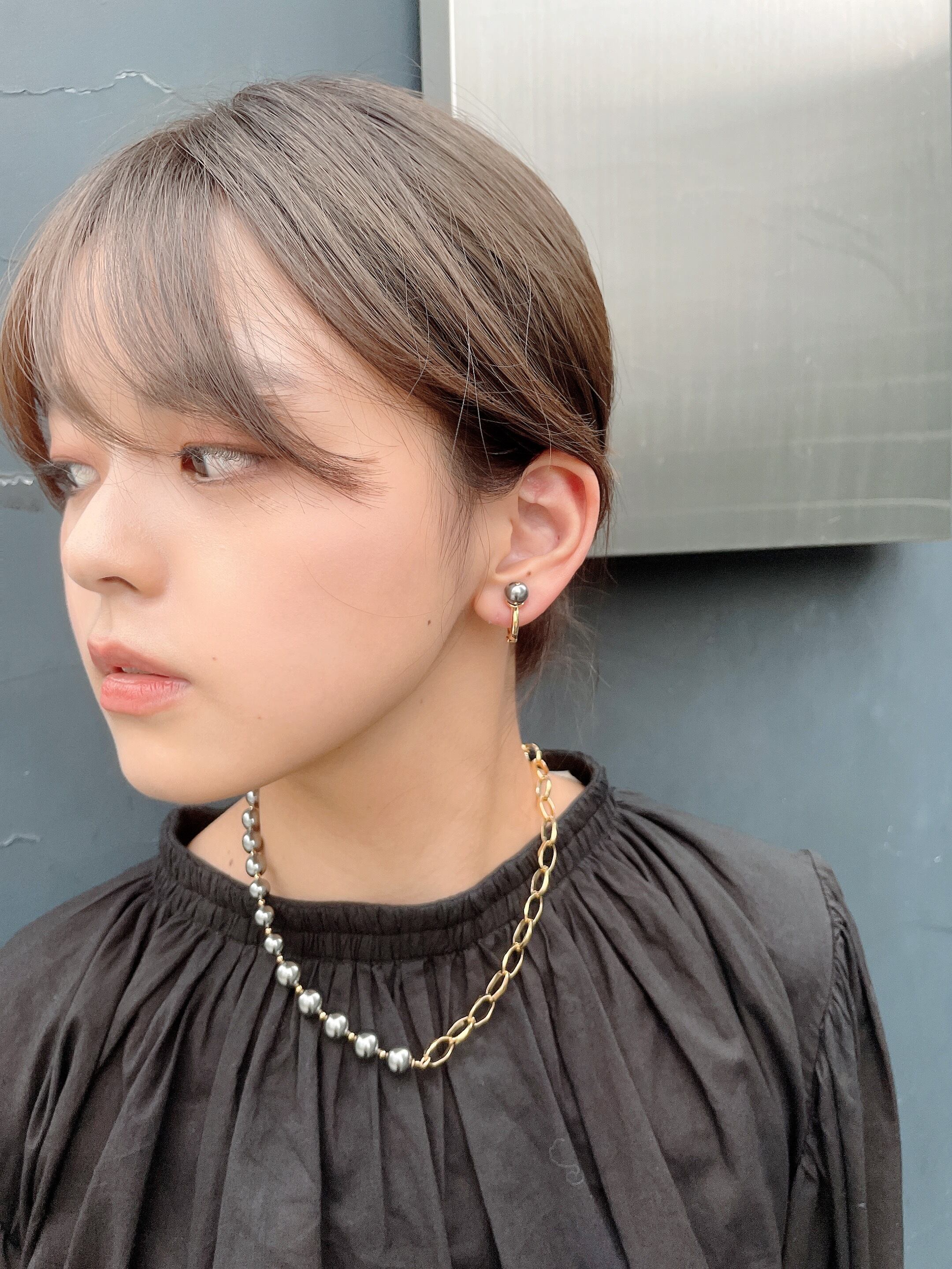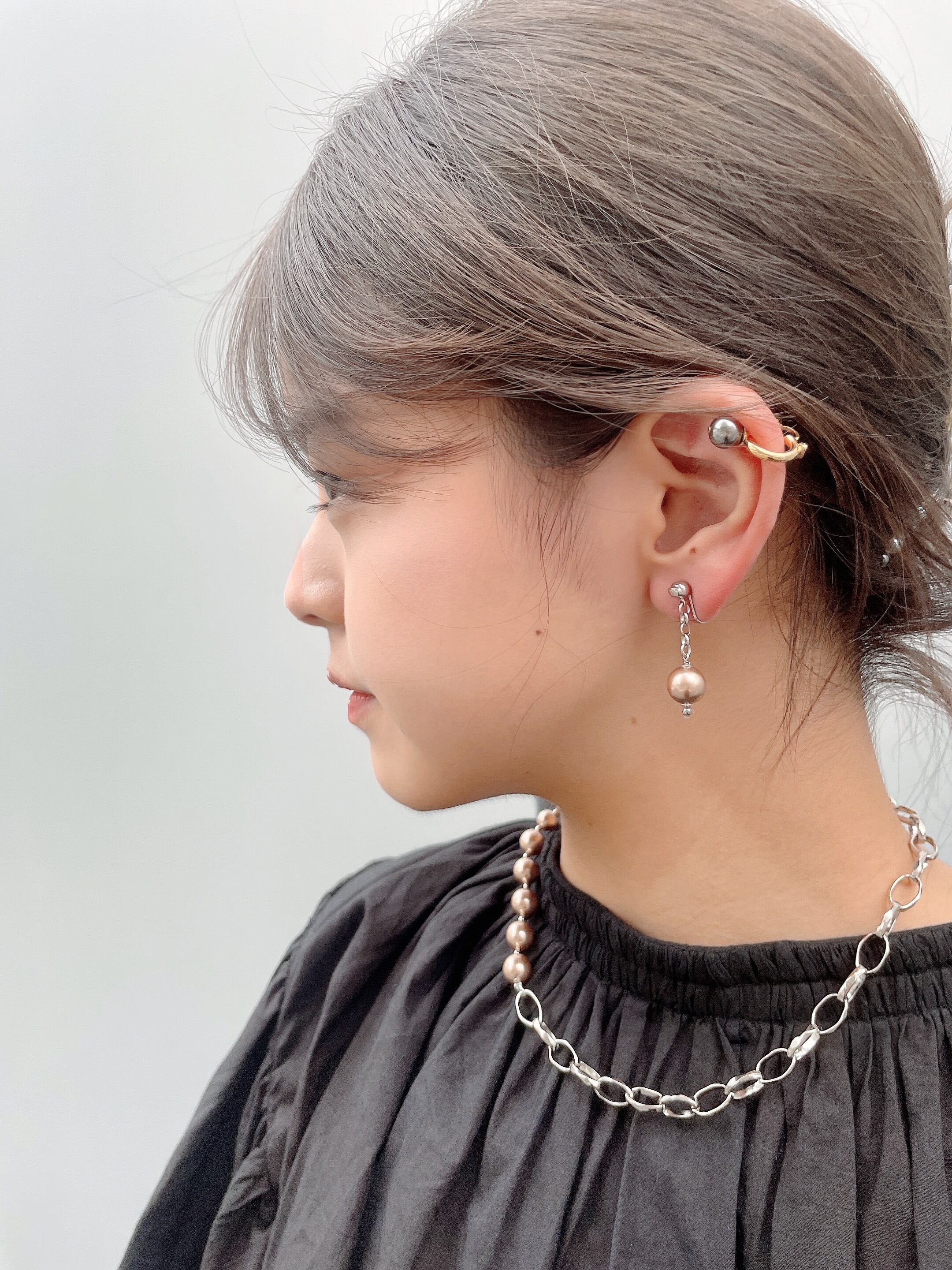 同デザインのネックレスやアシンメトリー、イヤーカフとセットで身に着けて頂くと、さらにトレンド感のあるヨーロッパな雰囲気に仕上がります。