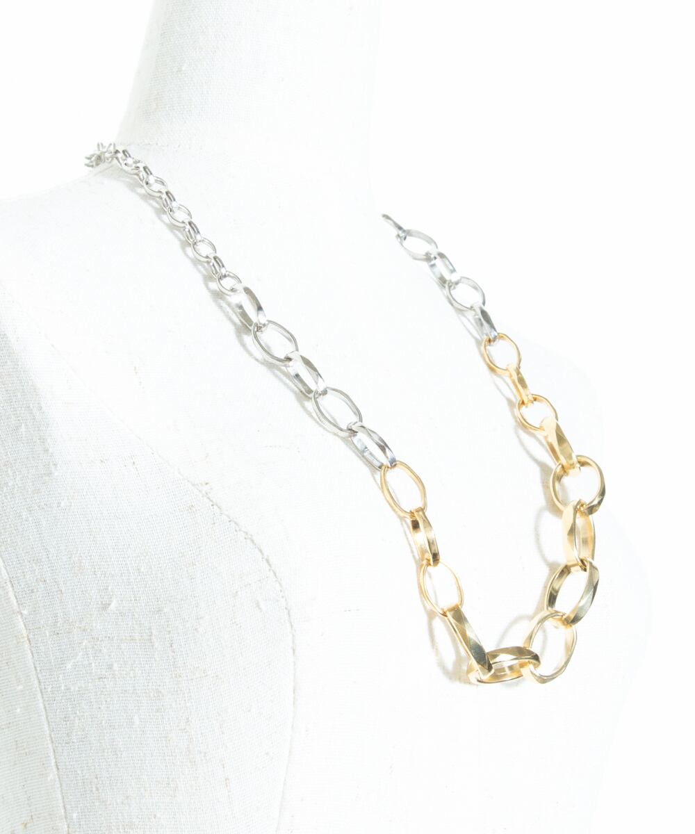 大中小のチェーン、ゴールドとシルバーをミックスするなど工程をかけていることにより