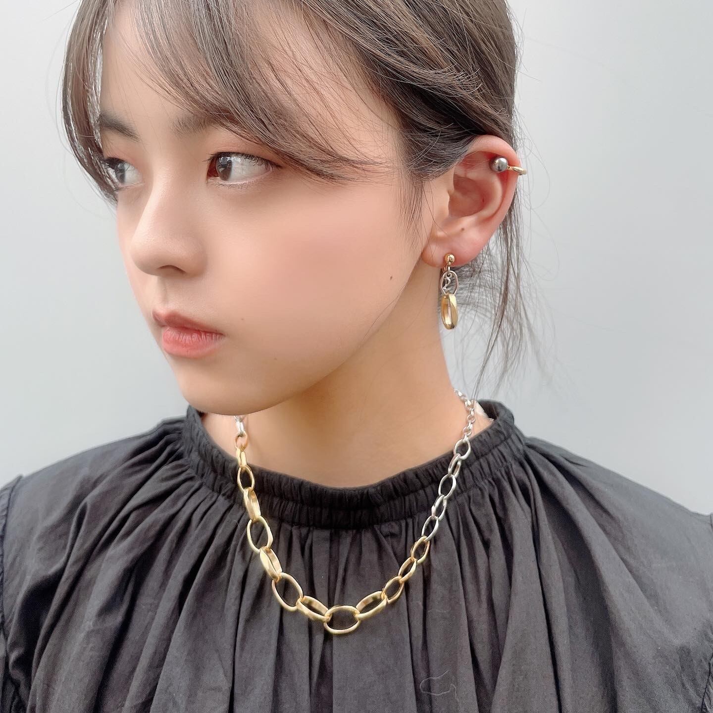 同シリーズのブレスレットやアシンメトリーの耳元とセットで身に着けて頂くと、さらにトレンド感のあるヨーロッパな雰囲気に仕上がります。