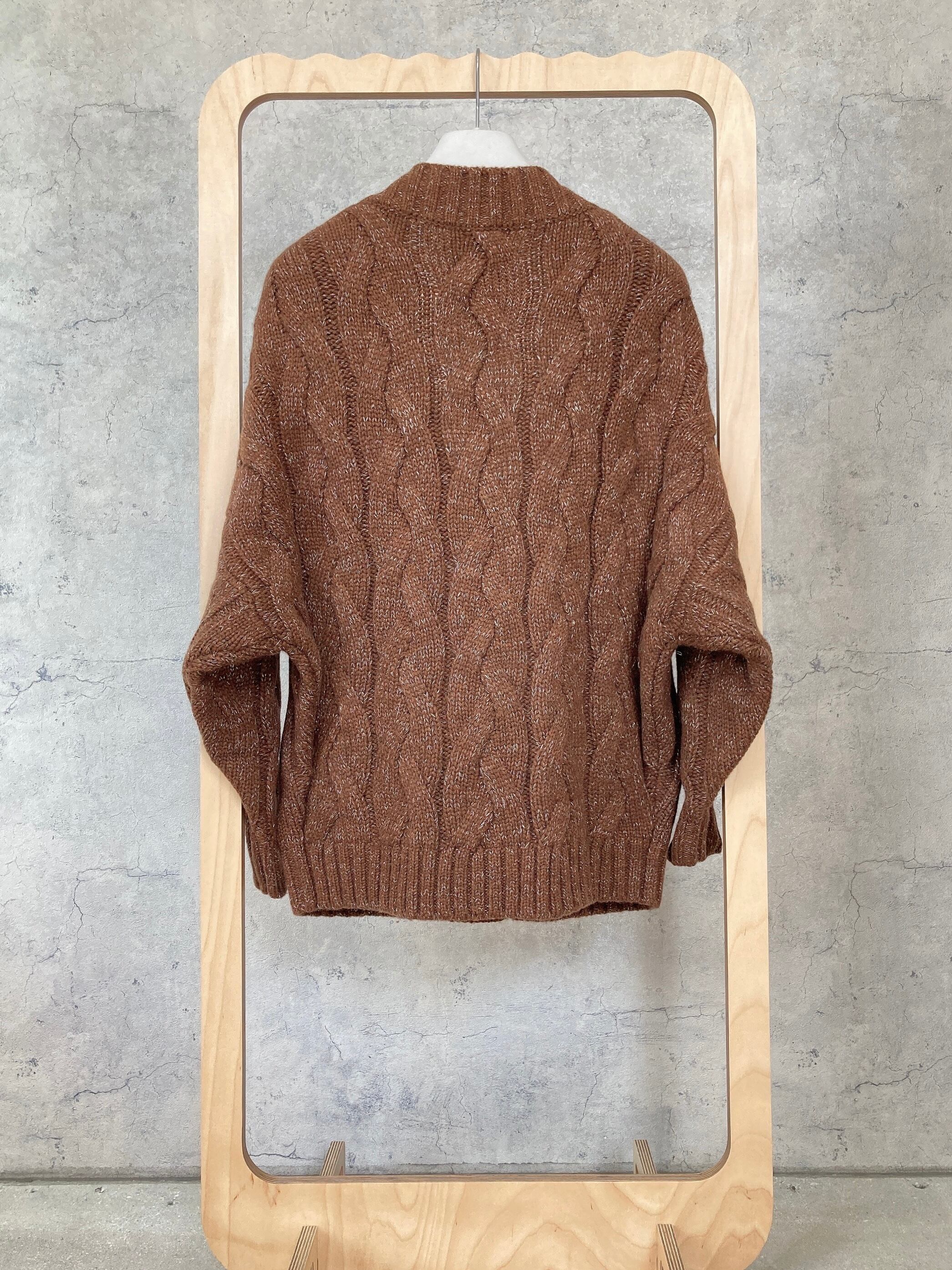circulation送料無料【SEASONS Hotel Particulier シーズン・オテル・パテキュリエ/フランス】ブラウン ラメ ケーブル編み カーディガンNO. SHP GBAX551Y/