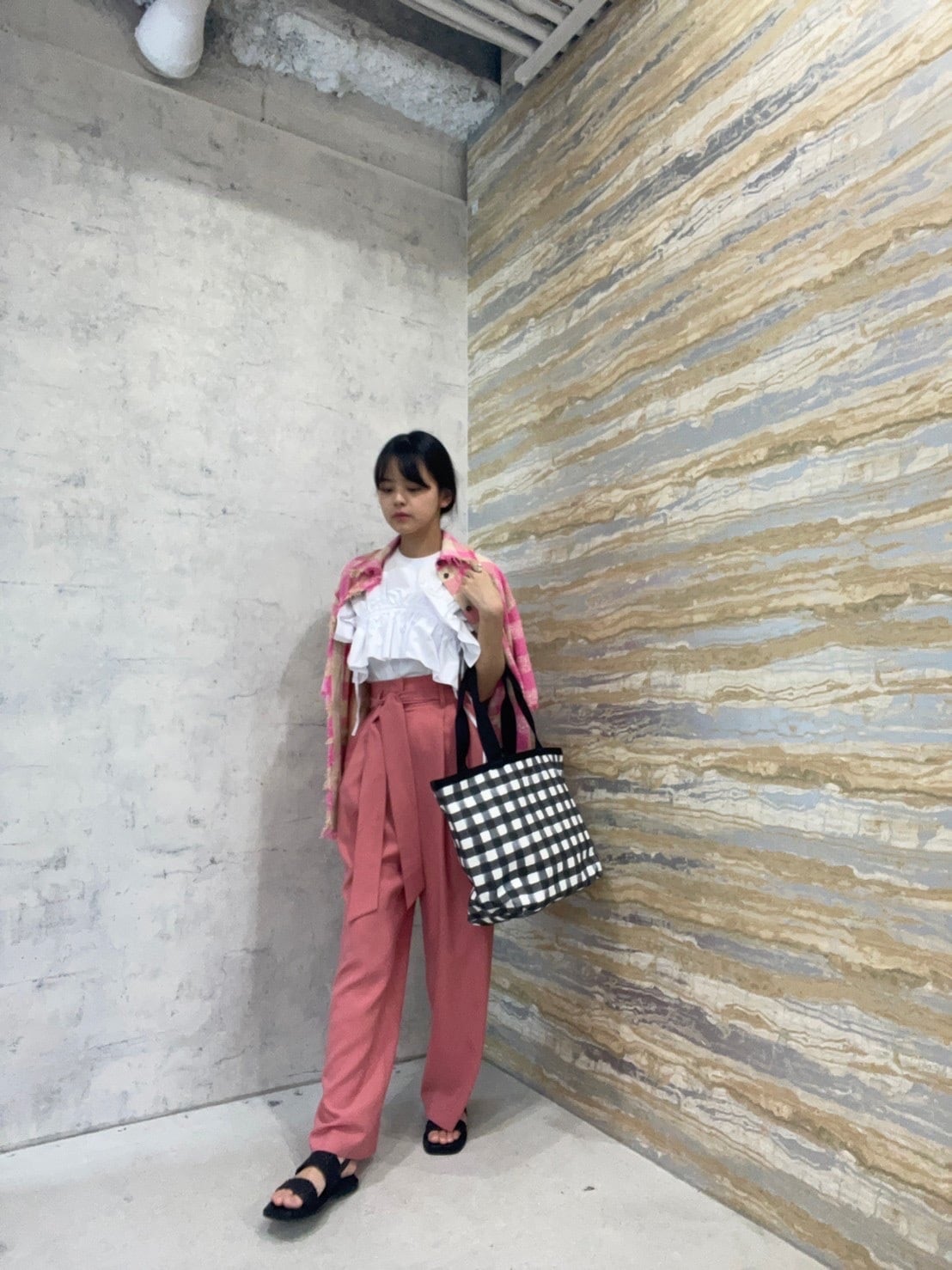 自由でフレッシュなムードを演出するピンクと、ベースのベージュカラーの組み合わせは個性に女性らしさをプラスします。