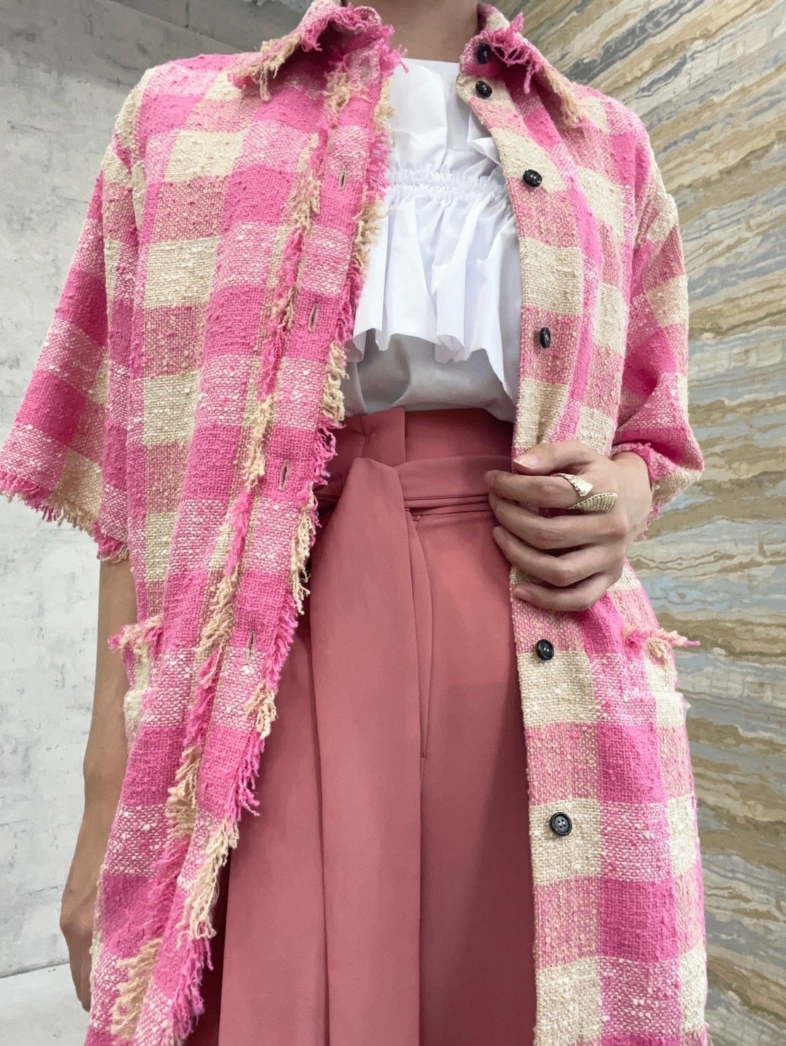 circulation送料無料【MSGM エムエスジーエム/イタリア】ギンガムチェック ピンク ツイード ライトアウター NO:3242MDE115