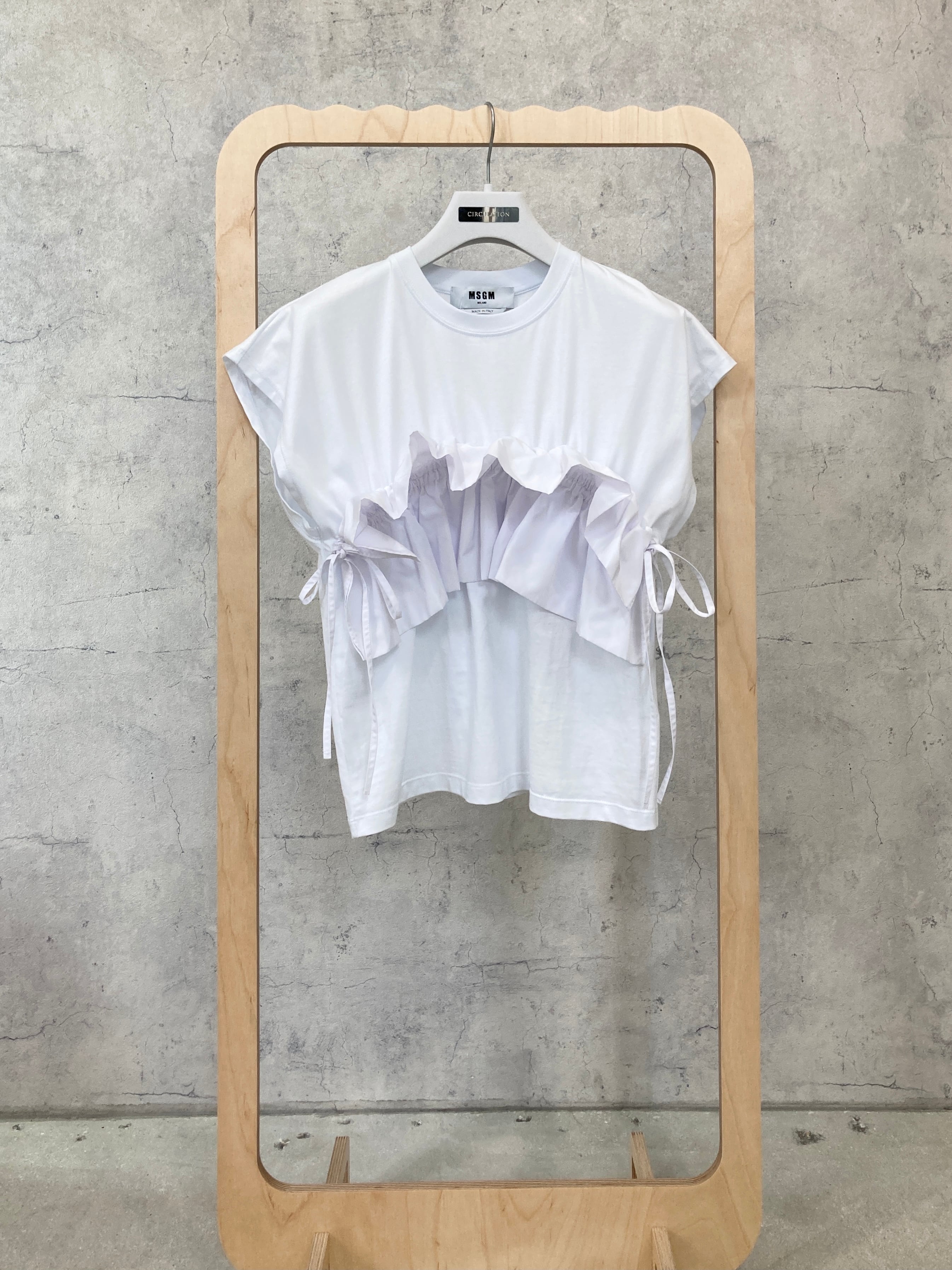 circulation送料無料【MSGM エムエスジーエム/イタリア】コットン100% Tシャツ フリルギャザーデザイン カットソー NO:3241MDM69