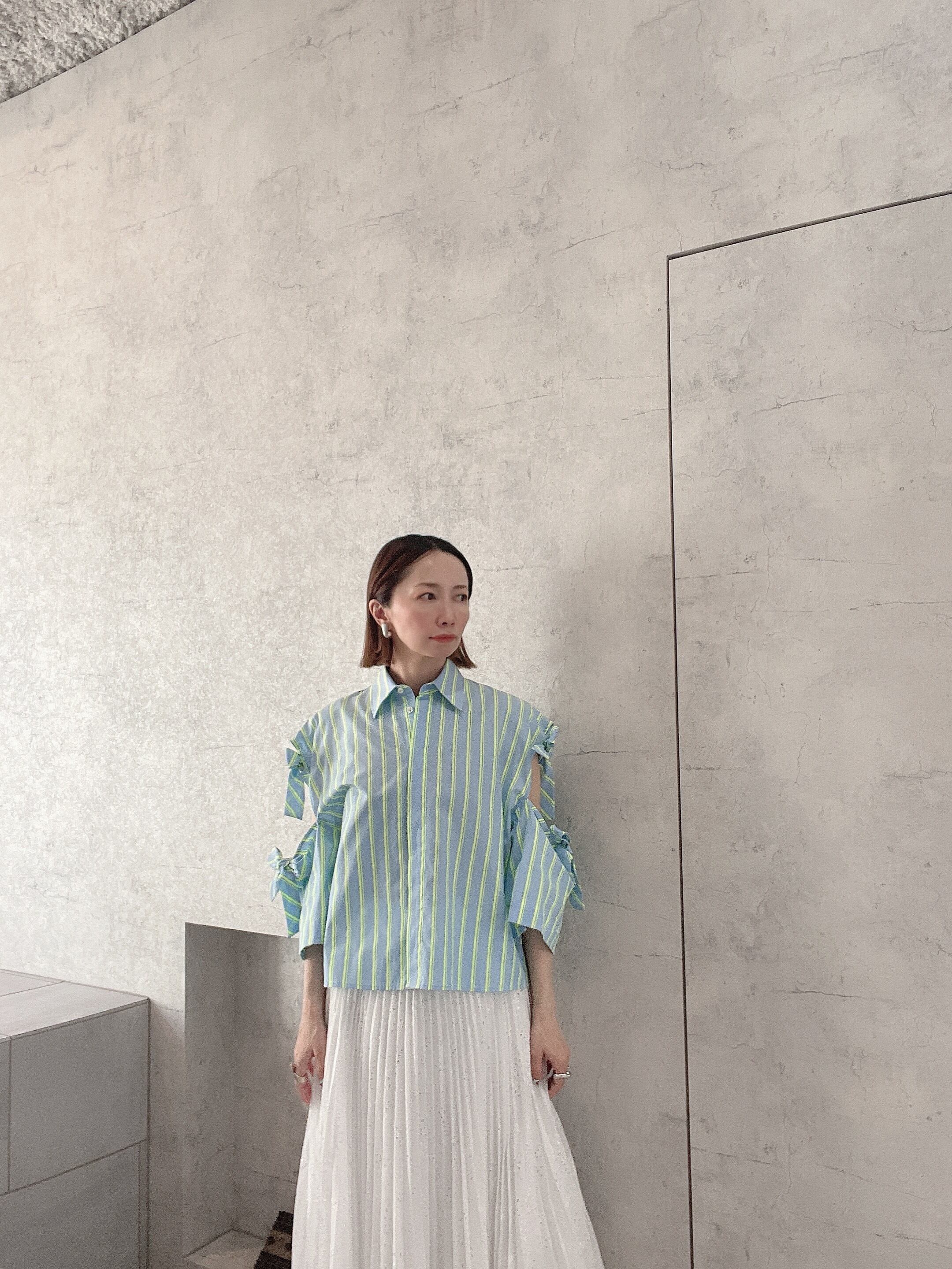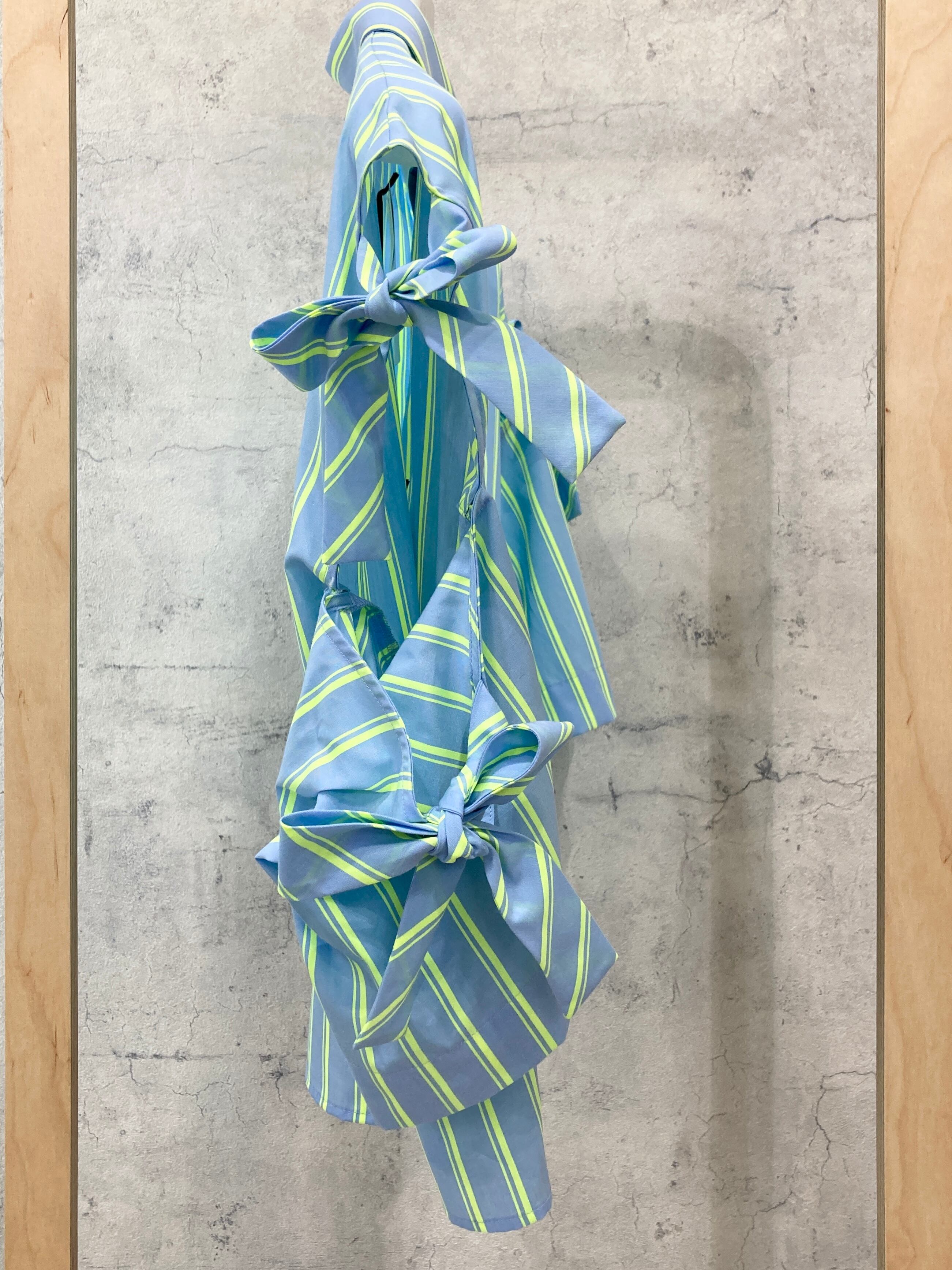 リボンを横同士で結び、腕を出して着るとよりカジュアルで涼しげな装いに、またリボンを上下に結んで肌見せせずに着てもフォーマルな印象に着て頂けます。