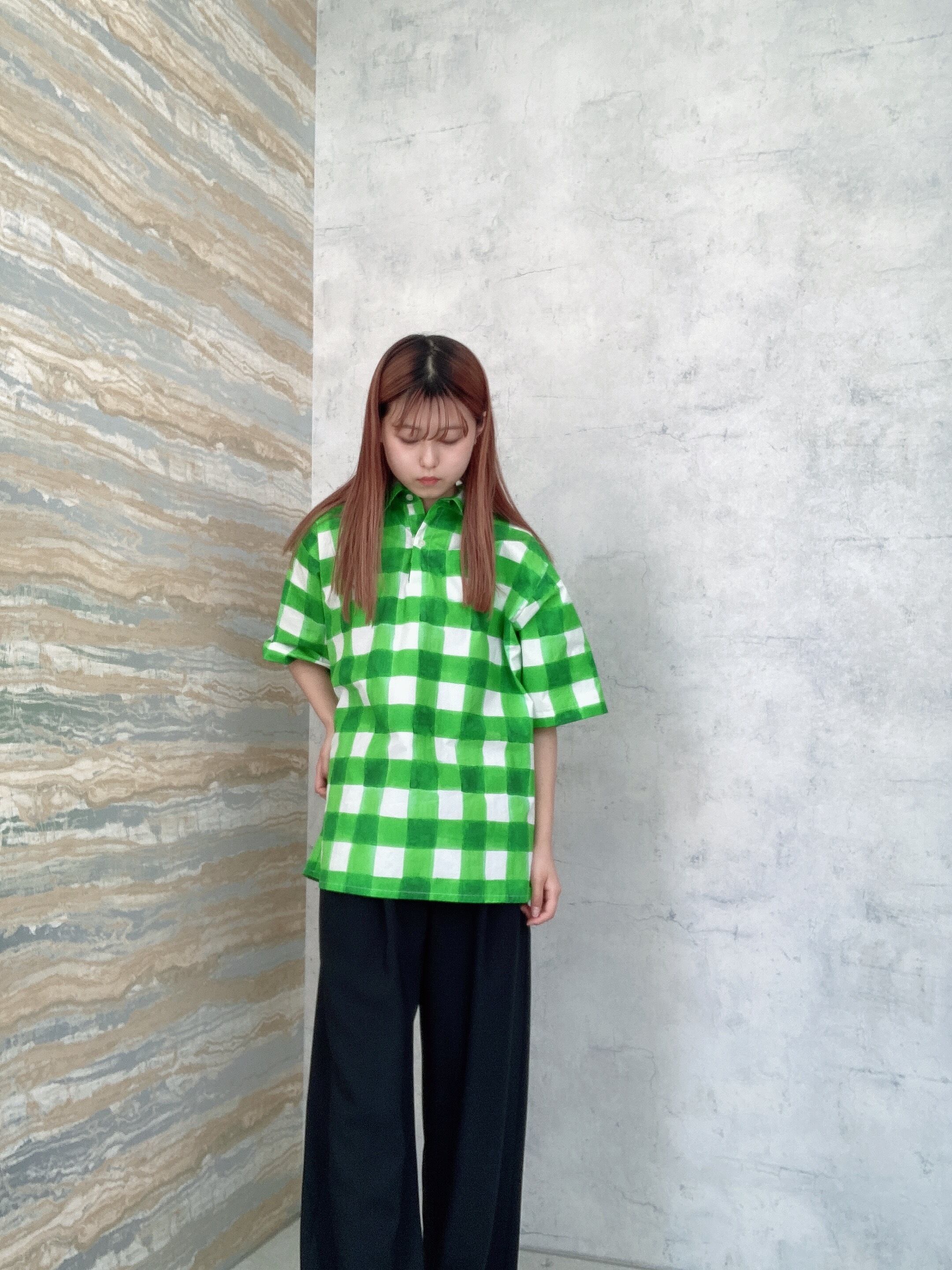 今年のトレンドカラーでもあるグリーンと夏の爽やかさを演出するホワイトのビックチェックの合わせがGOOD◎