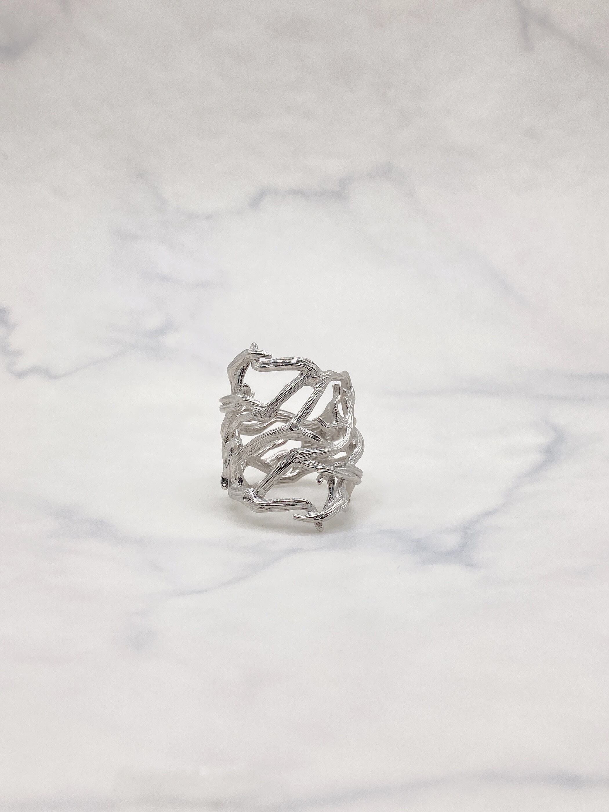 軽やかな枝モチーフは、一つでも差がつくデザインで、華奢なリングと合わせてメリハリのある華やかな印象になる魅力的な一品。