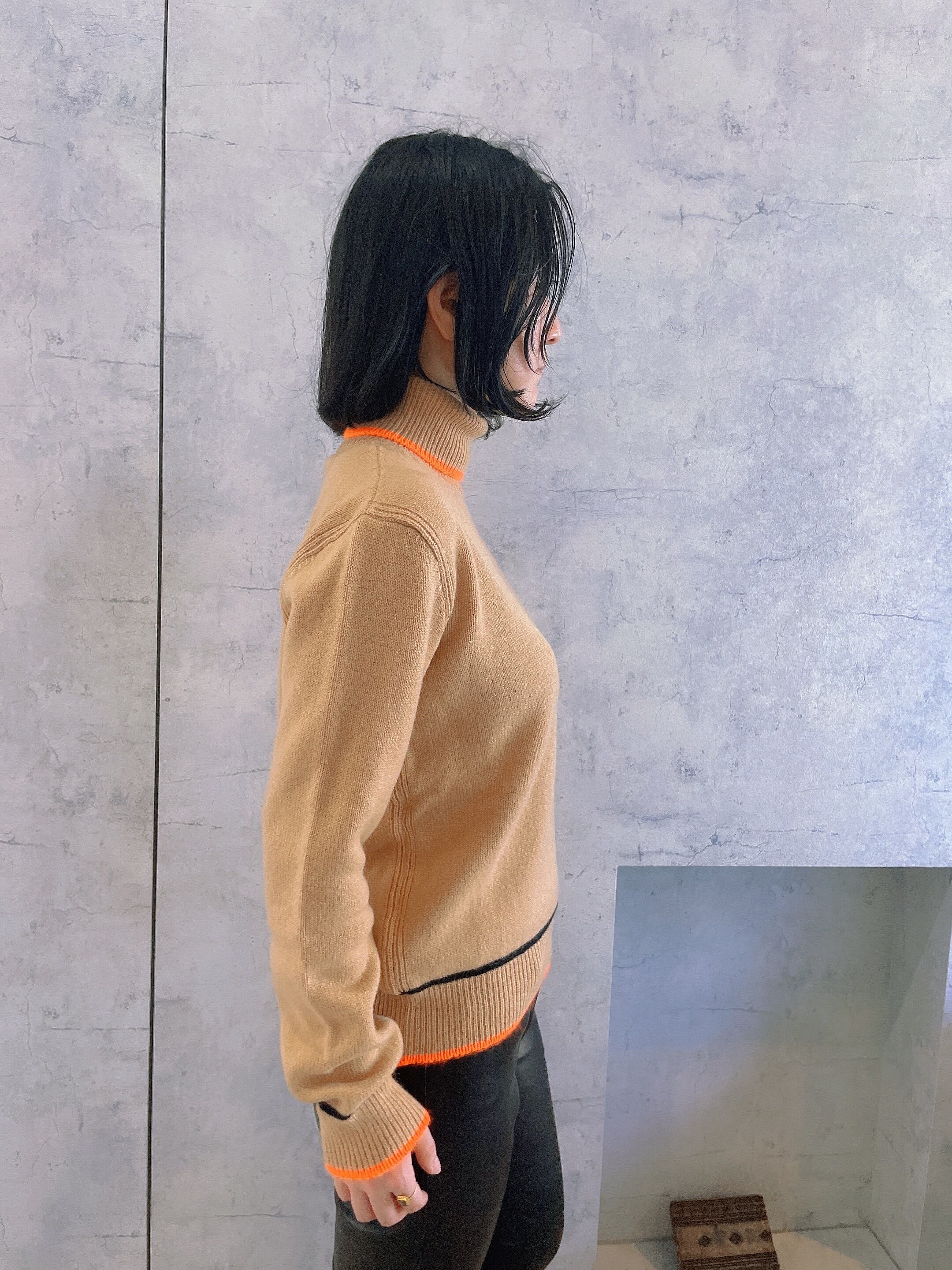 イタリアの高級紡毛糸を贅沢に使用し非常に軽くて暖かいタートルネックセーター。