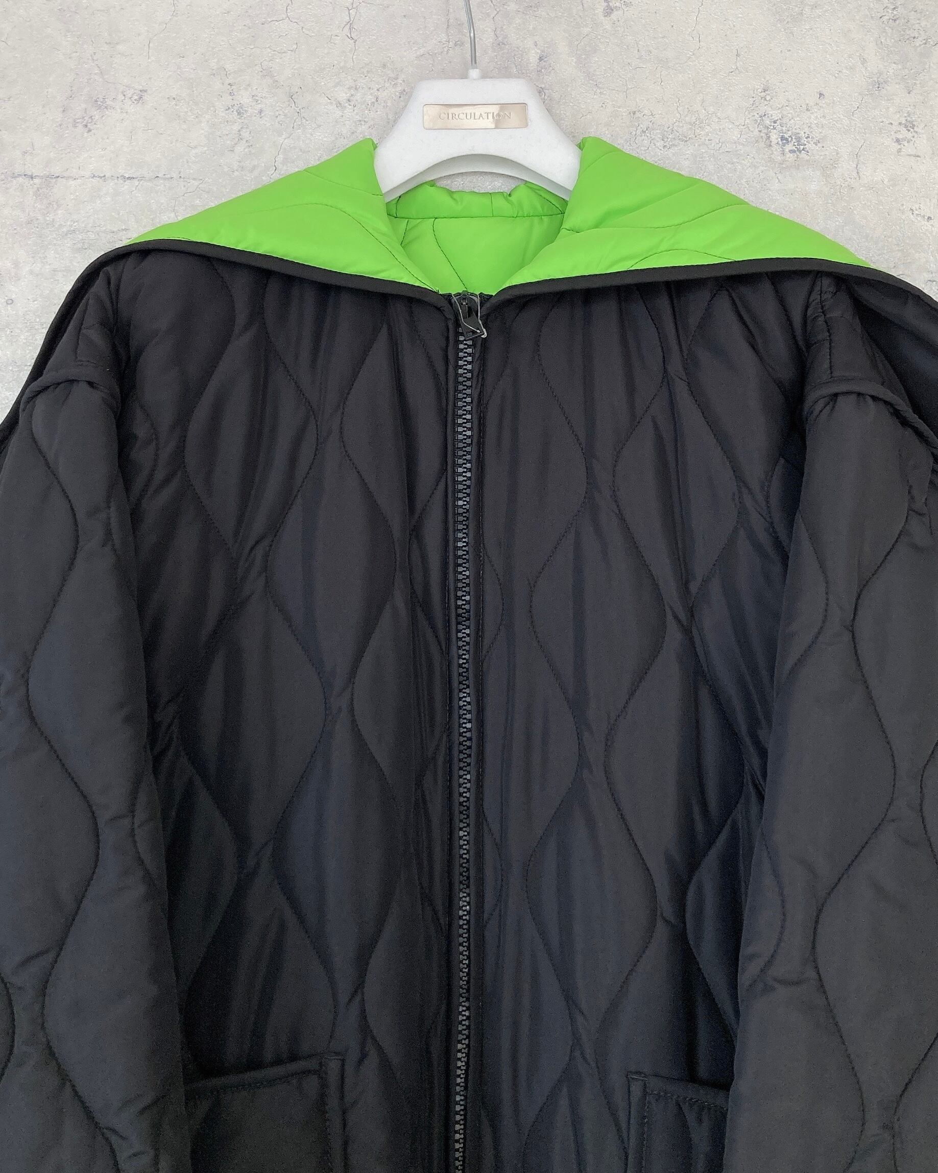 circulation送料無料【MSGM エムエスジーエム/イタリア】フード付きダウン ロングアウター 蛍光 グリーン 変形フード フード NO: 3341MDC08Y