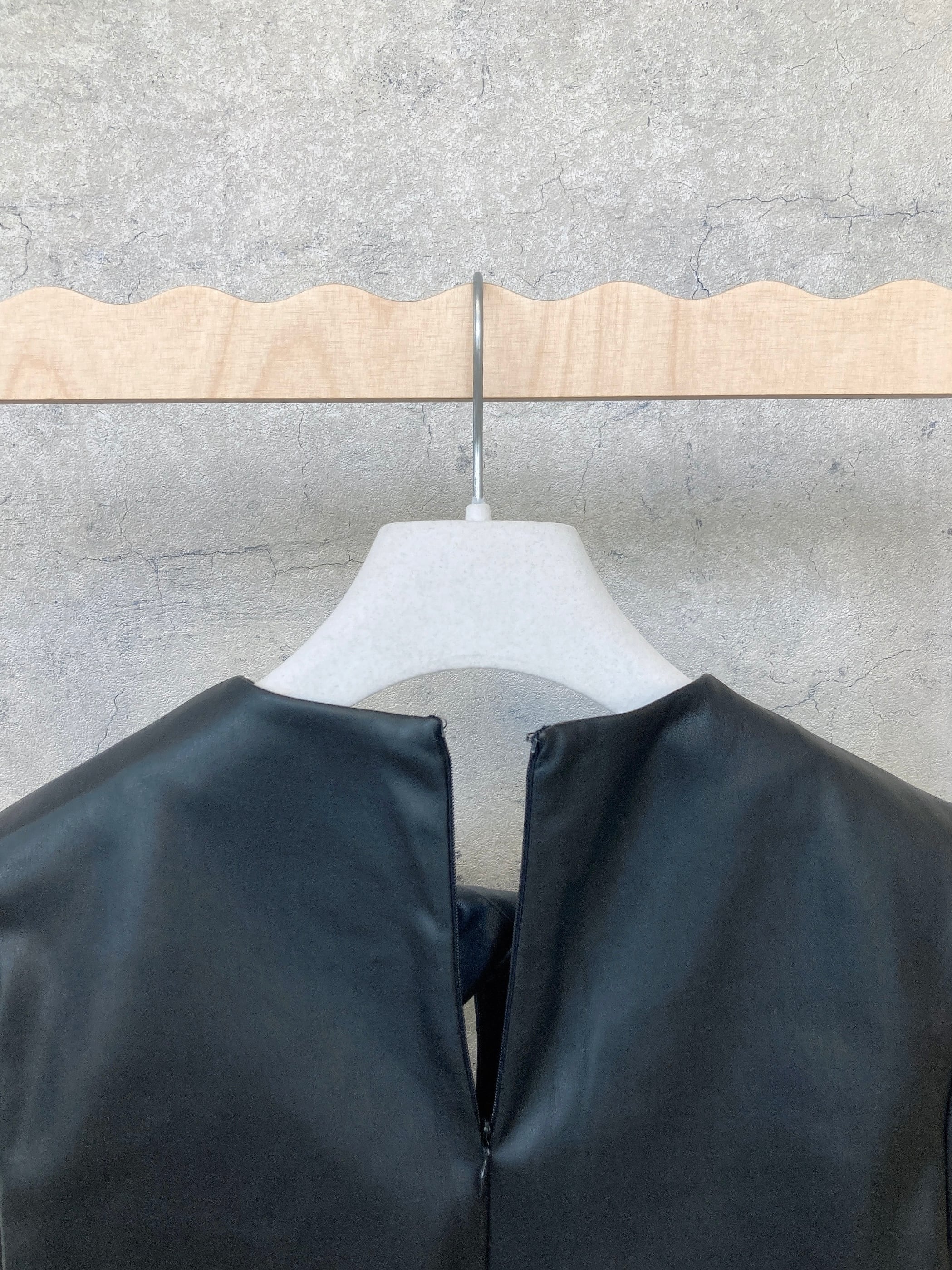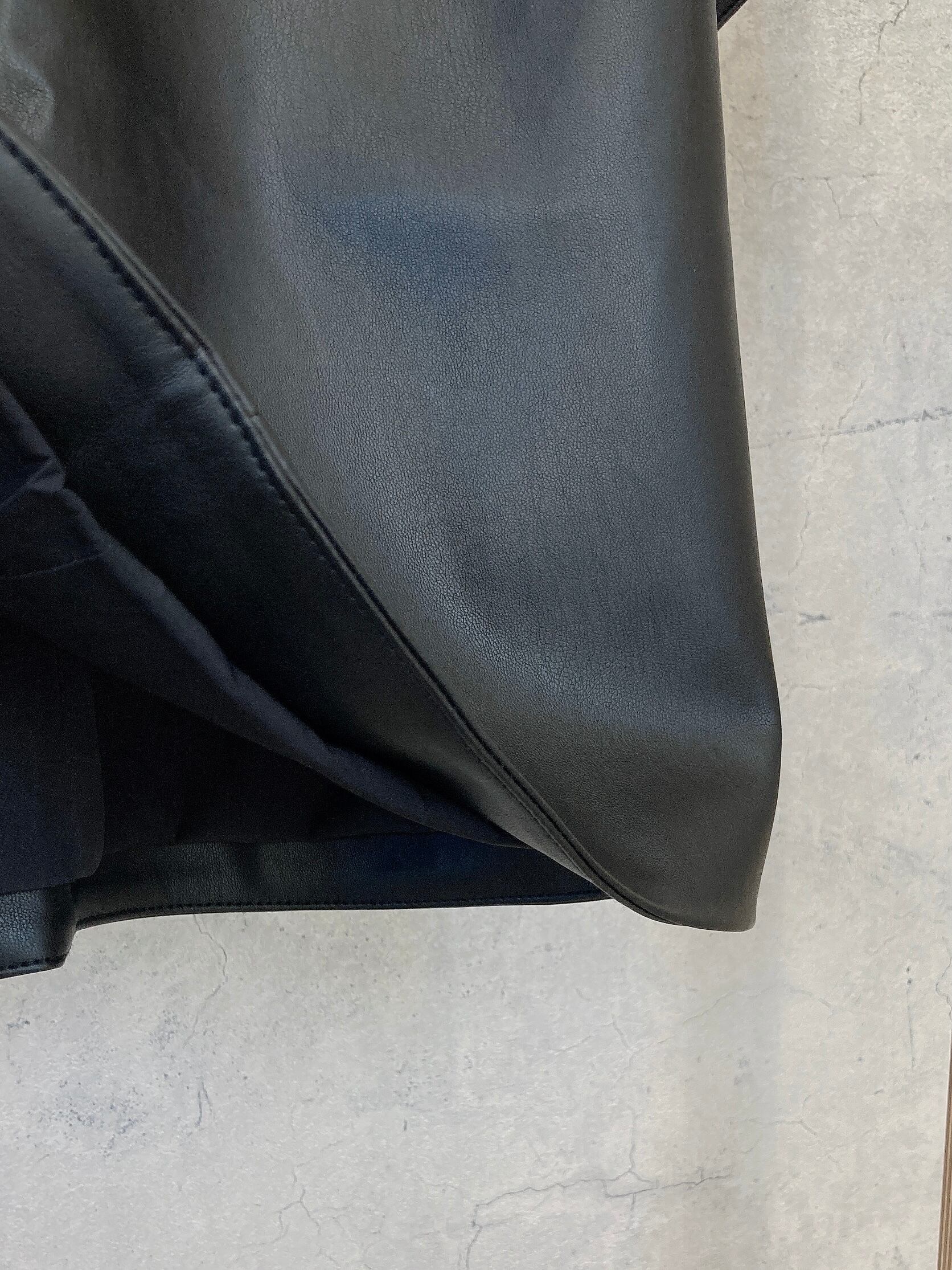 ハードになり過ぎない女性らしいシルエットが映えるフェイクレザートップス。