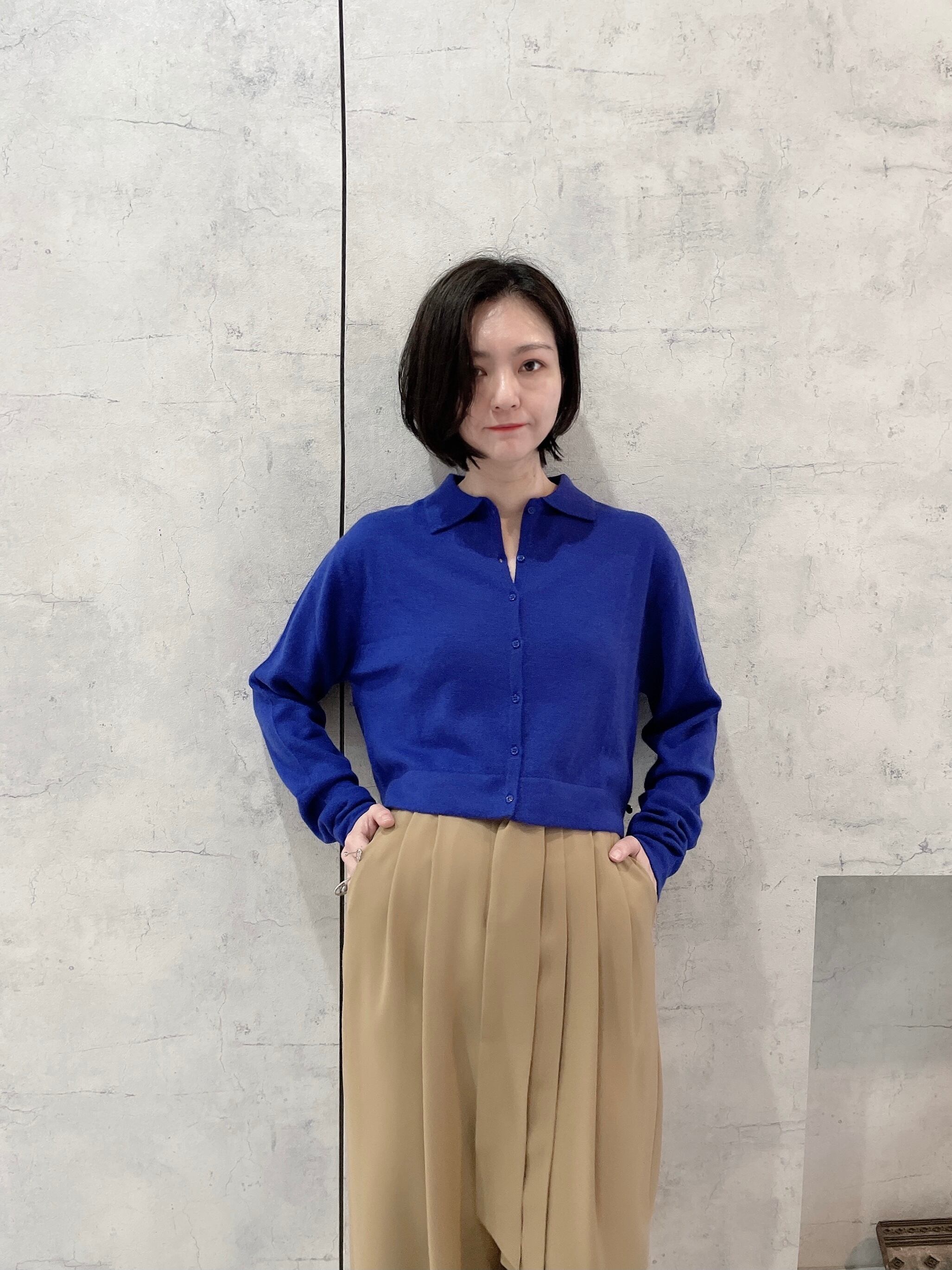 最も長く細い白い、最高級のカシミヤを惜しみなく使用した「カシミヤ100%」のカーディガン。白い上質な糸を使用しているため発色が非常に美しく、ブリーチせずに染色できる為ピリングもおこりにくいのが特徴です。
