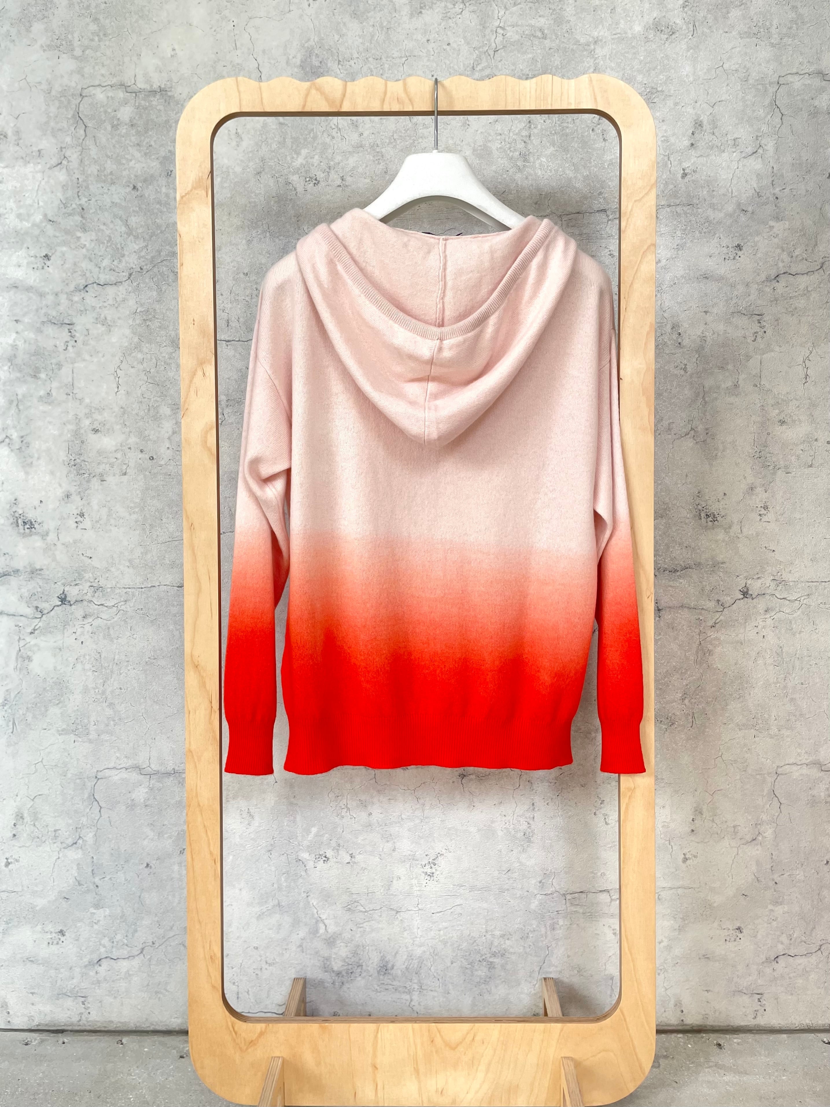1点1点後染めされたグラデーションが目を惹くカシミヤ100%フーディー。後染めは1点1点グラデーションに染色する為、高度の技術と手間が必要です。
