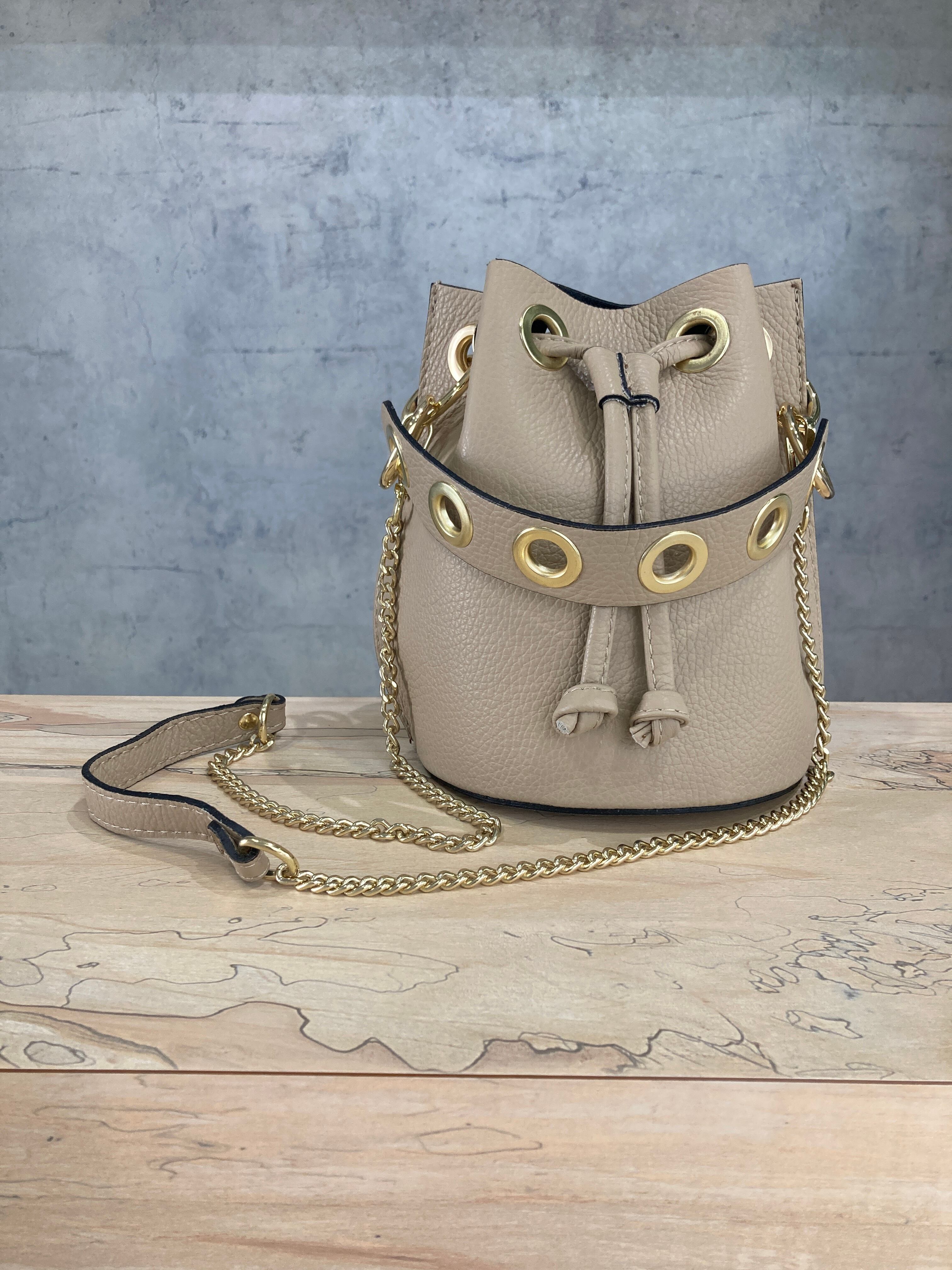 ラウンドをコンセプトにした丸みのあるフォルムや、ハンドルのマットゴールドの鳩目金具などデザインに拘ったスタイル。